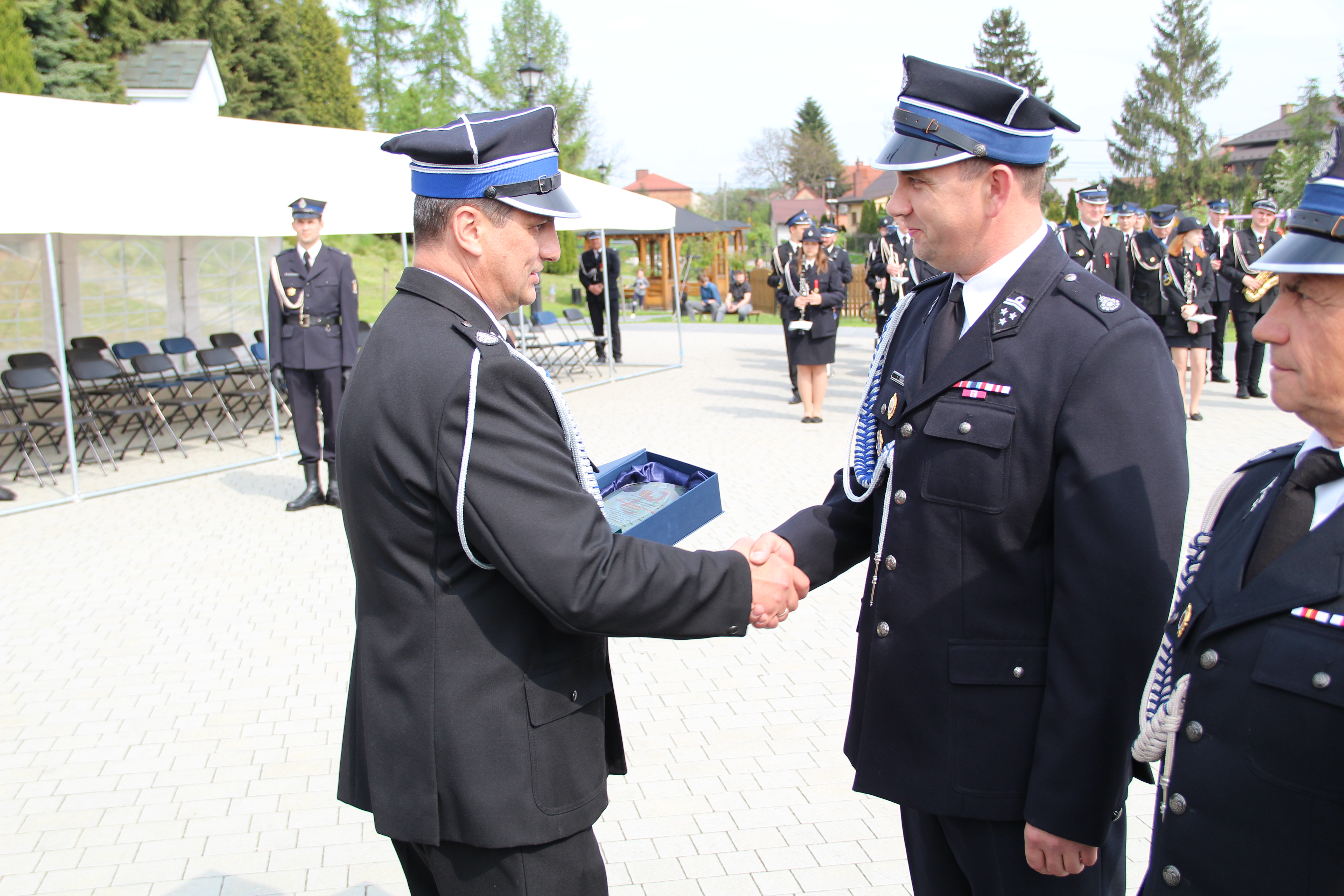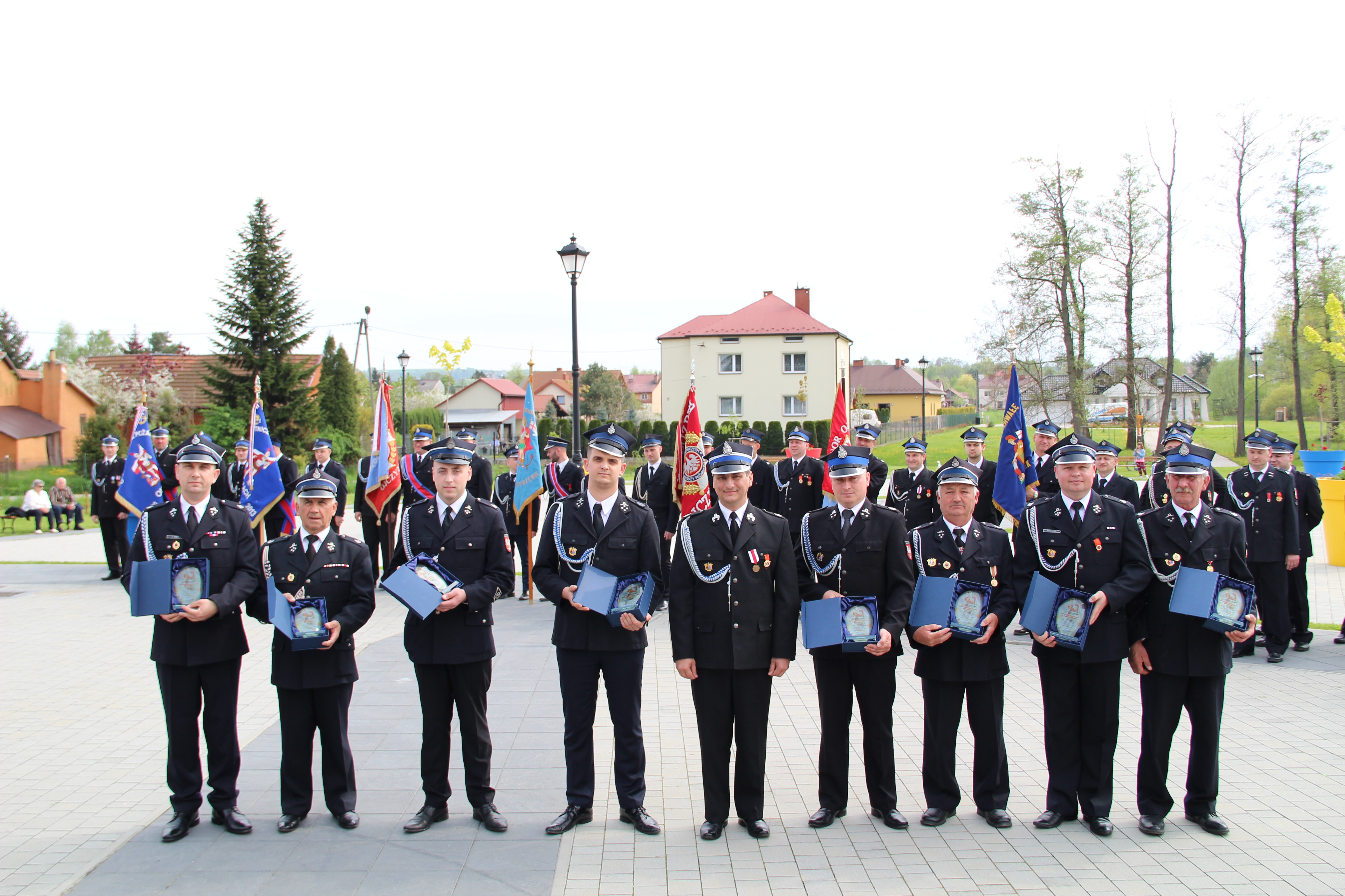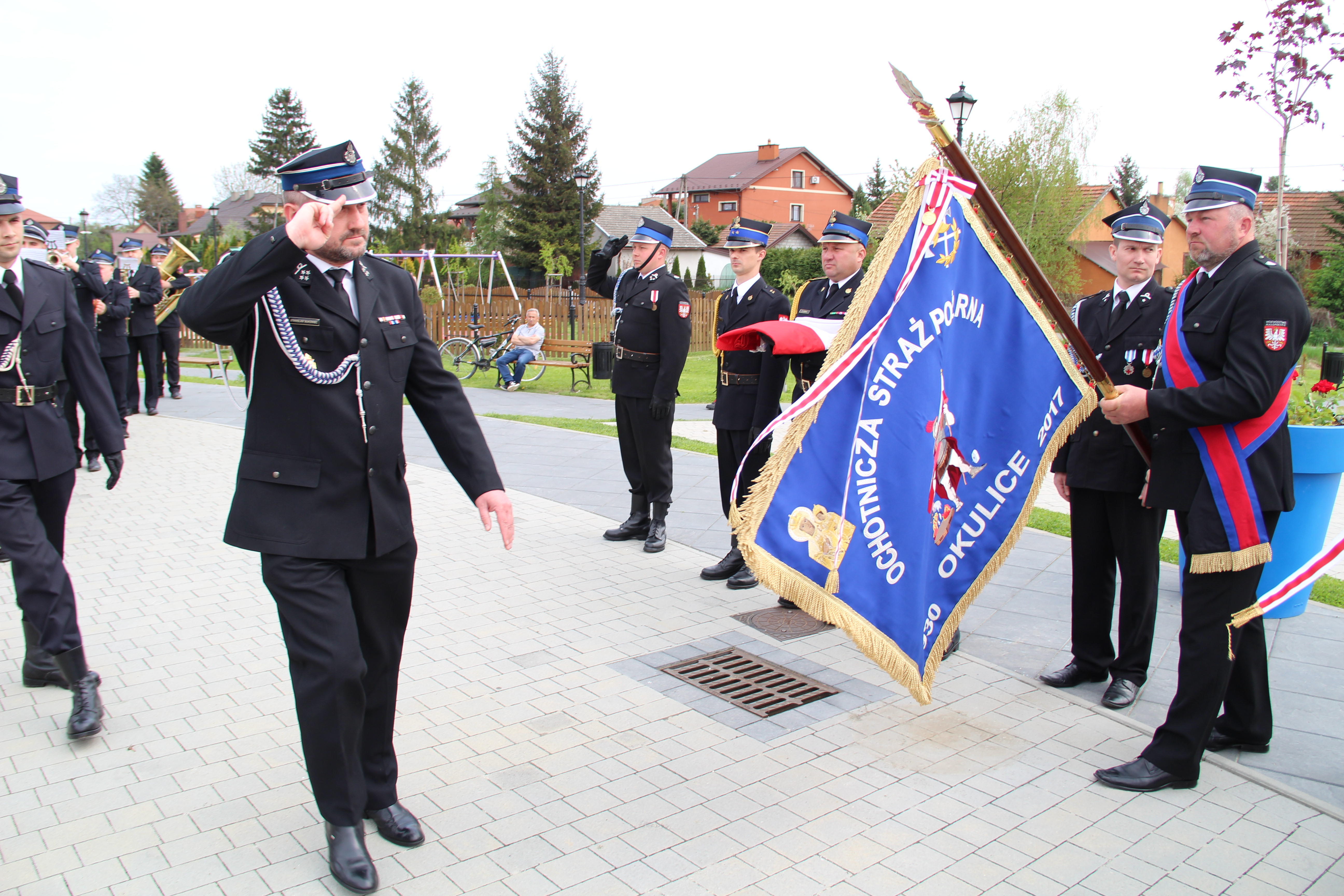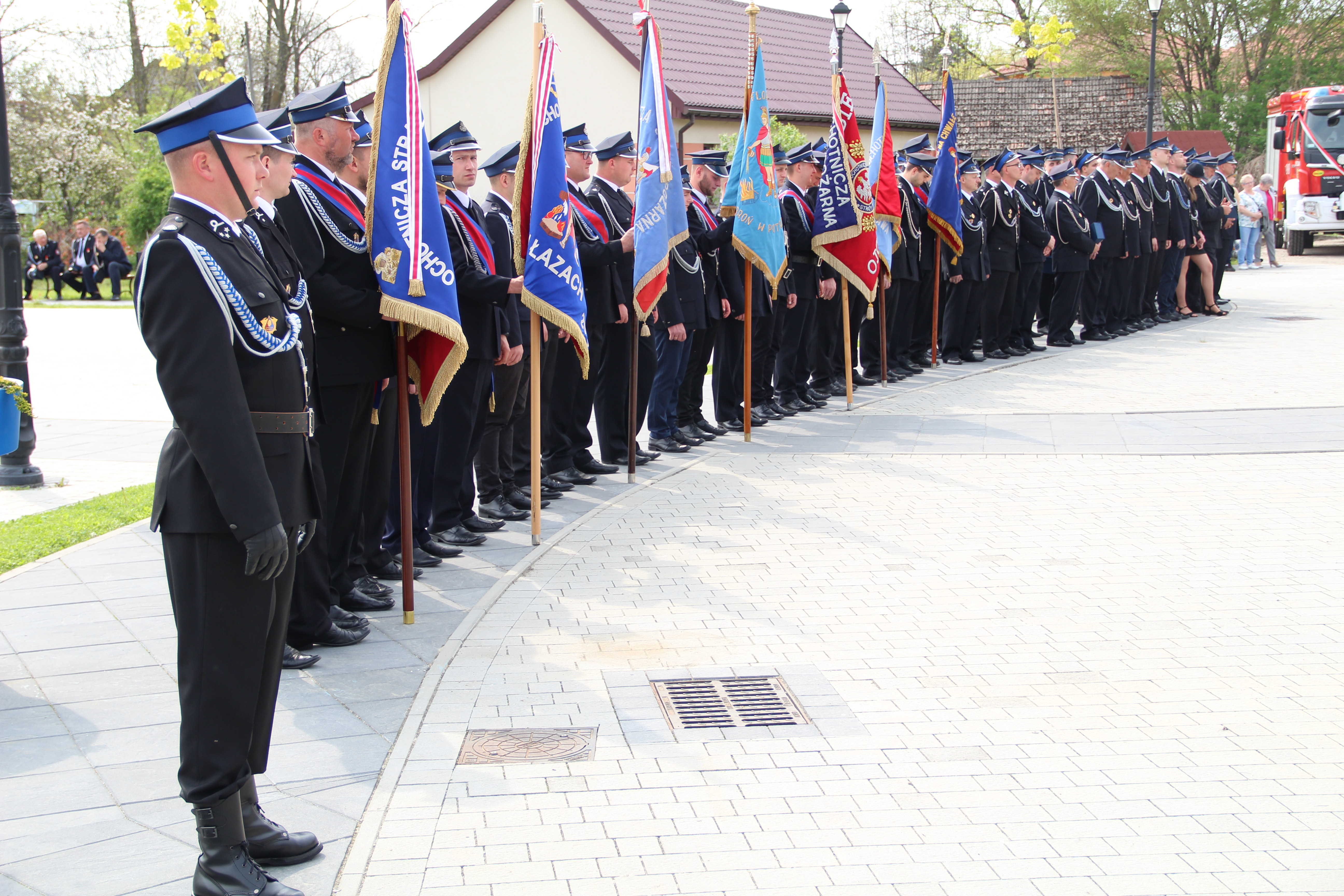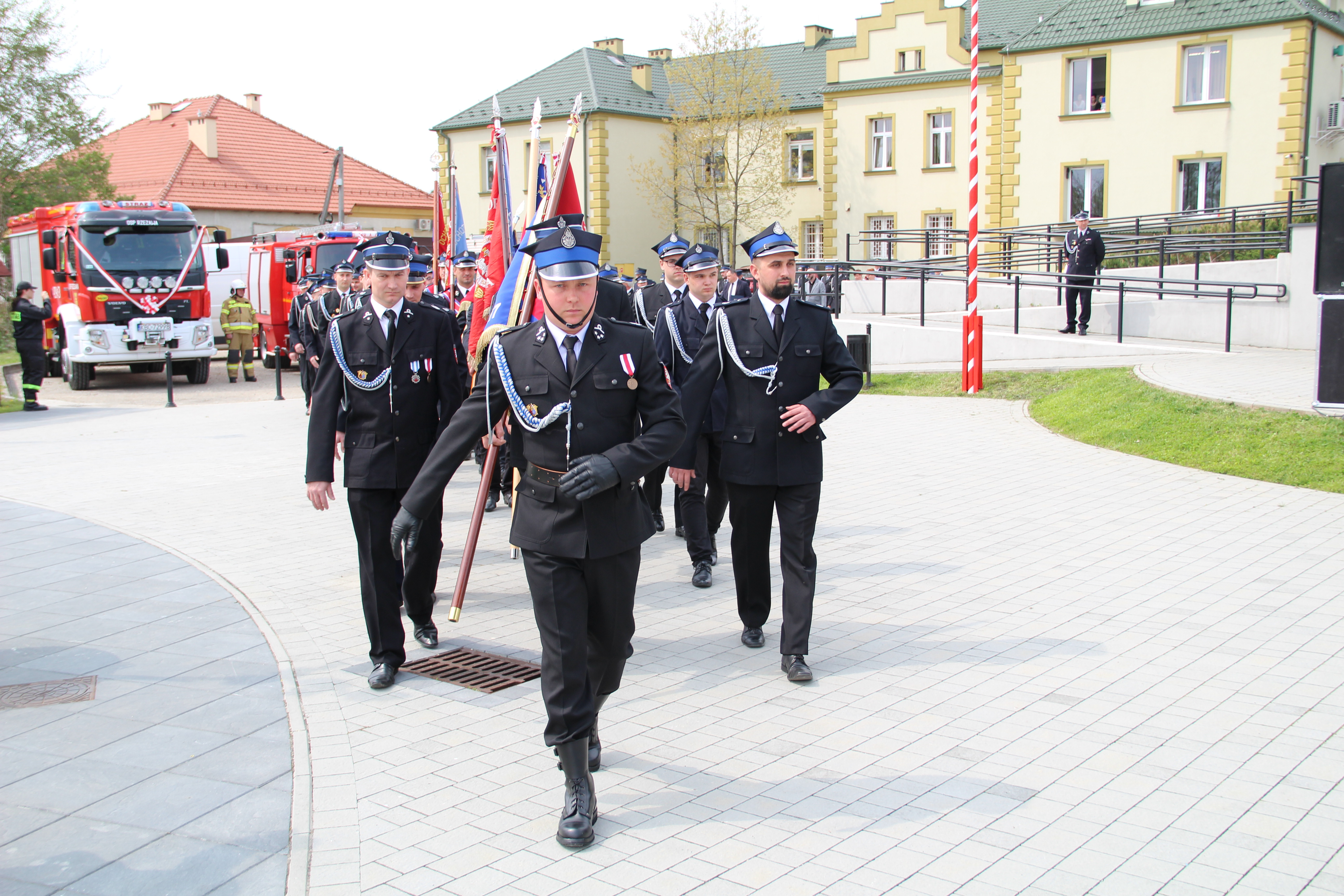Po Mszy Świętej jednostki OSP wraz z pocztami sztandarowymi i pozostali uczestnicy uroczystości w szyku strażackim przy akompaniamencie orkiestry dętej przemaszerowali na „Ryneczek”.