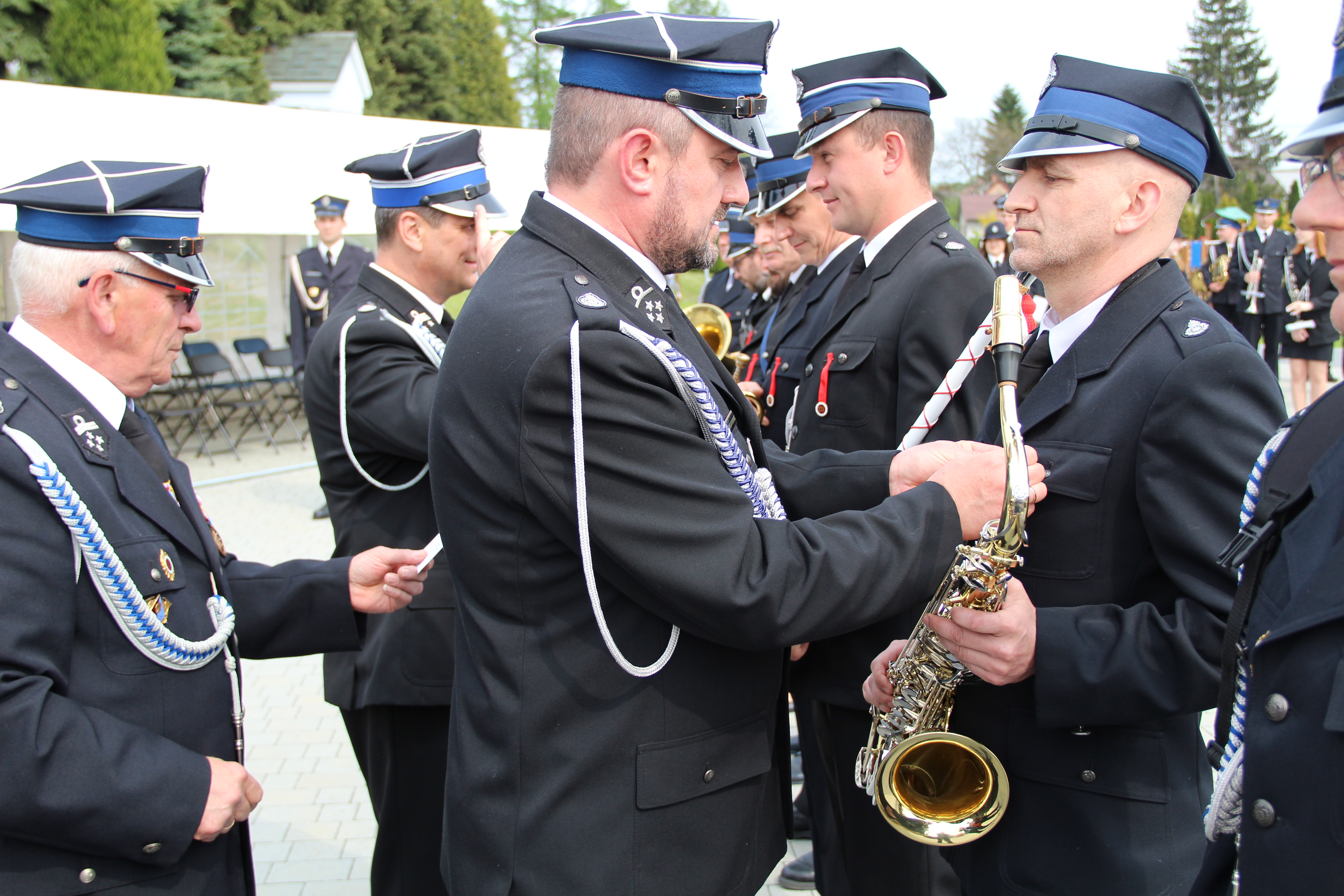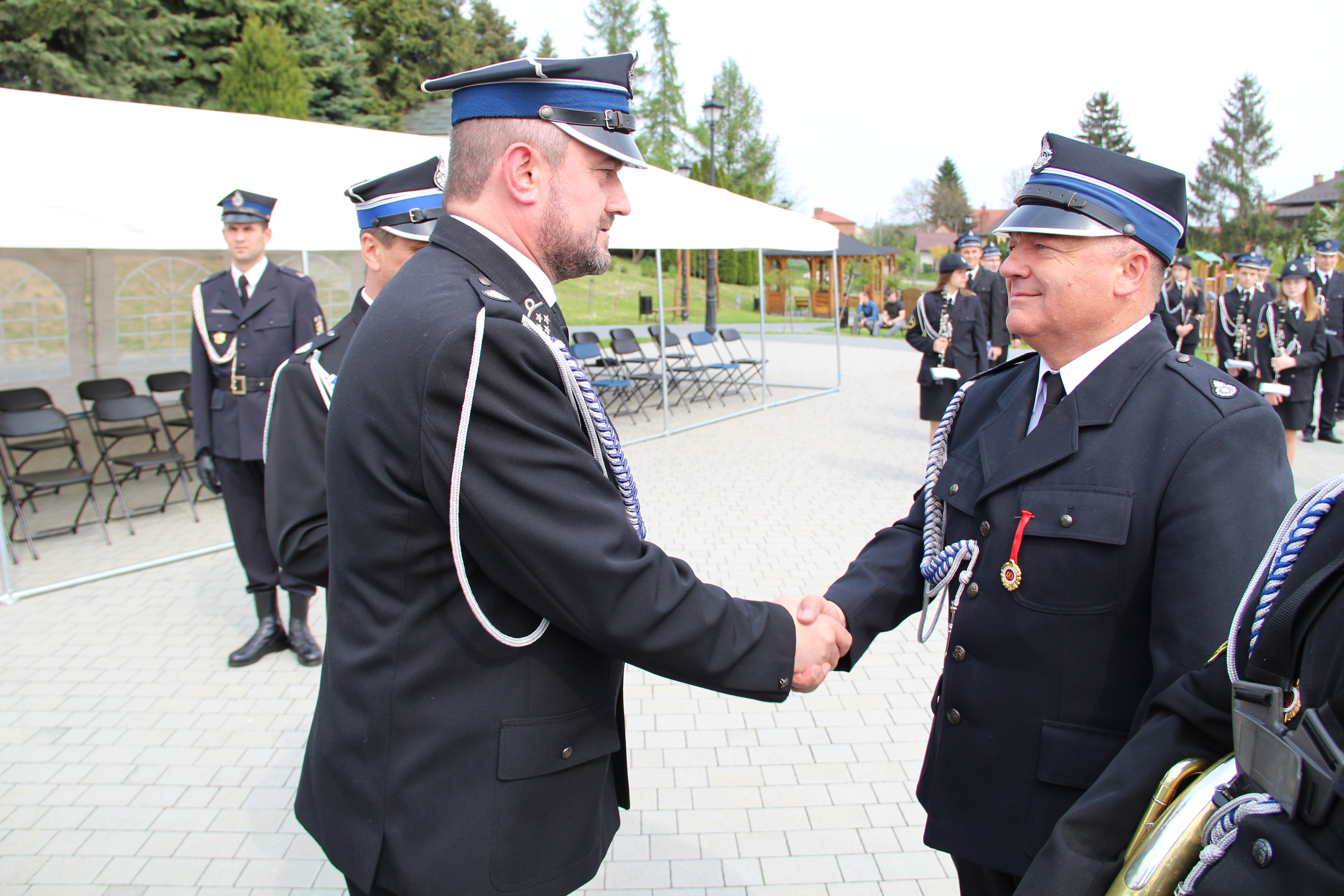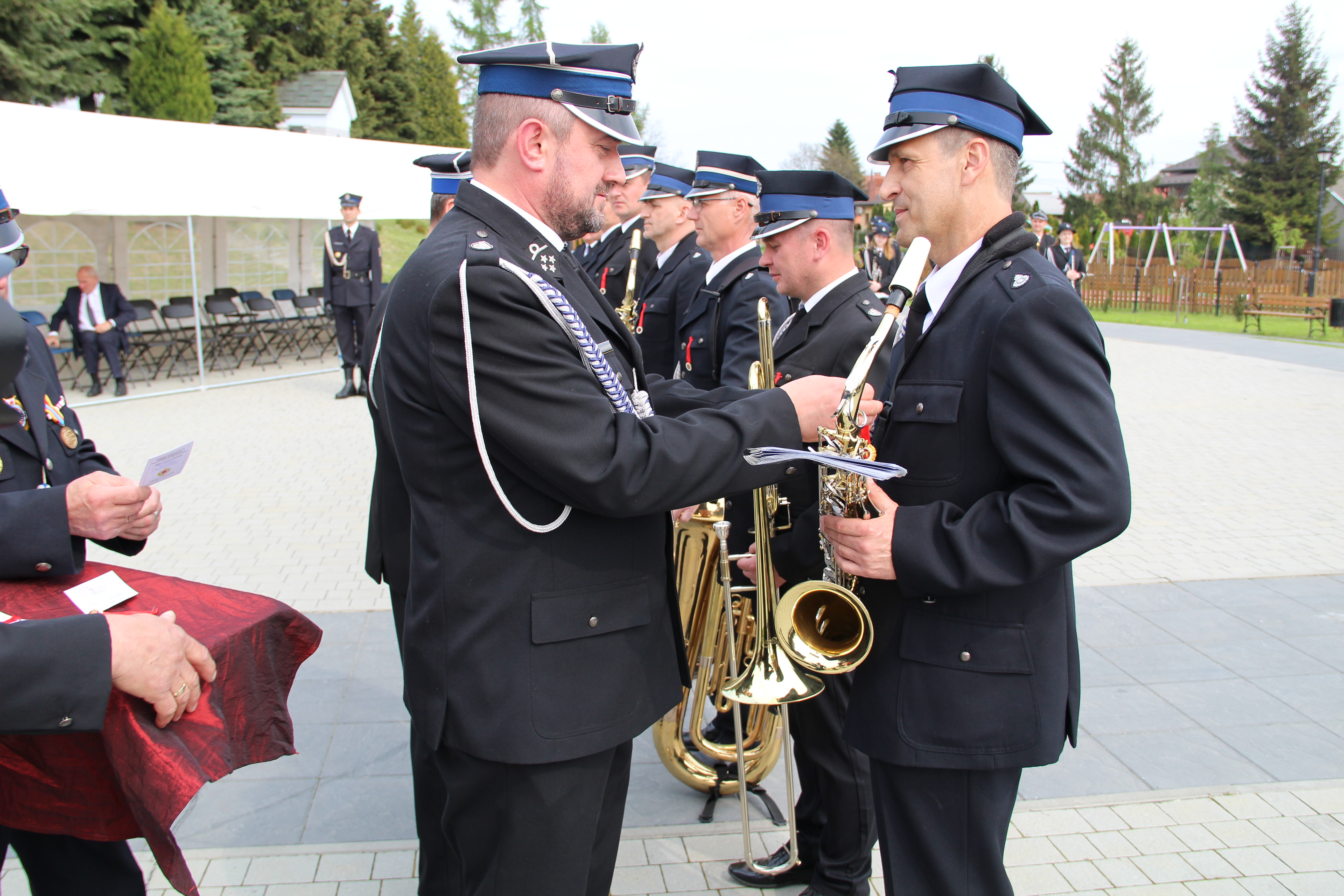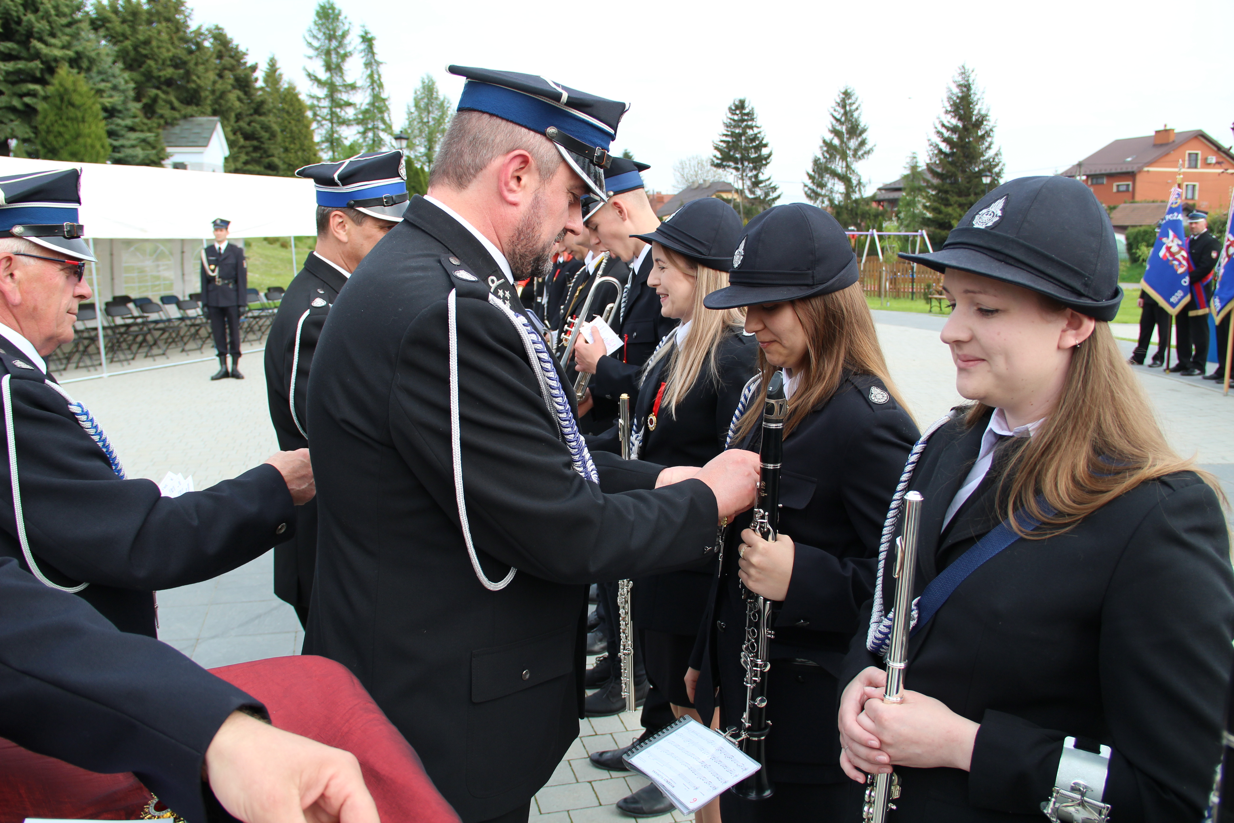 Po Mszy Świętej jednostki OSP wraz z pocztami sztandarowymi i pozostali uczestnicy uroczystości w szyku strażackim przy akompaniamencie orkiestry dętej przemaszerowali na „Ryneczek”.