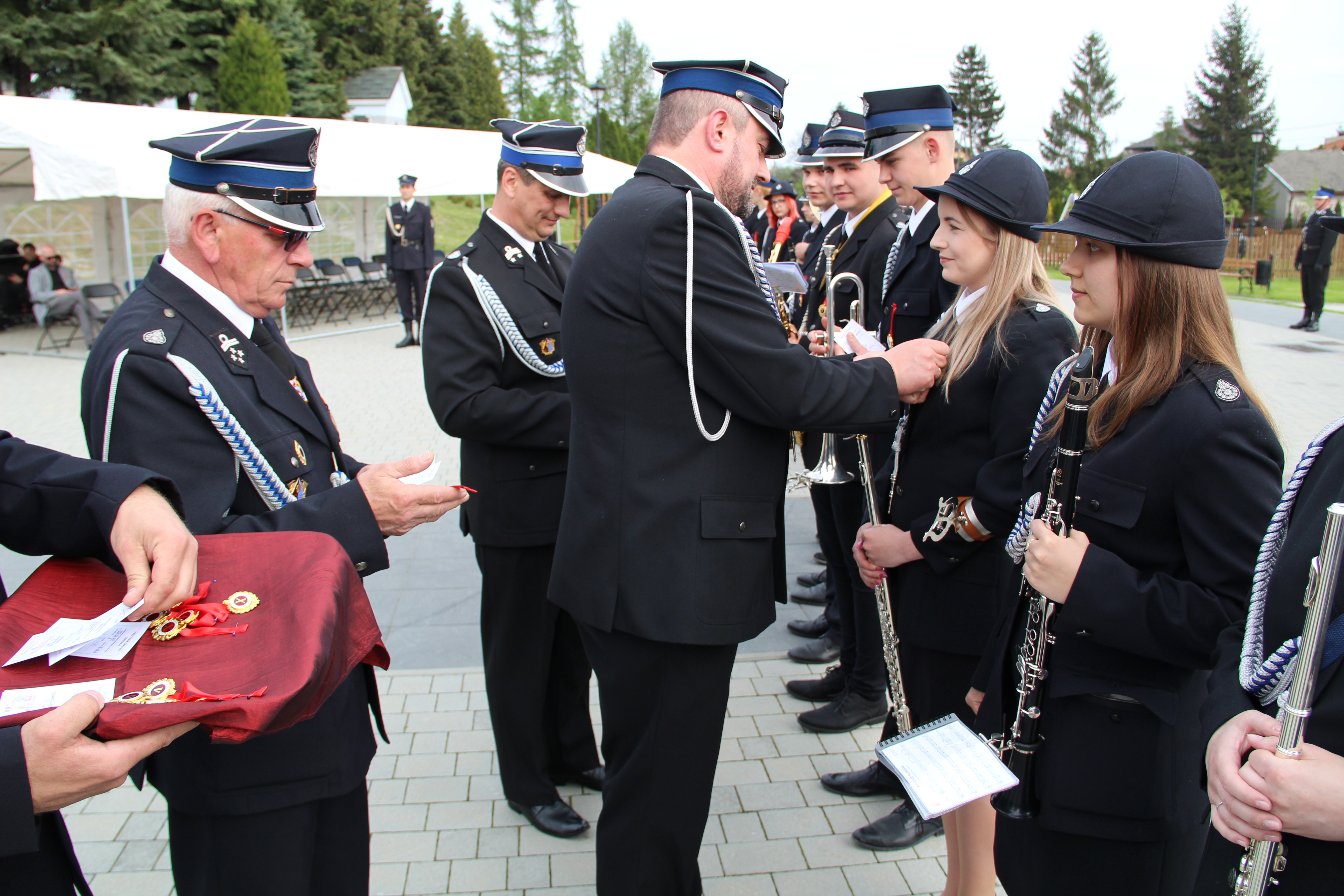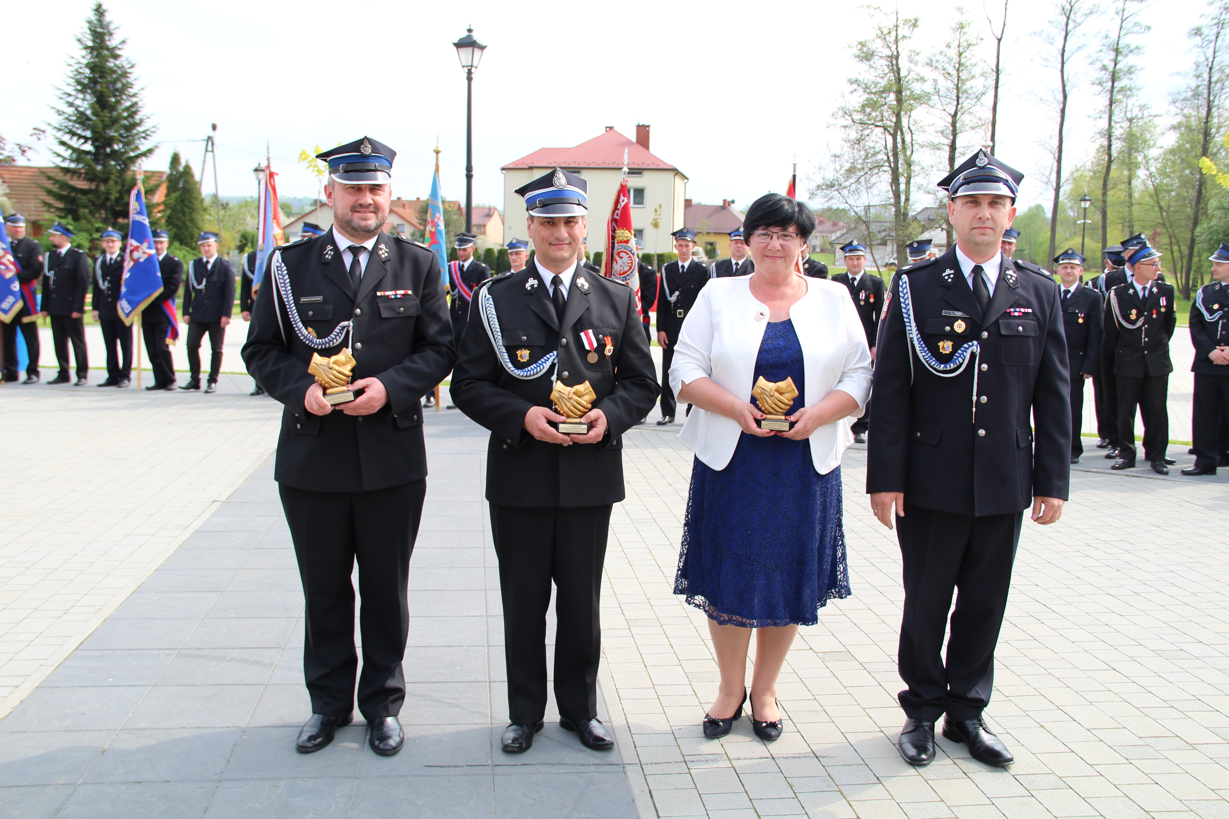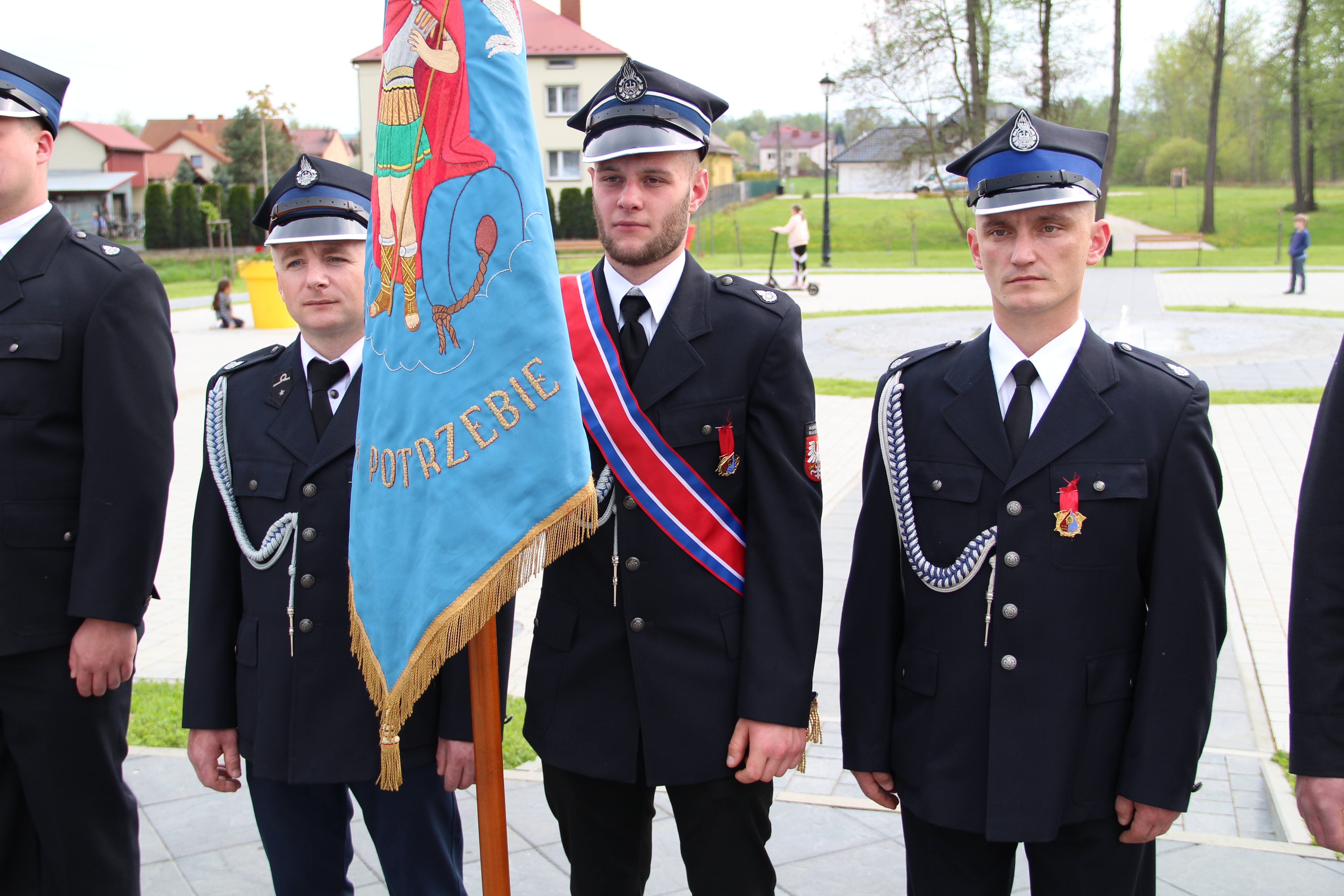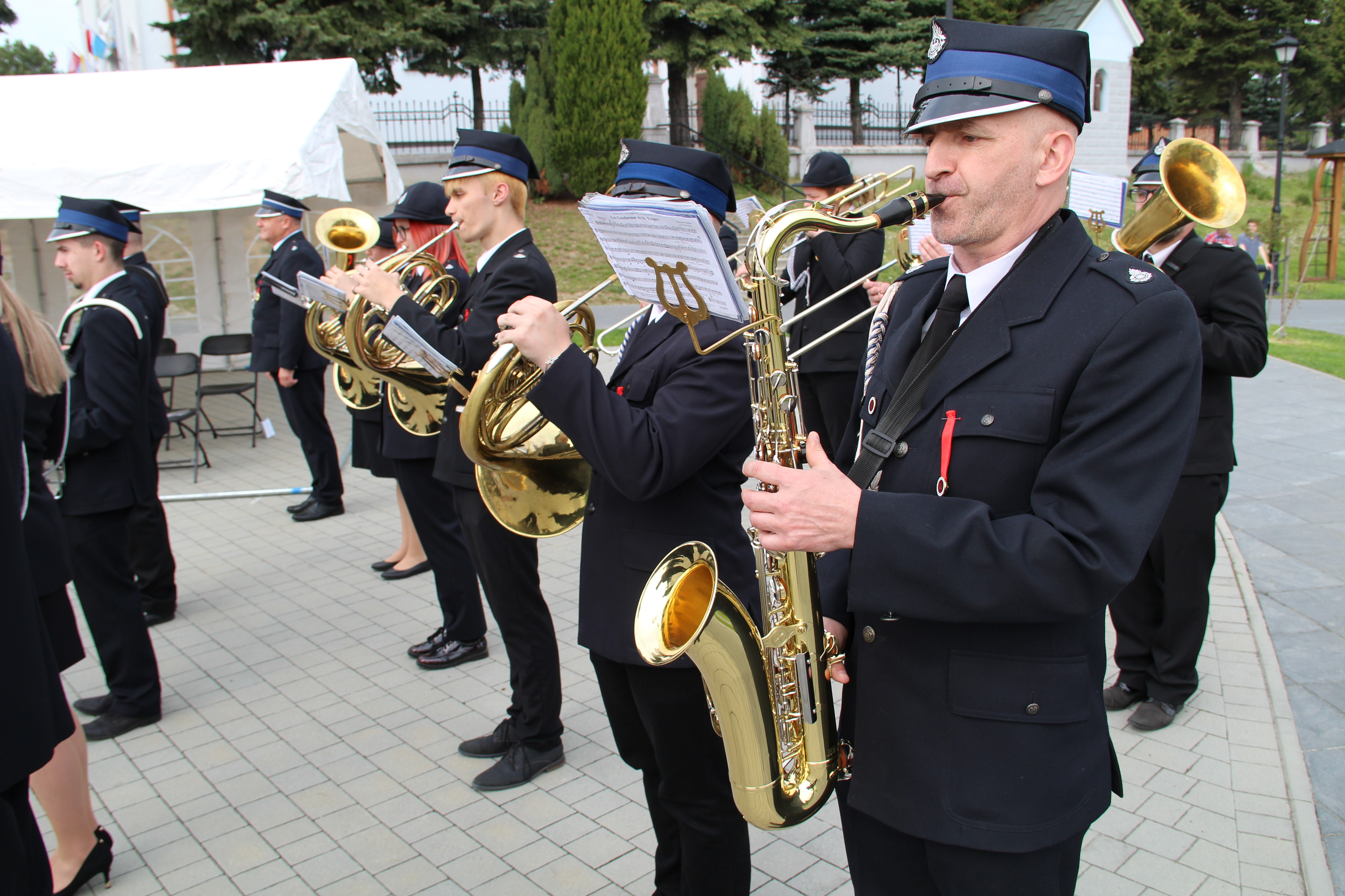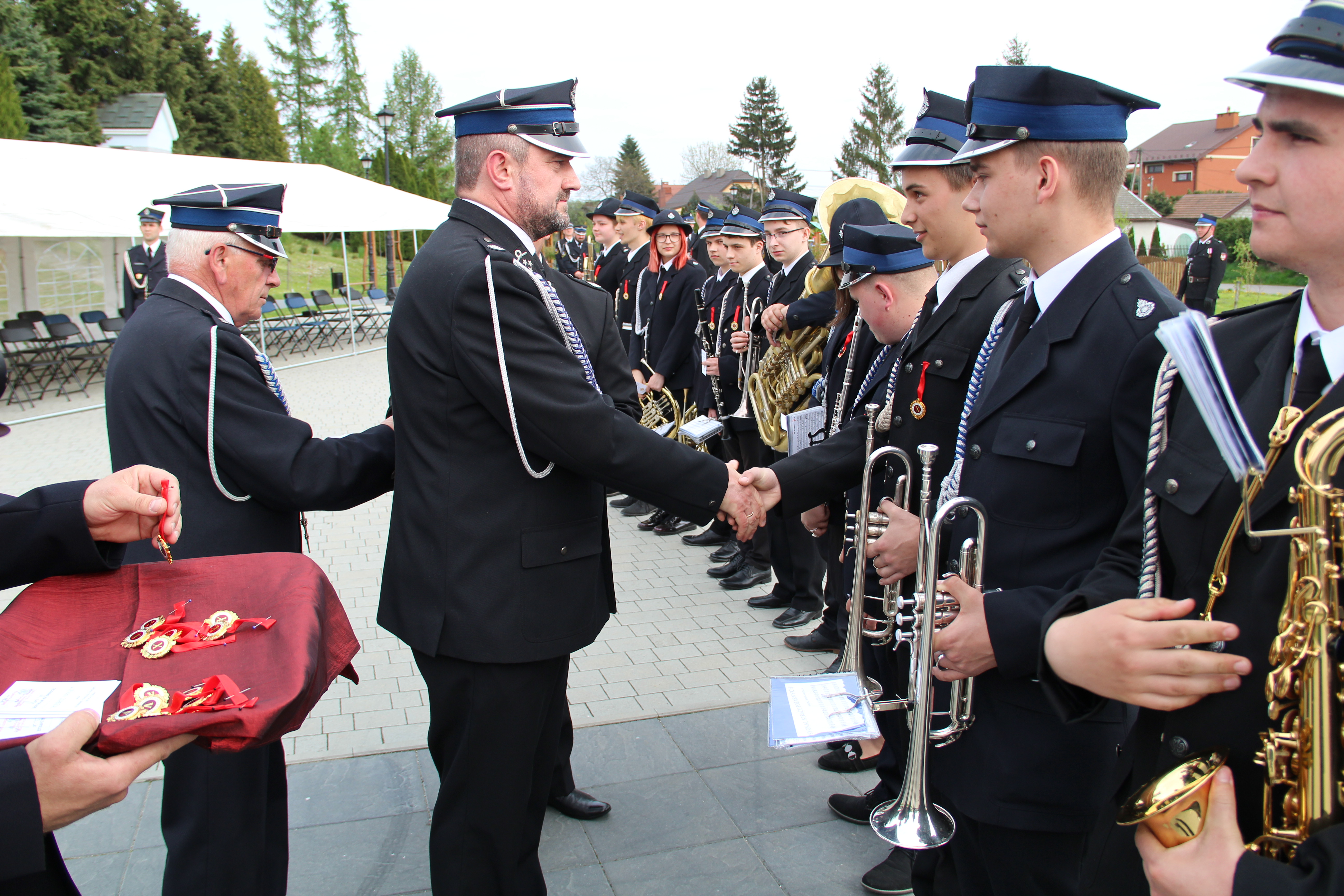Po Mszy Świętej jednostki OSP wraz z pocztami sztandarowymi i pozostali uczestnicy uroczystości w szyku strażackim przy akompaniamencie orkiestry dętej przemaszerowali na „Ryneczek”.