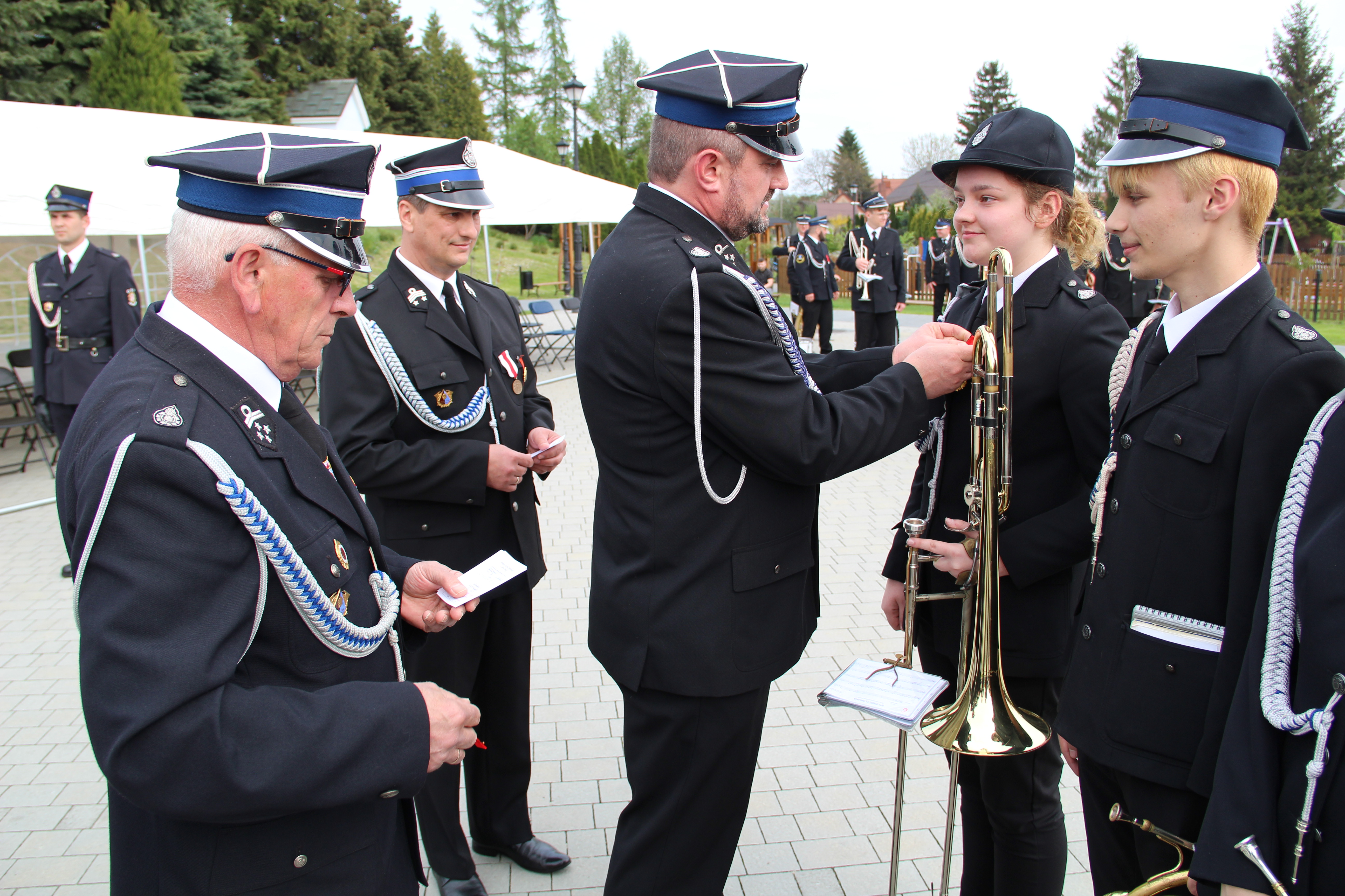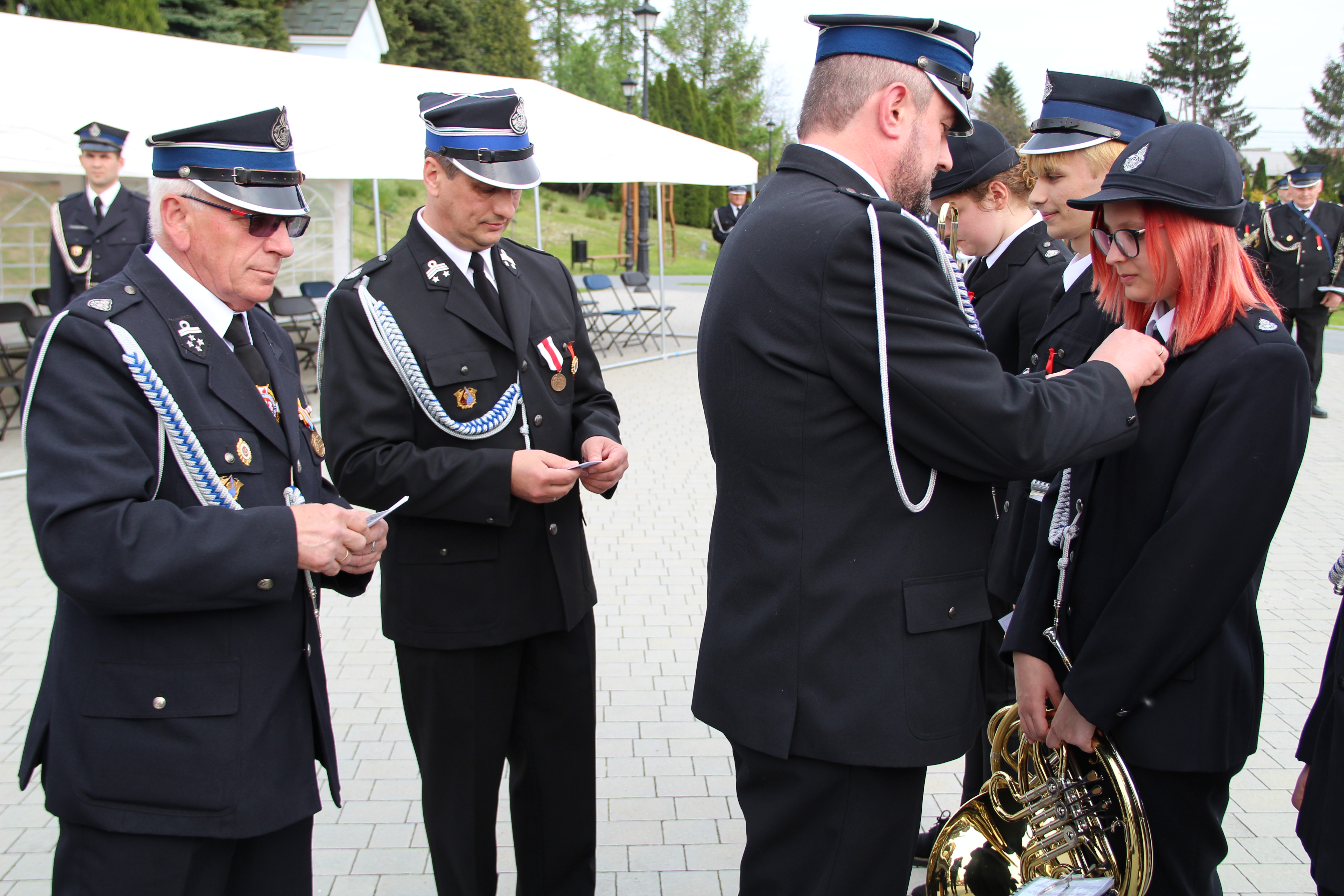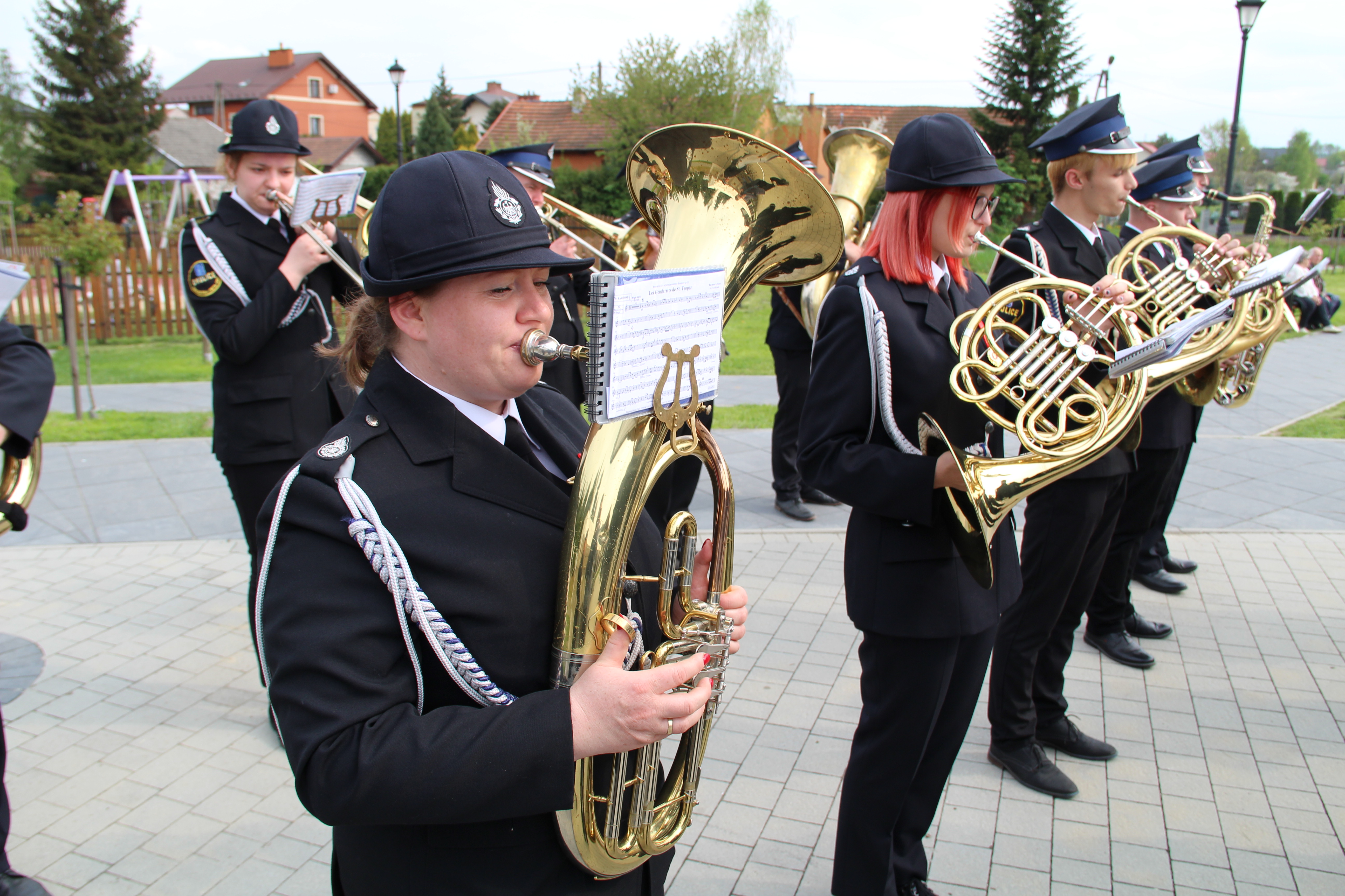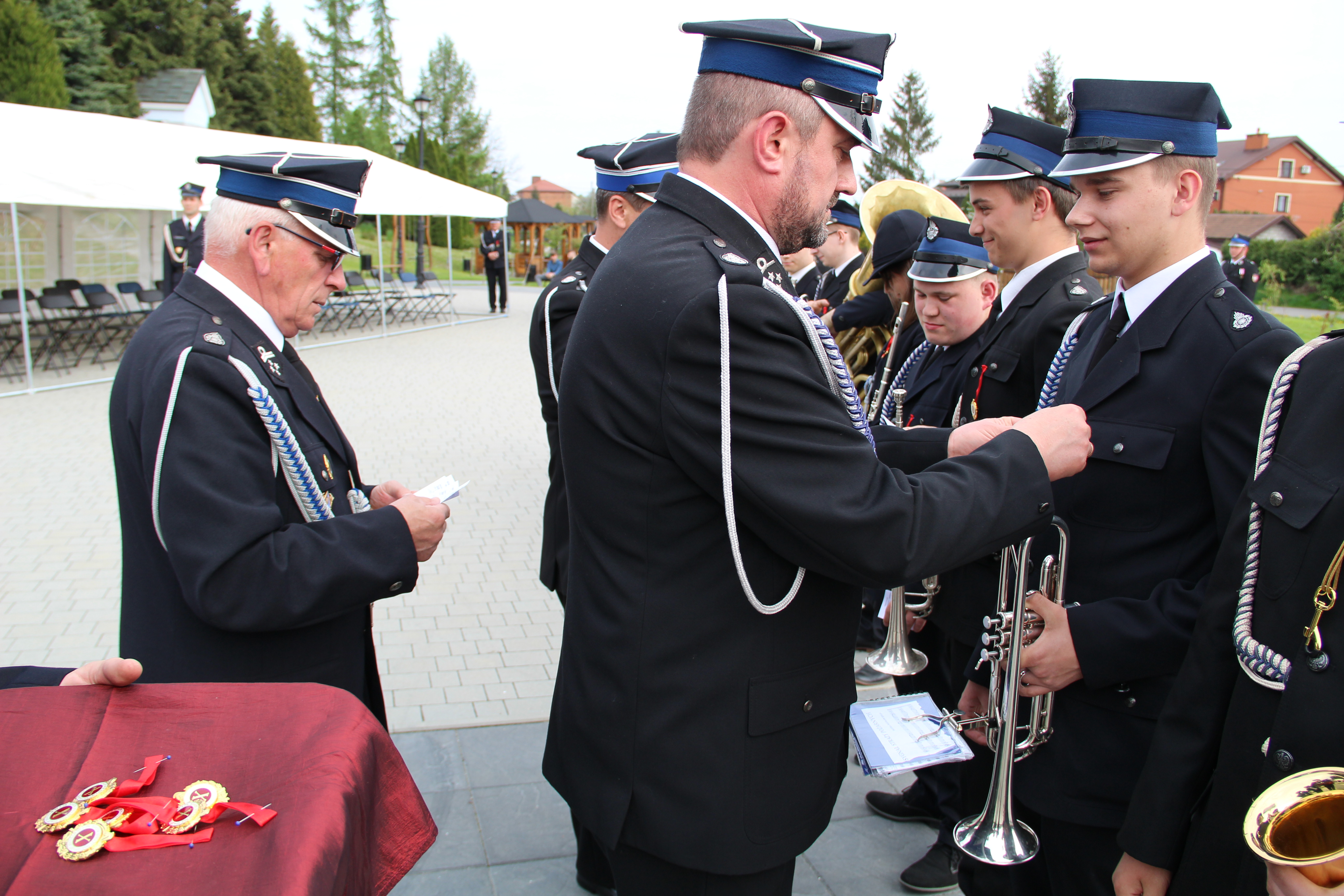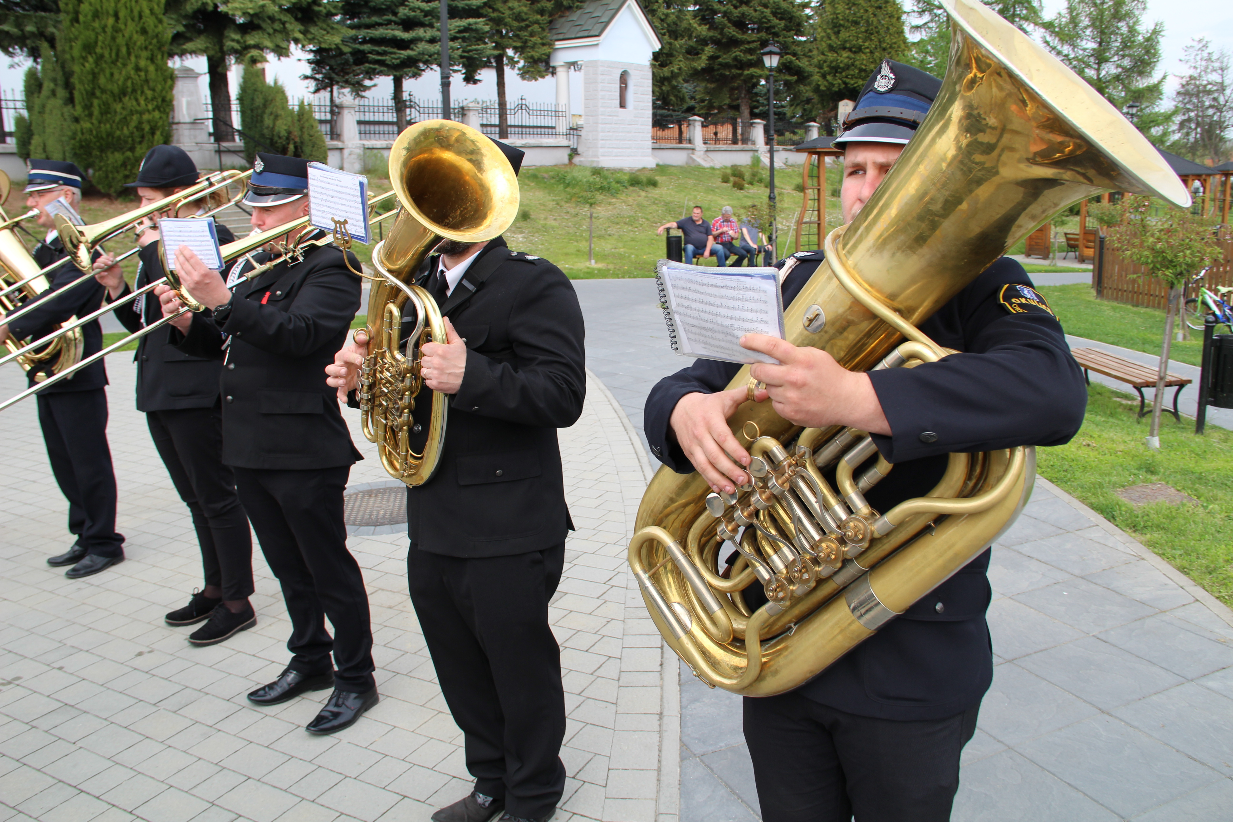 Po Mszy Świętej jednostki OSP wraz z pocztami sztandarowymi i pozostali uczestnicy uroczystości w szyku strażackim przy akompaniamencie orkiestry dętej przemaszerowali na „Ryneczek”.
