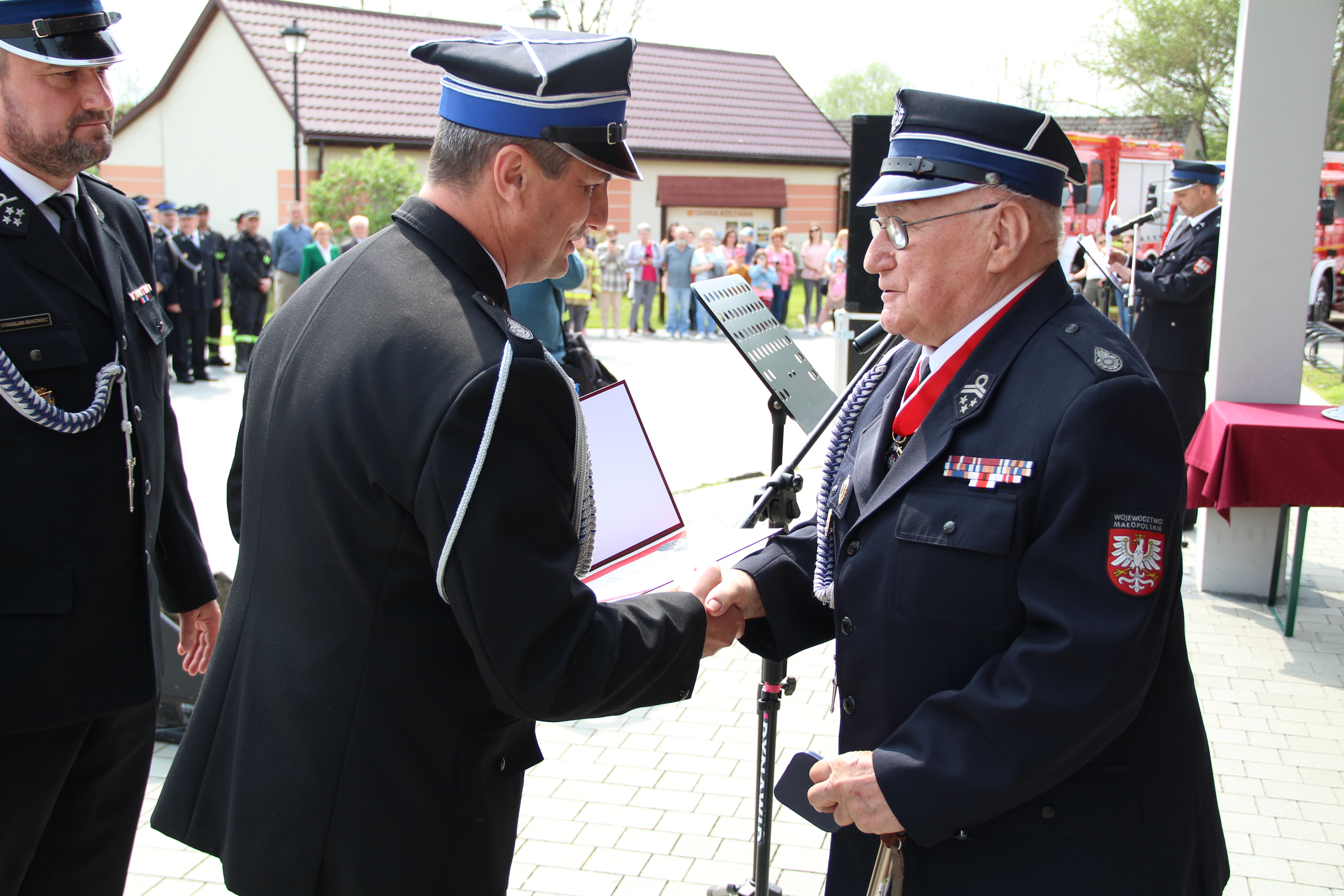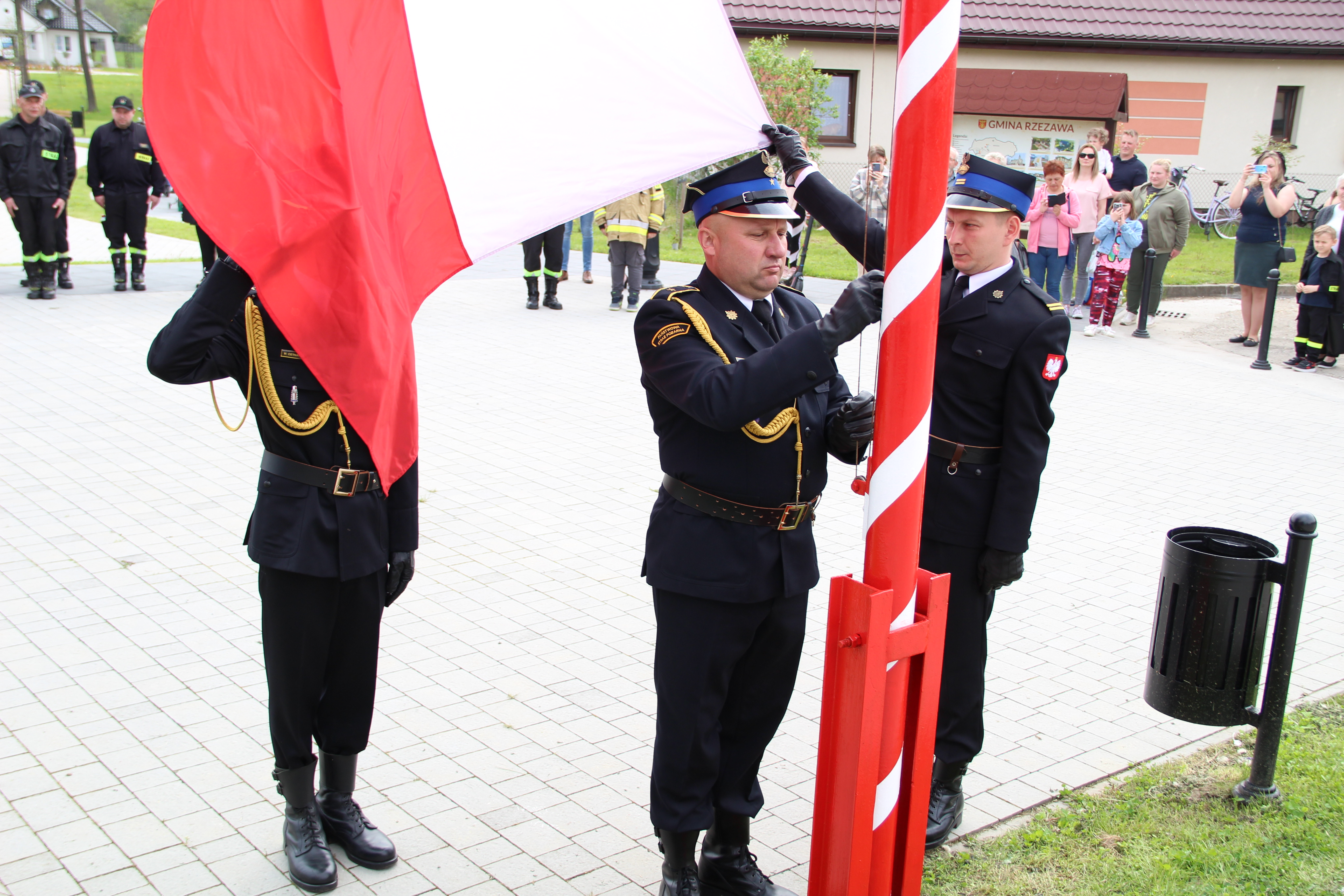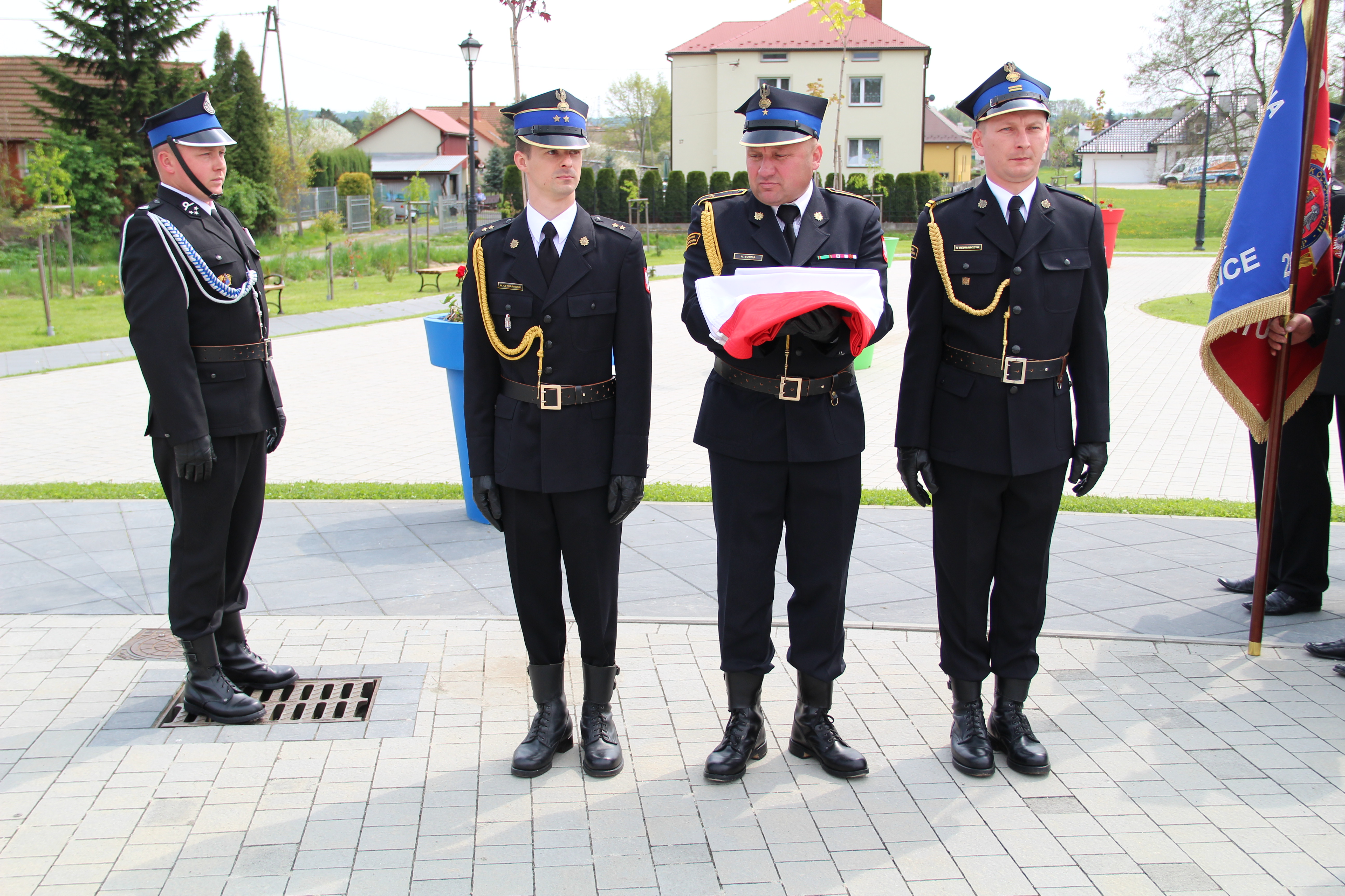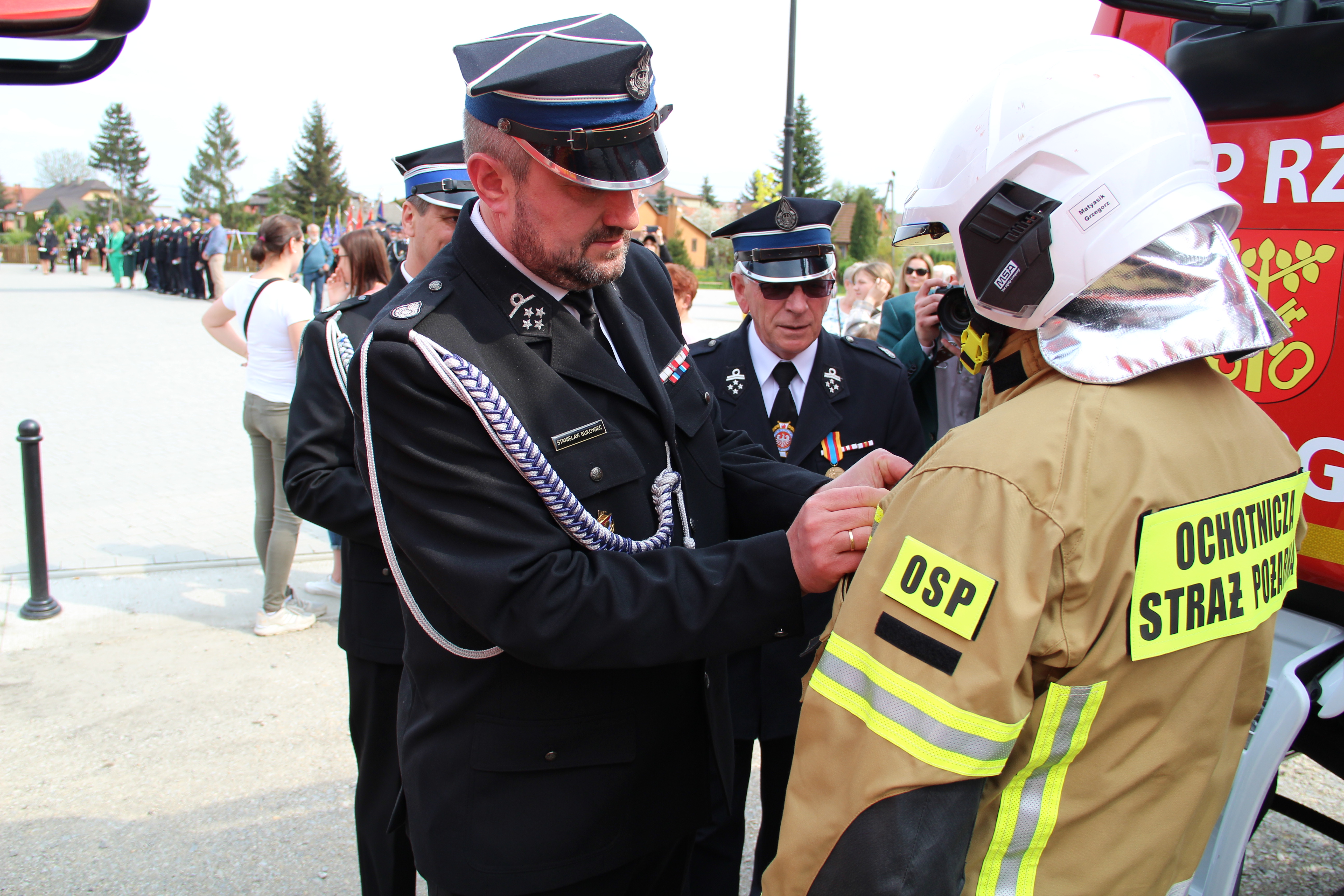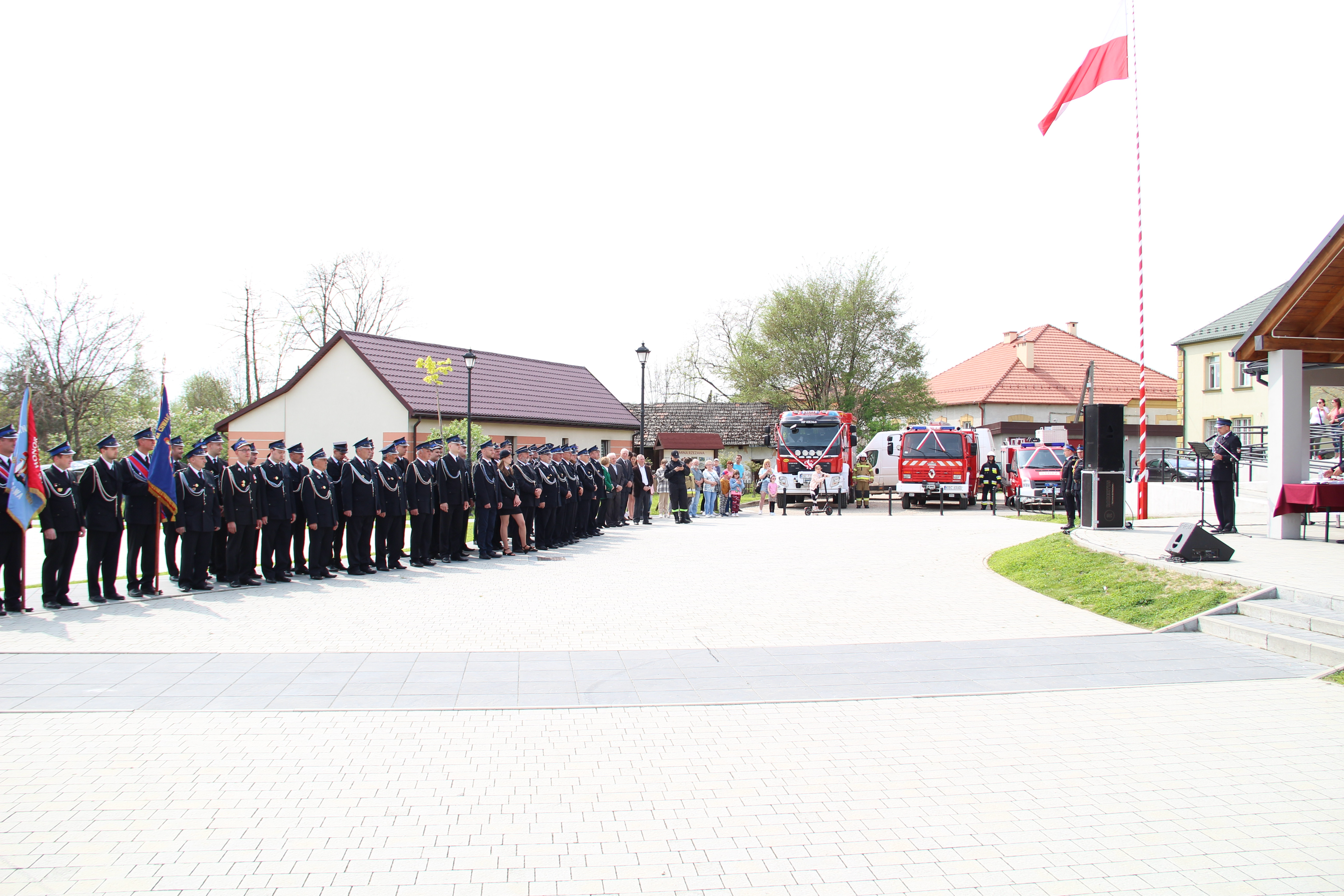Dalsze oficjalne obchody rozpoczęły się od złożenia na ręce Członka Prezydium Zarządu Powiatowego Oddziału ZOSP RP w Bochni Stanisława Bukowca meldunku przez dowódcę uroczystości - druha Mateusza Satołę. Następnie zgodnie z ceremoniałem pożarniczym na maszt została wywieszona biało-czerwona flaga, po czym rozbrzmiał Mazurek Dąbrowskiego. Potem Wójt Mariusz Palej przywitał wszystkich przybyłych na III Gminny Dzień Strażaka, a Ksiądz Prałat Stefan Broniak poświęcił pojazdy pożarnicze.