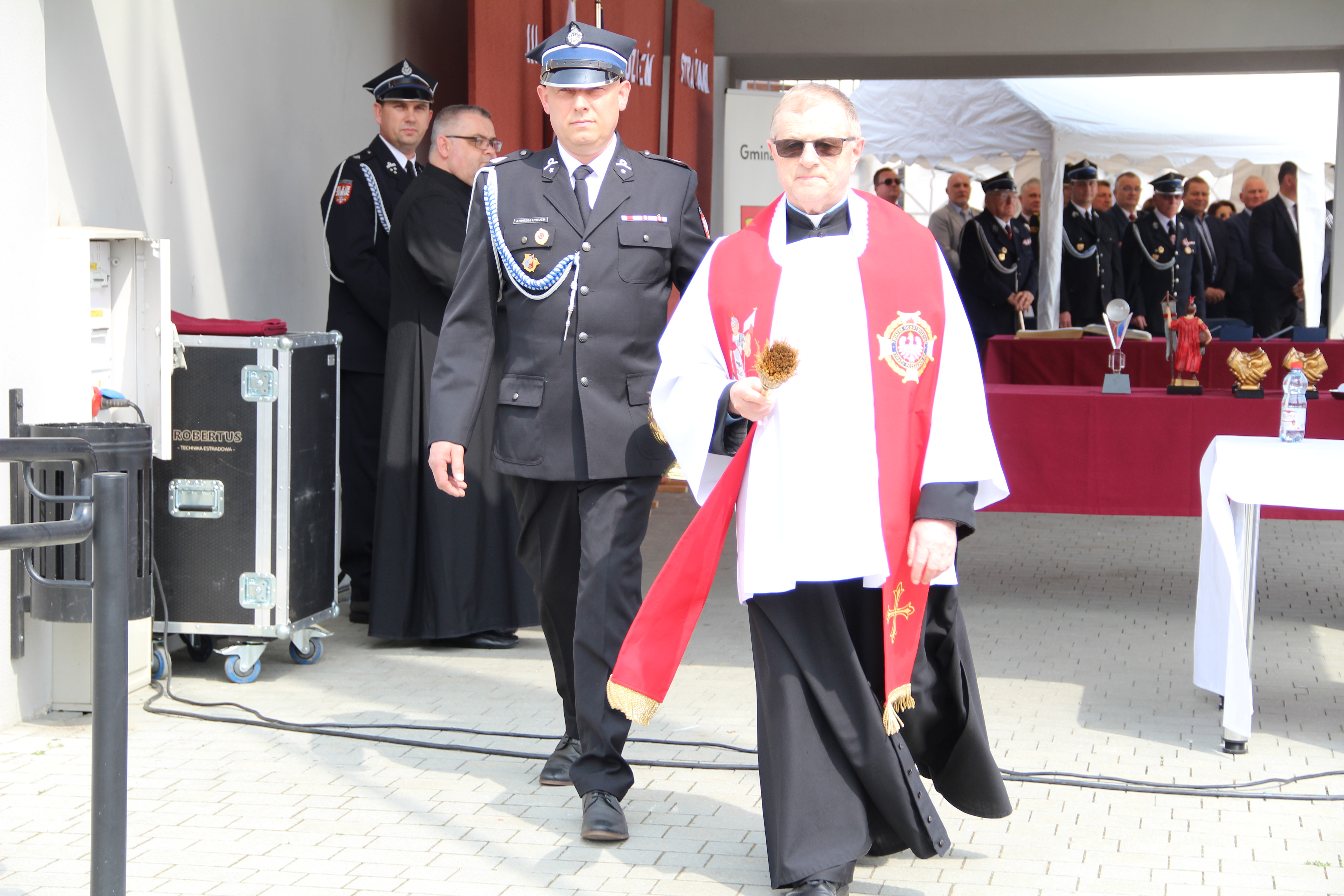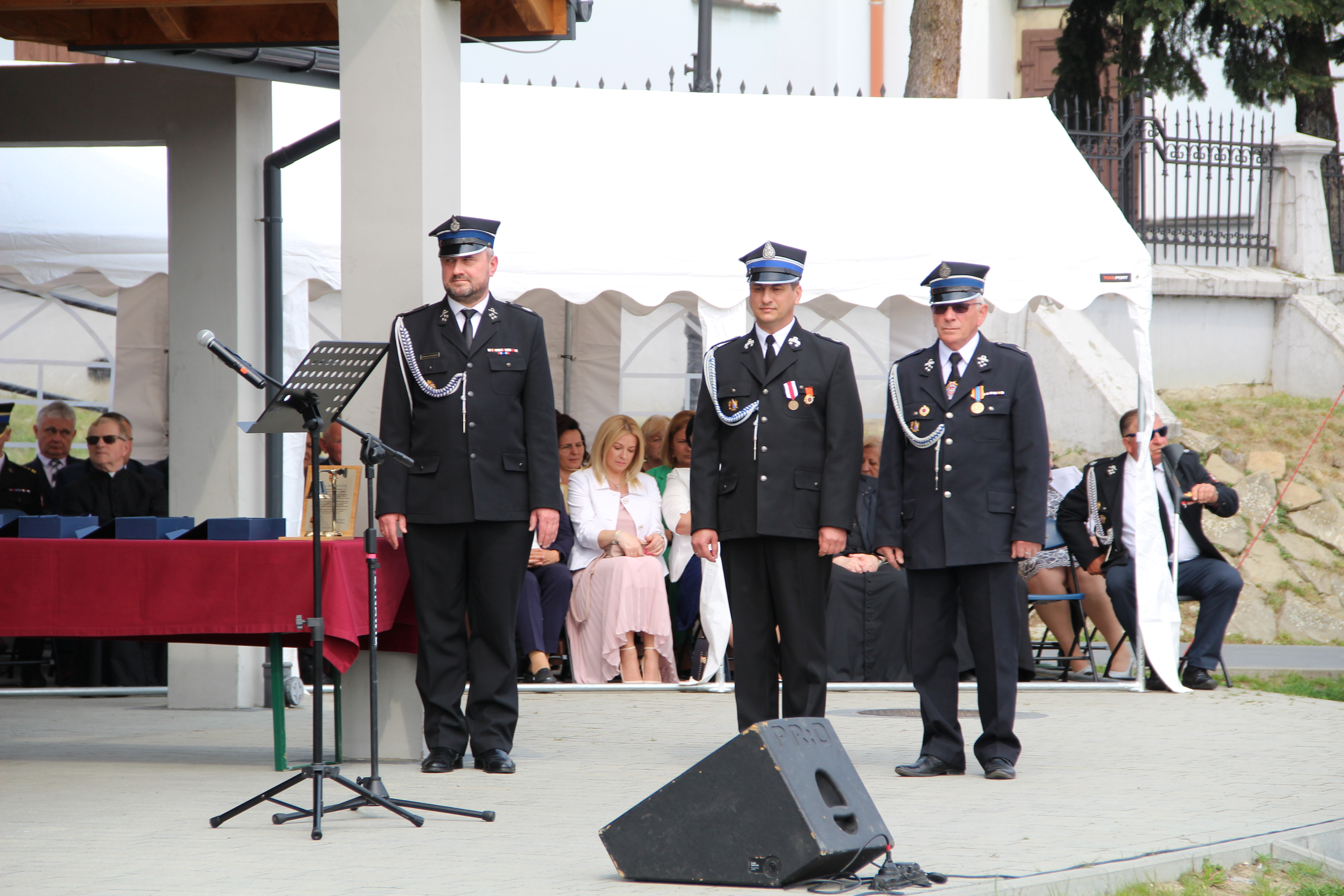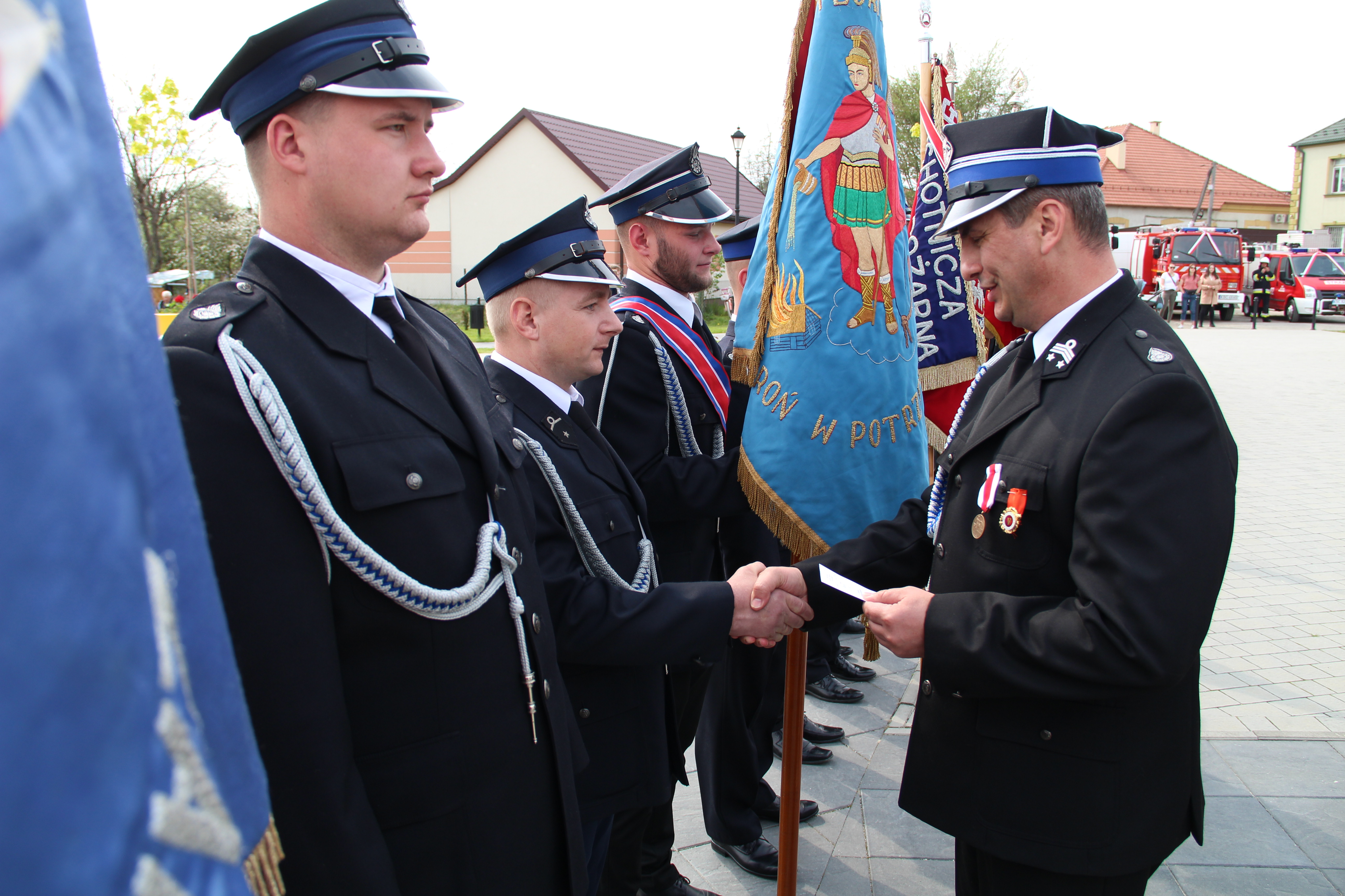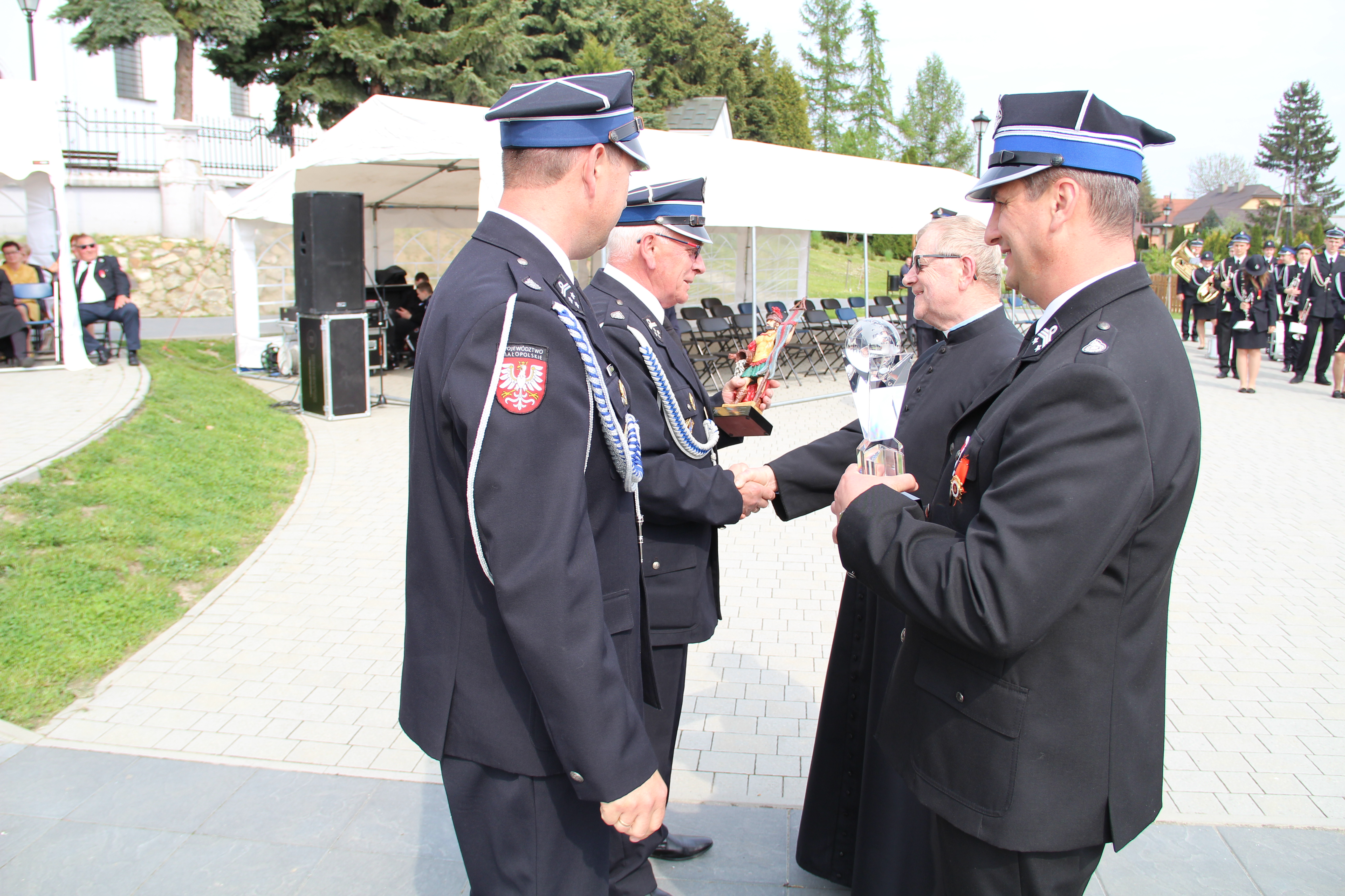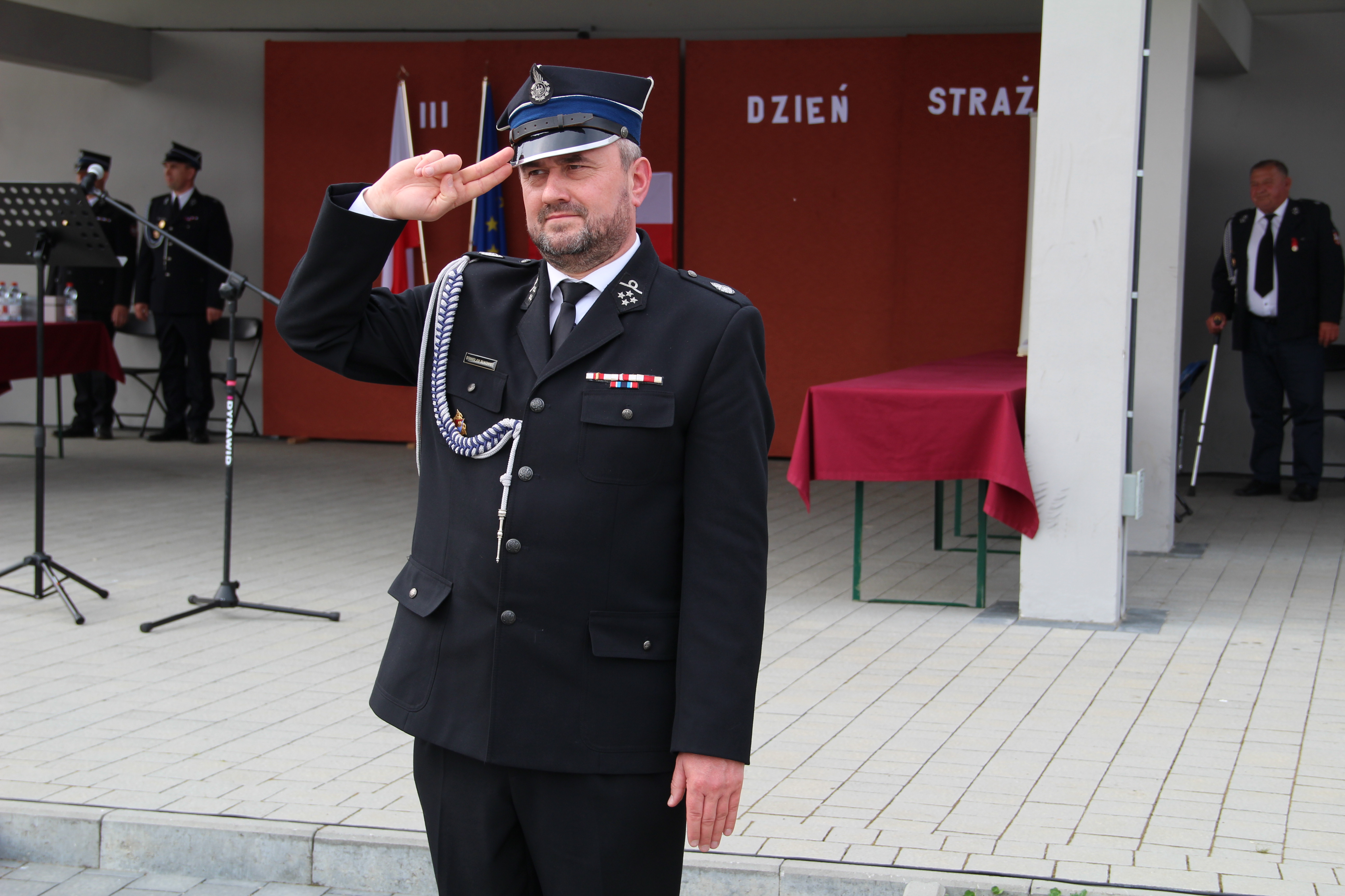 Dalsze oficjalne obchody rozpoczęły się od złożenia na ręce Członka Prezydium Zarządu Powiatowego Oddziału ZOSP RP w Bochni Stanisława Bukowca meldunku przez dowódcę uroczystości - druha Mateusza Satołę. Następnie zgodnie z ceremoniałem pożarniczym na maszt została wywieszona biało-czerwona flaga, po czym rozbrzmiał Mazurek Dąbrowskiego. Potem Wójt Mariusz Palej przywitał wszystkich przybyłych na III Gminny Dzień Strażaka, a Ksiądz Prałat Stefan Broniak poświęcił pojazdy pożarnicze.