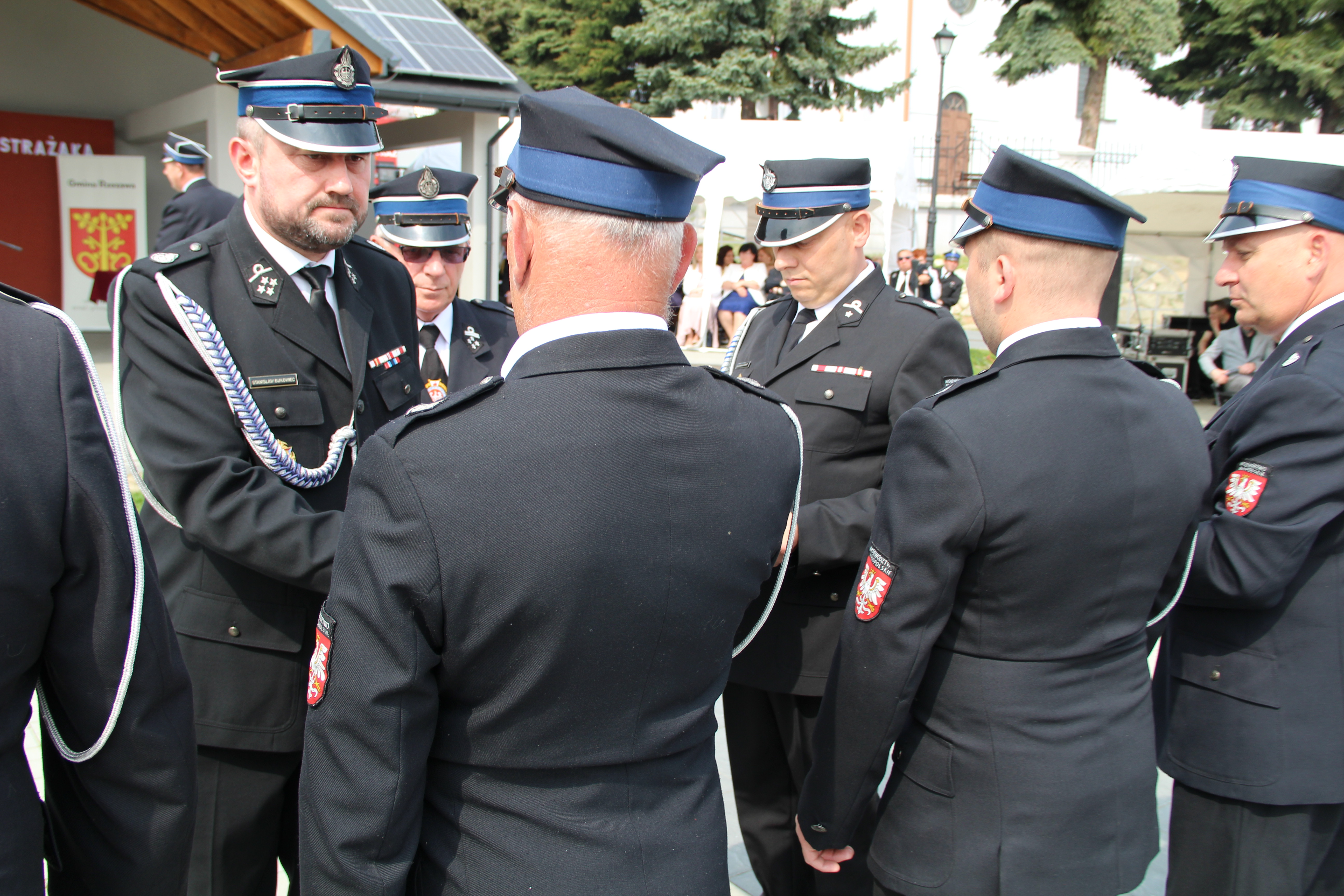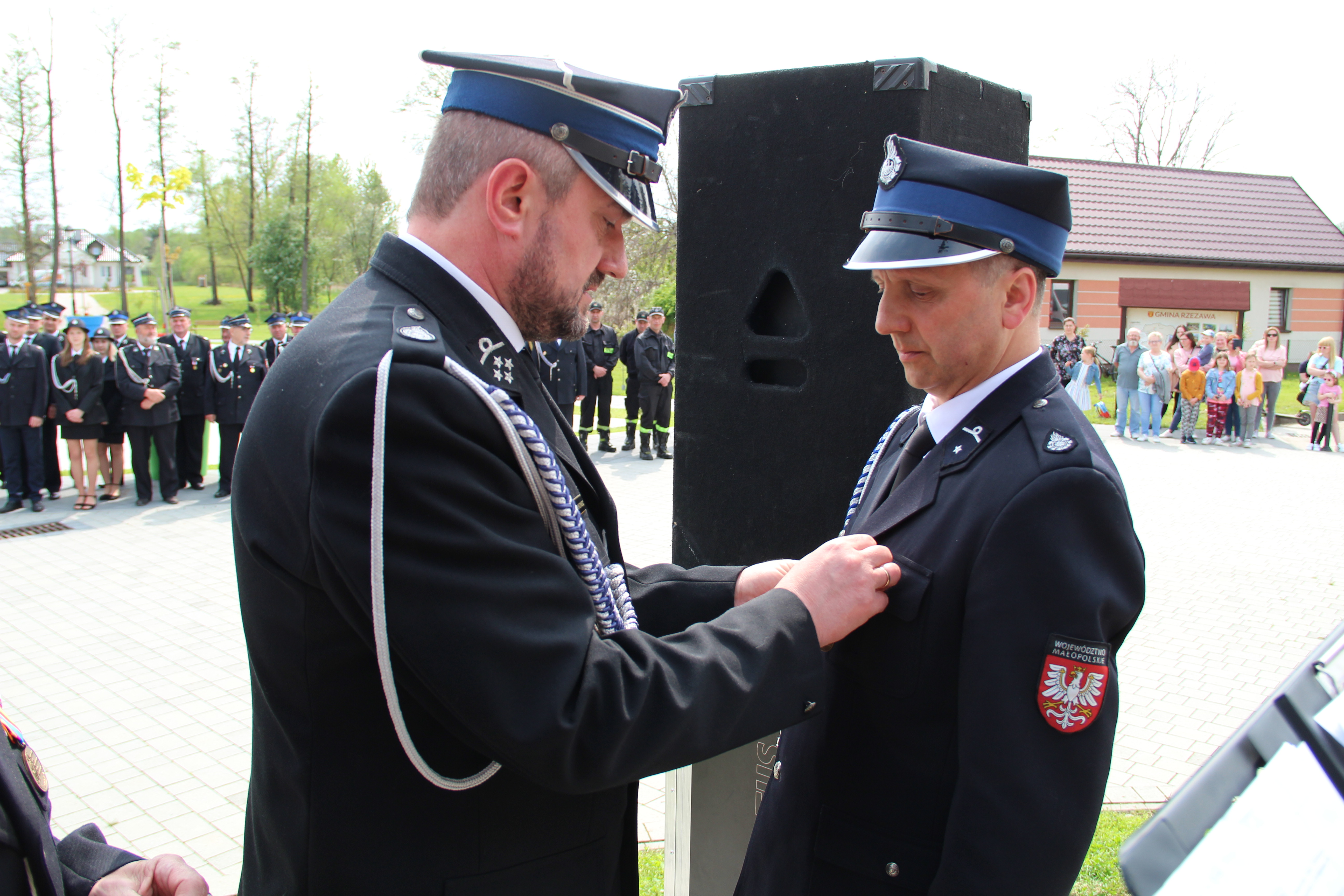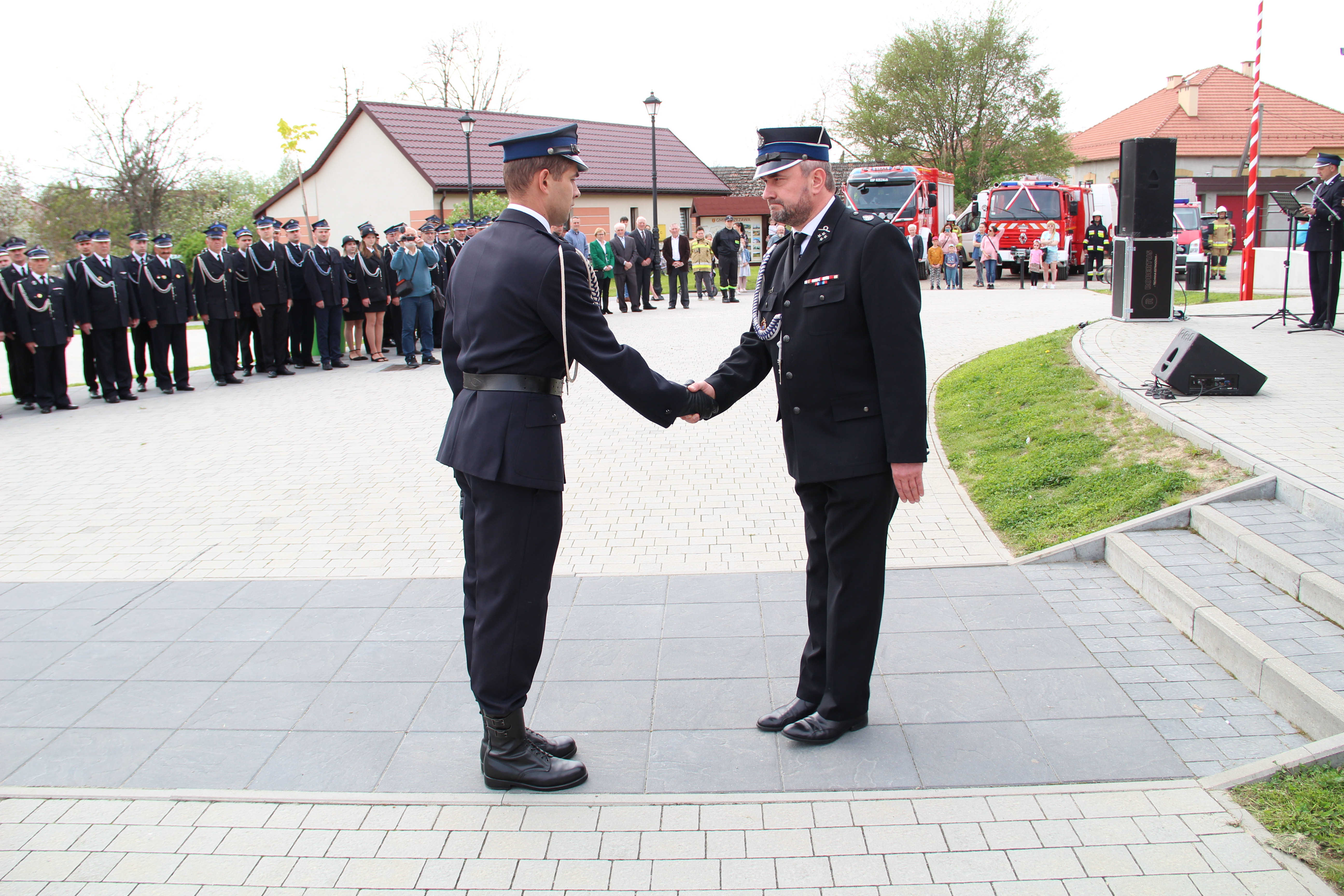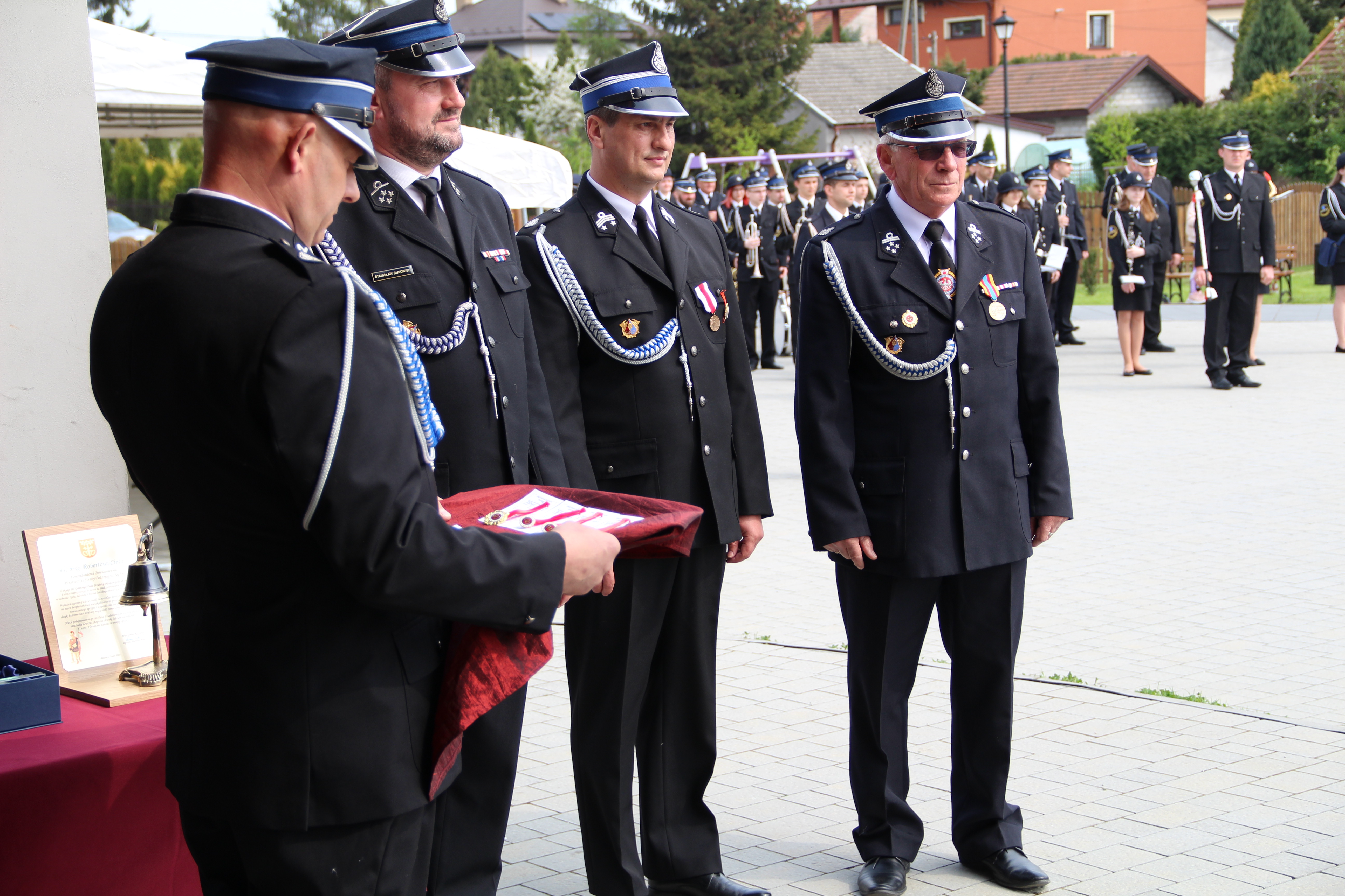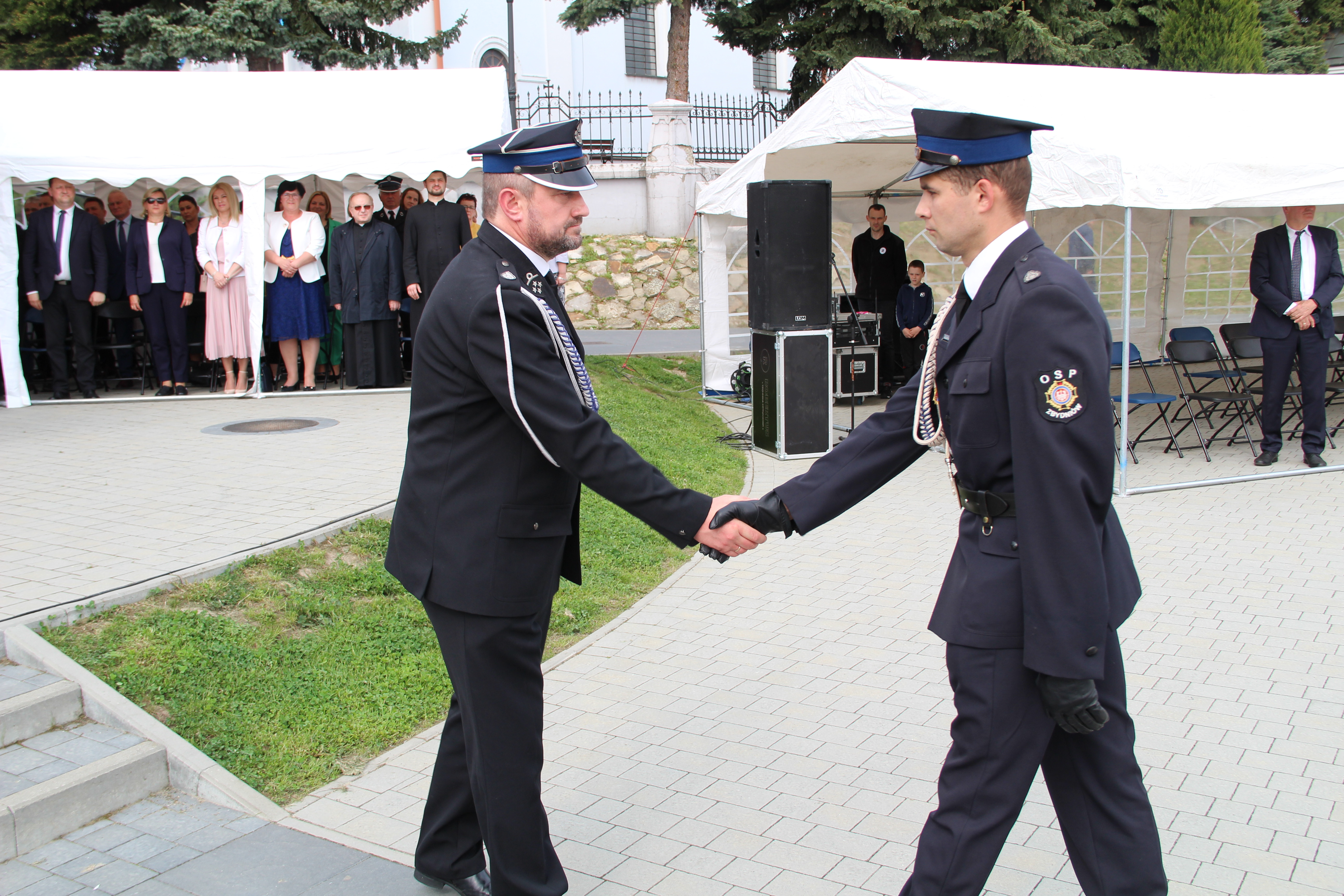 Dalsze oficjalne obchody rozpoczęły się od złożenia na ręce Członka Prezydium Zarządu Powiatowego Oddziału ZOSP RP w Bochni Stanisława Bukowca meldunku przez dowódcę uroczystości - druha Mateusza Satołę. Następnie zgodnie z ceremoniałem pożarniczym na maszt została wywieszona biało-czerwona flaga, po czym rozbrzmiał Mazurek Dąbrowskiego. Potem Wójt Mariusz Palej przywitał wszystkich przybyłych na III Gminny Dzień Strażaka, a Ksiądz Prałat Stefan Broniak poświęcił pojazdy pożarnicze.