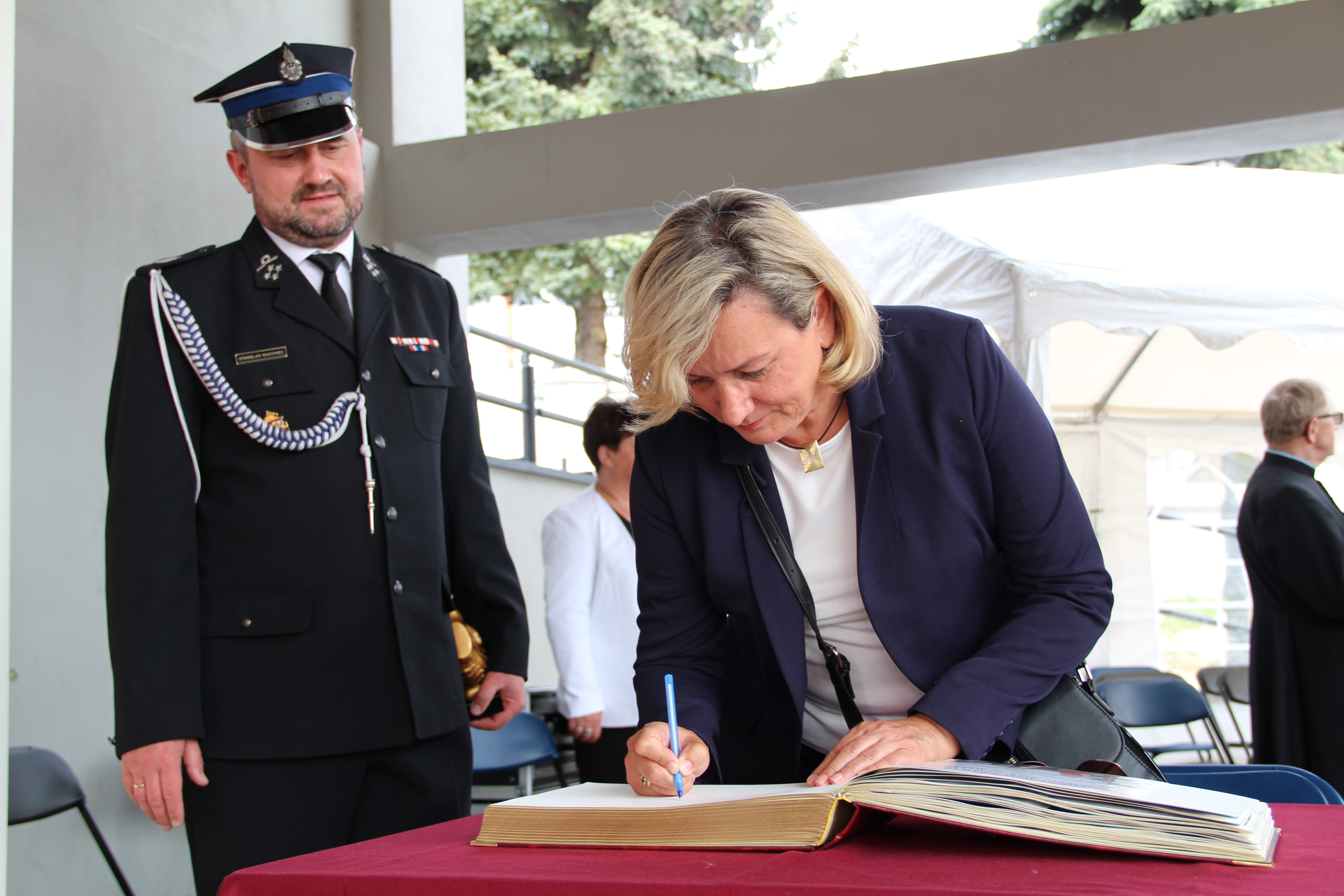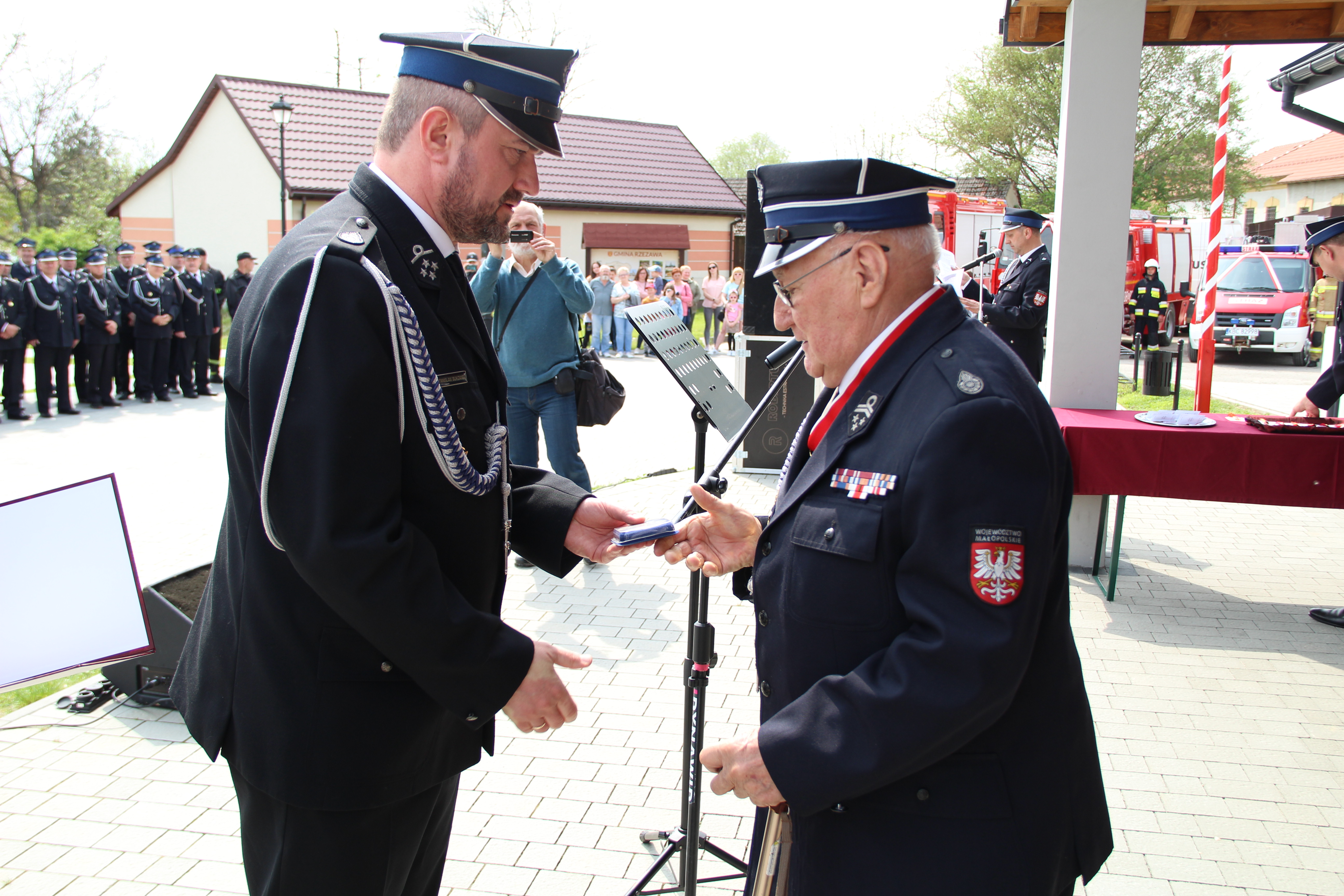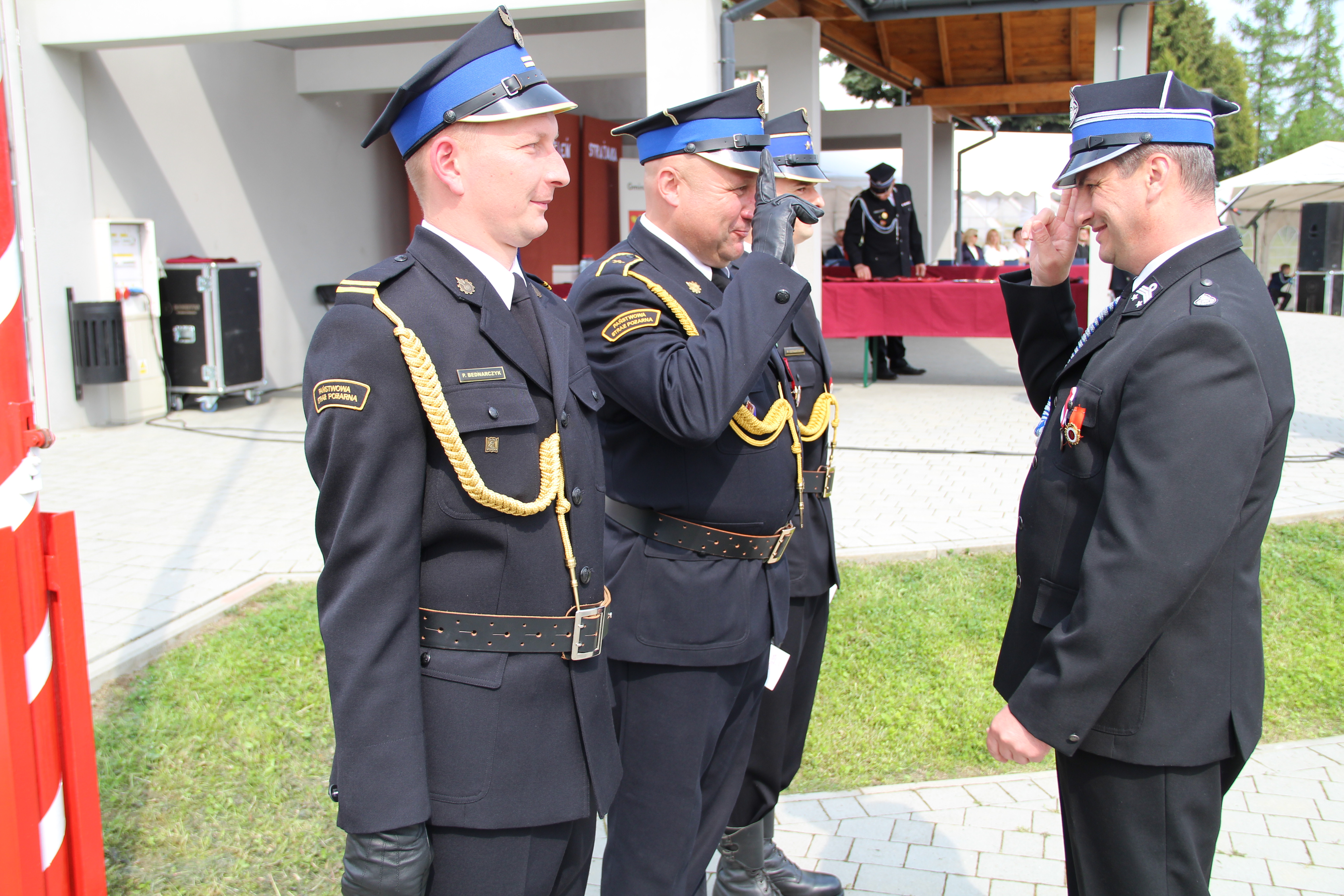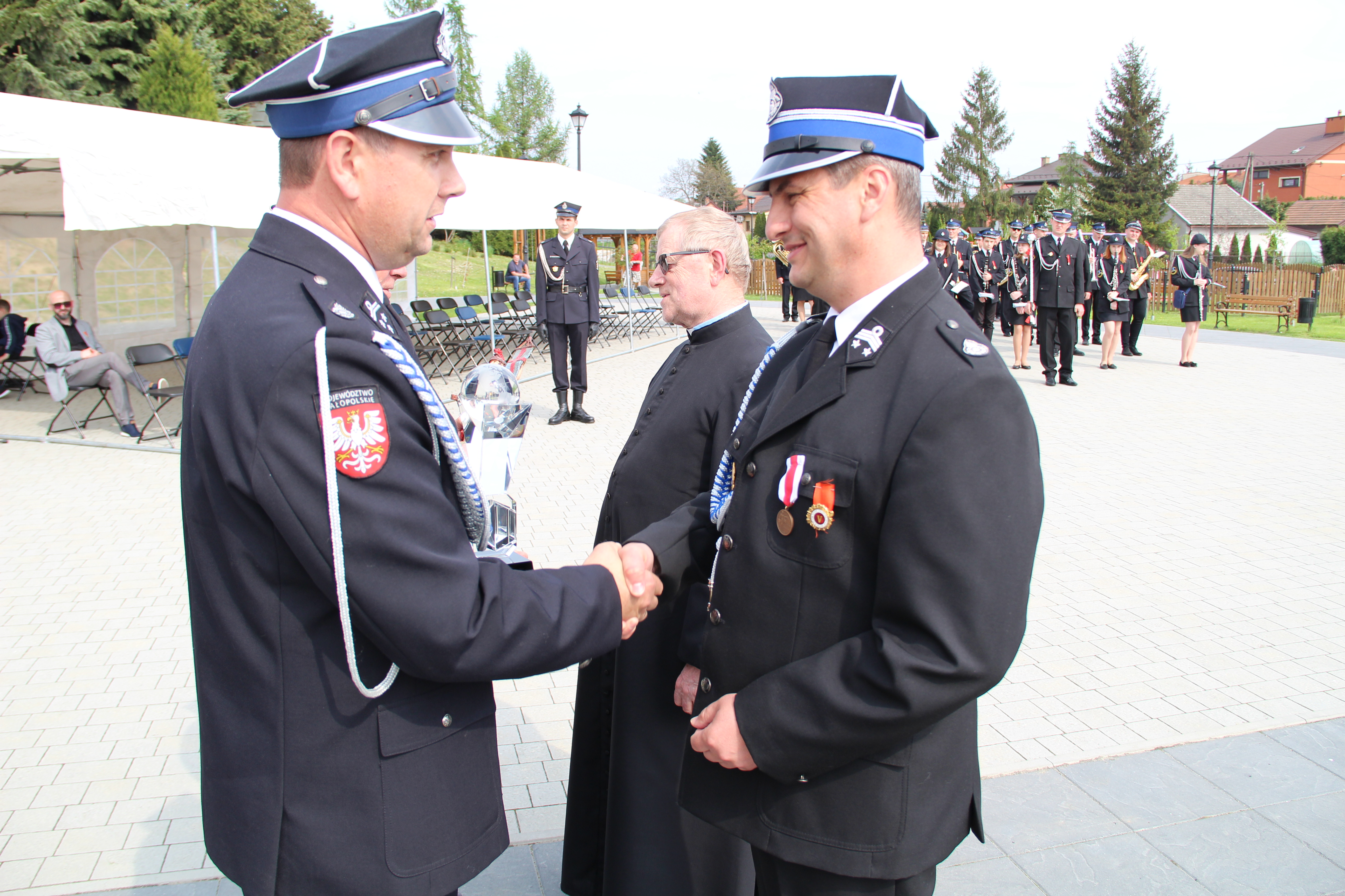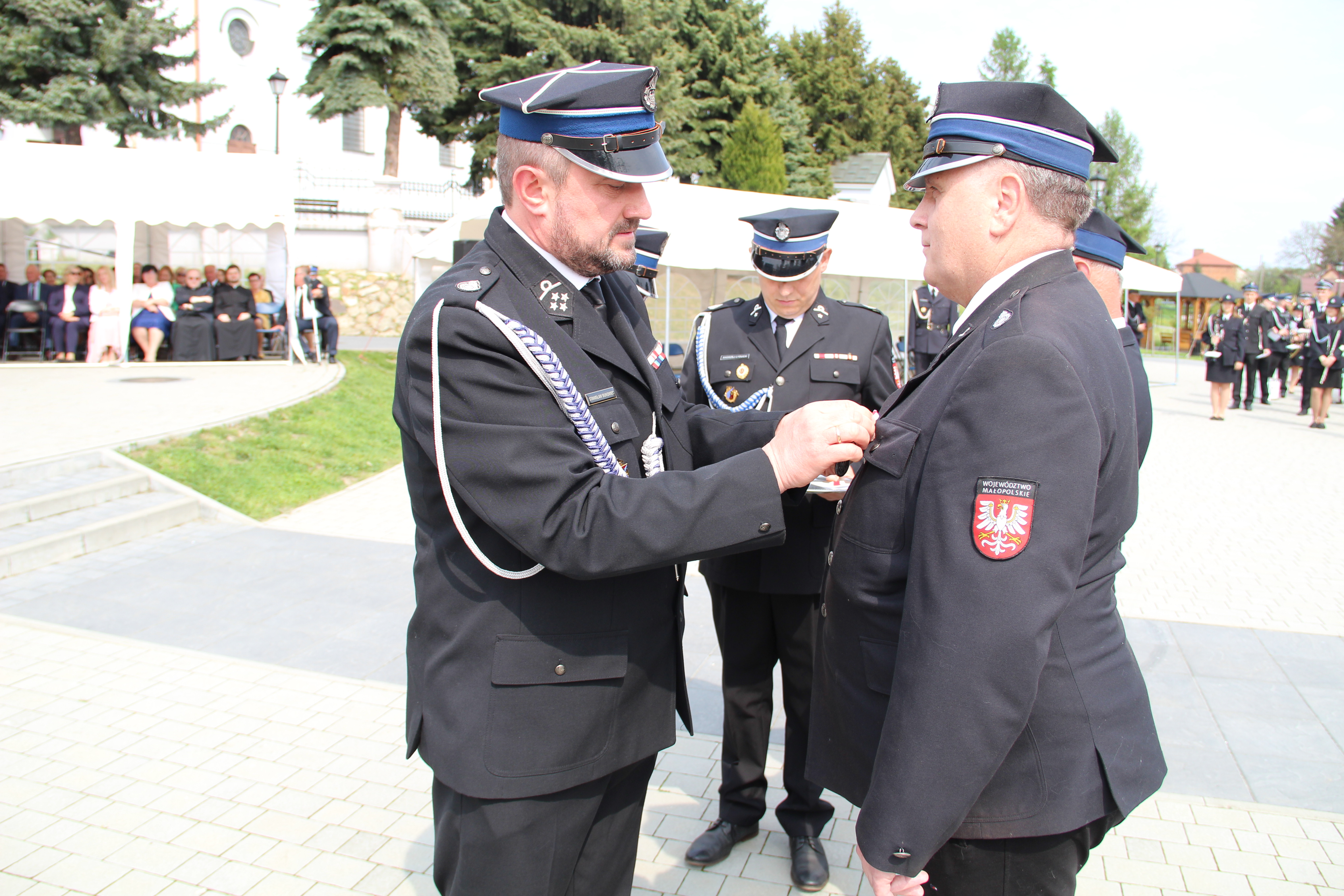 Dalsze oficjalne obchody rozpoczęły się od złożenia na ręce Członka Prezydium Zarządu Powiatowego Oddziału ZOSP RP w Bochni Stanisława Bukowca meldunku przez dowódcę uroczystości - druha Mateusza Satołę. Następnie zgodnie z ceremoniałem pożarniczym na maszt została wywieszona biało-czerwona flaga, po czym rozbrzmiał Mazurek Dąbrowskiego. Potem Wójt Mariusz Palej przywitał wszystkich przybyłych na III Gminny Dzień Strażaka, a Ksiądz Prałat Stefan Broniak poświęcił pojazdy pożarnicze.
