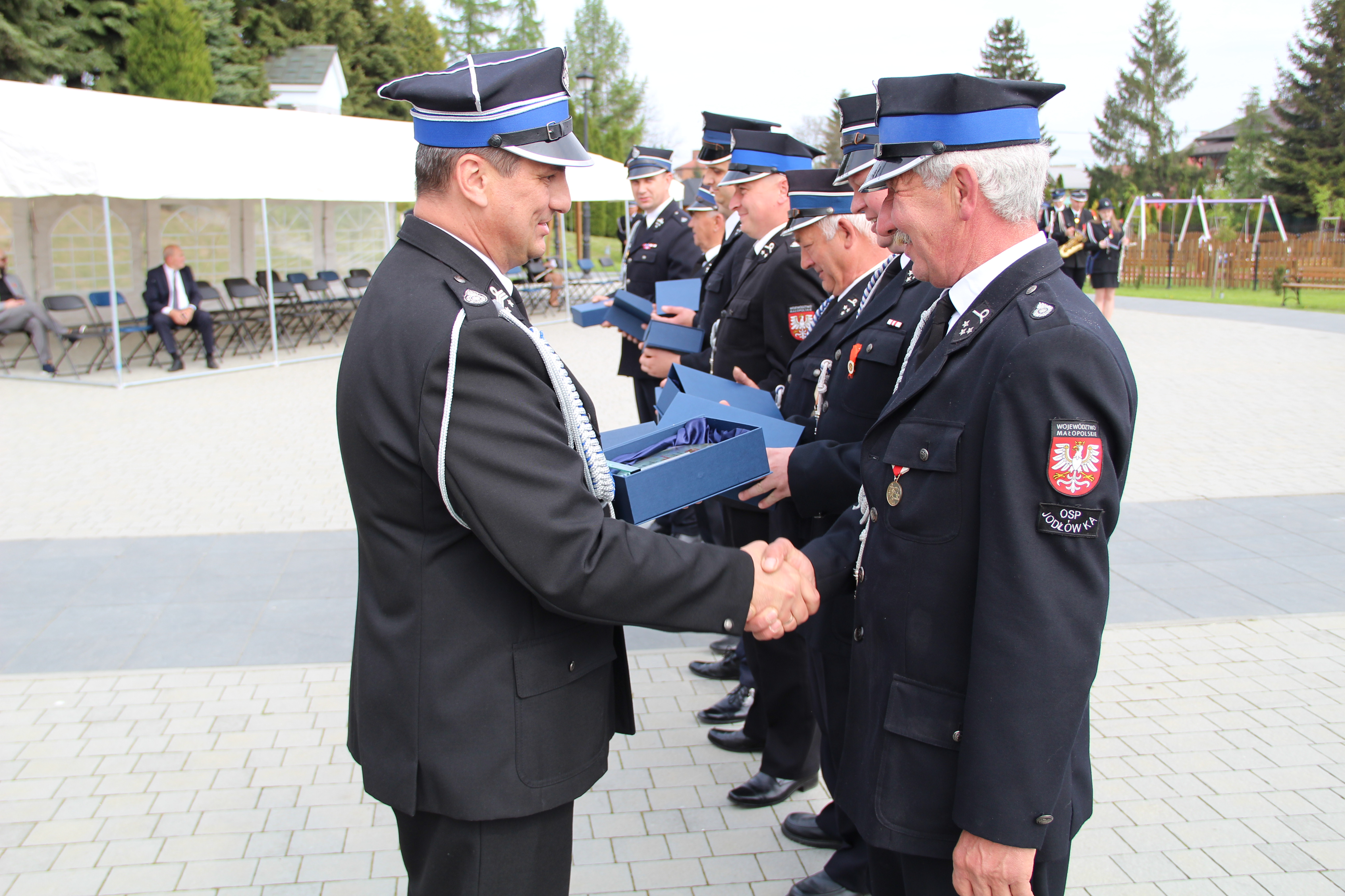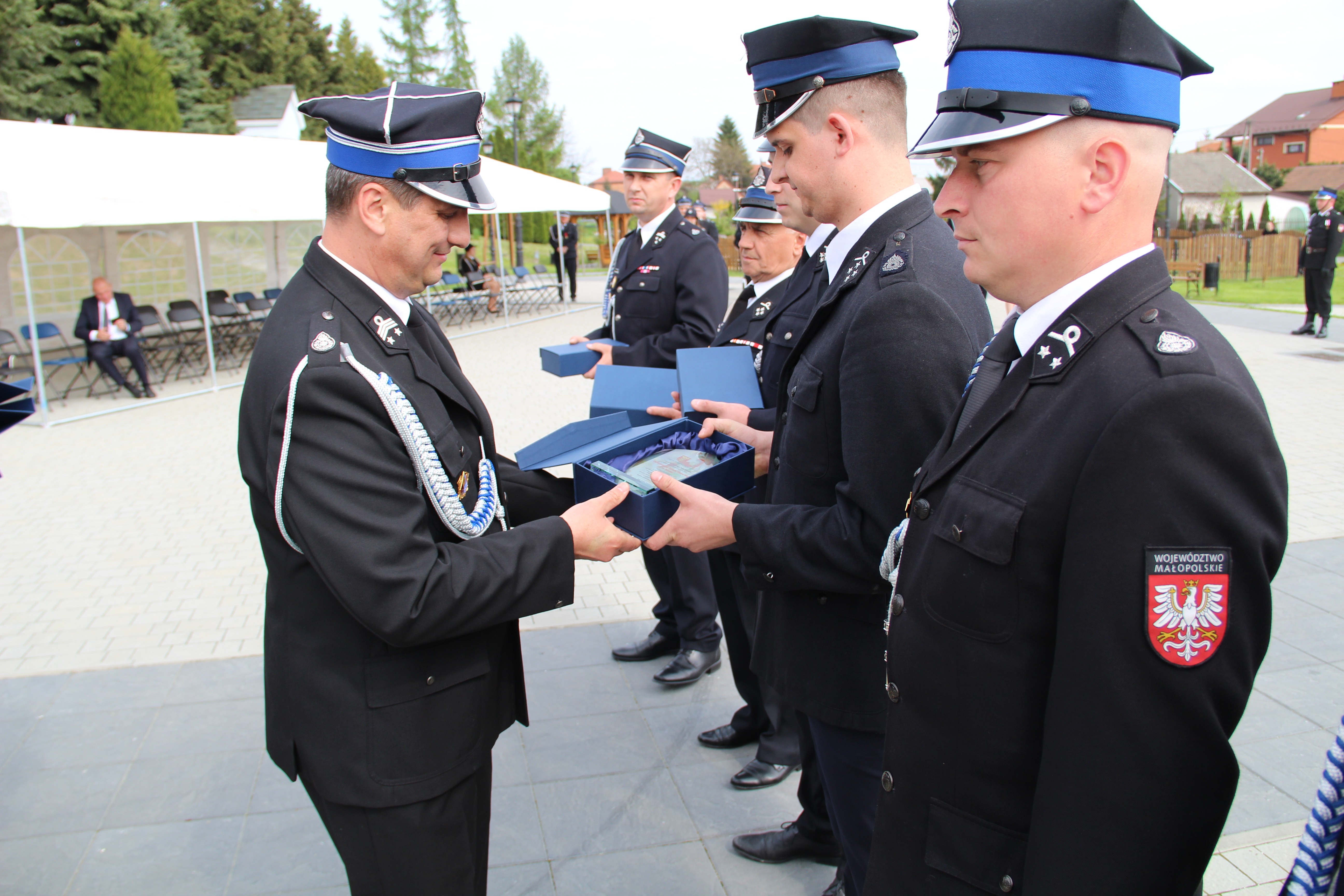 Kolejnym punktem uroczystości było wręczenie odznaczeń i wyróżnień. Były one wręczane przez Członka Prezydium Zarządu Powiatowego Oddziału ZOSP RP w Bochni i Posła na Sejm RP Stanisława Bukowca, Wójta Mariusza Paleja, który również jest Członkiem Prezydium Zarządu Powiatowego Oddziału ZOSP RP w Bochni oraz Prezesa Zarządu Gminnego Oddziału ZOSP RP w Bochni druha Krzysztofa Kołodzieja.