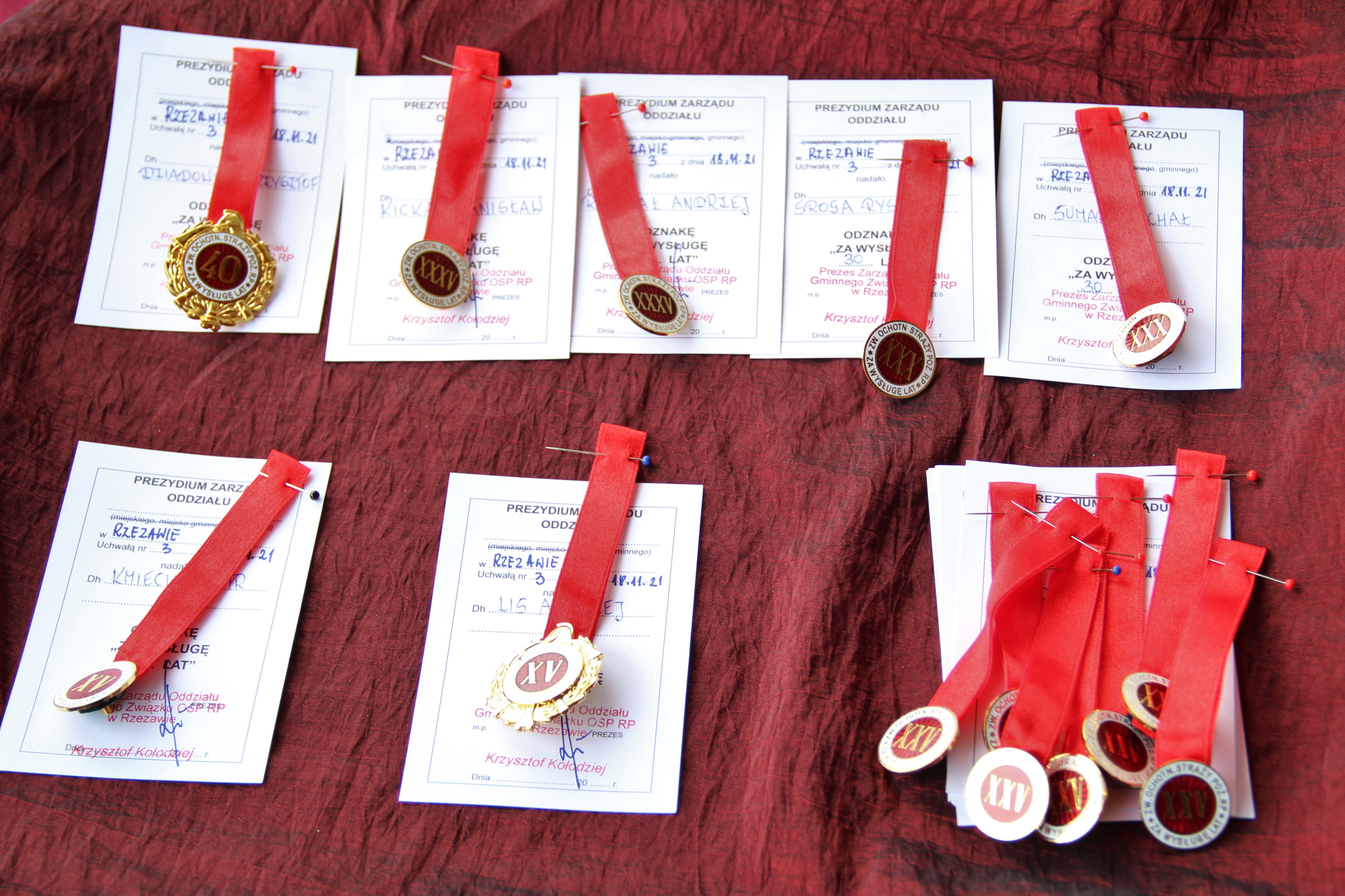 Uchwałą Prezydium Zarządu Oddziału Gminnego Związku Ochotniczych Straży Pożarnych RP w Rzezawie nadało odznaki za wysługę lat. Odznaczeni zostali: