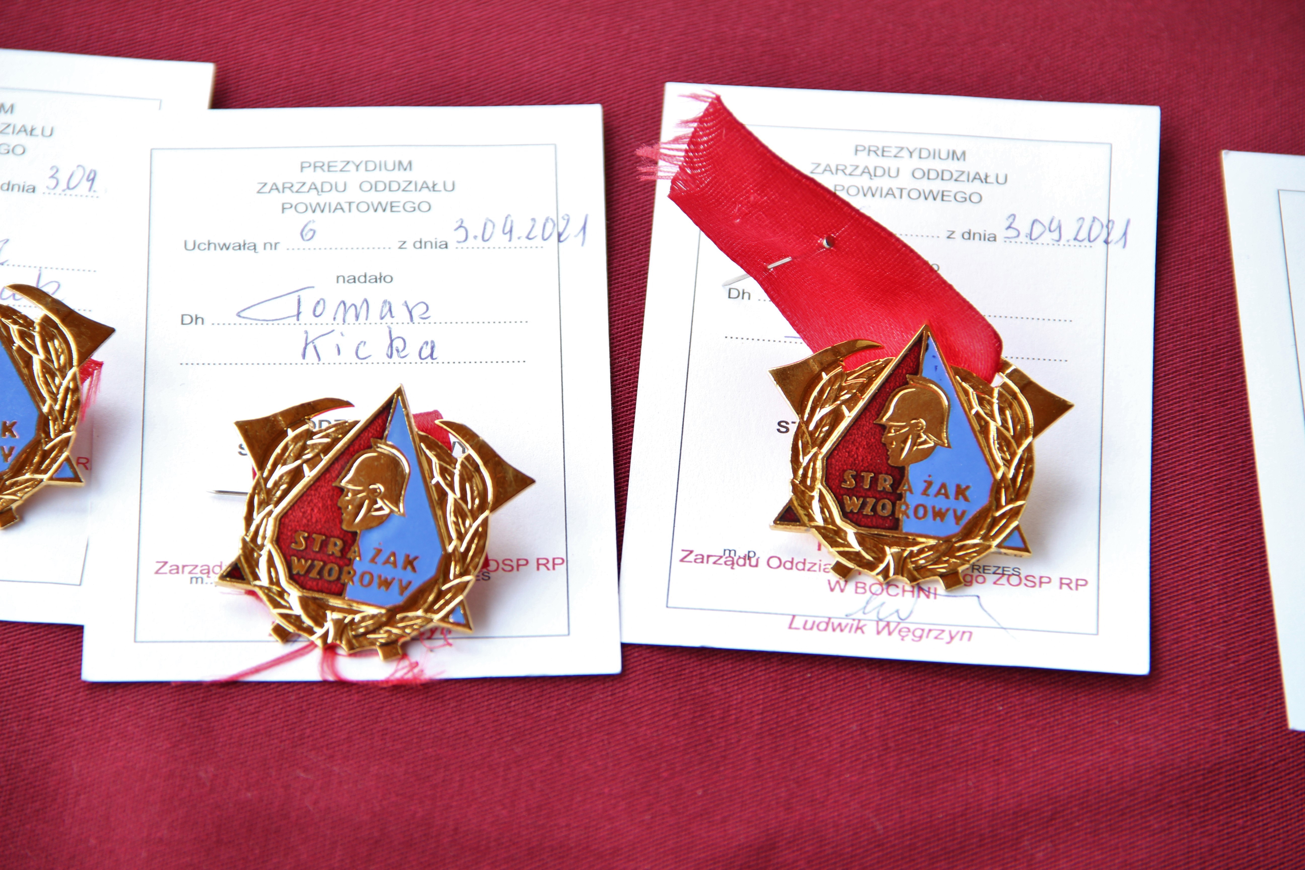 Uchwałą Prezydium Zarządu Oddziału Powiatowego w Bochni Odznaką Wzorowy Strażak zostali odznaczeni: