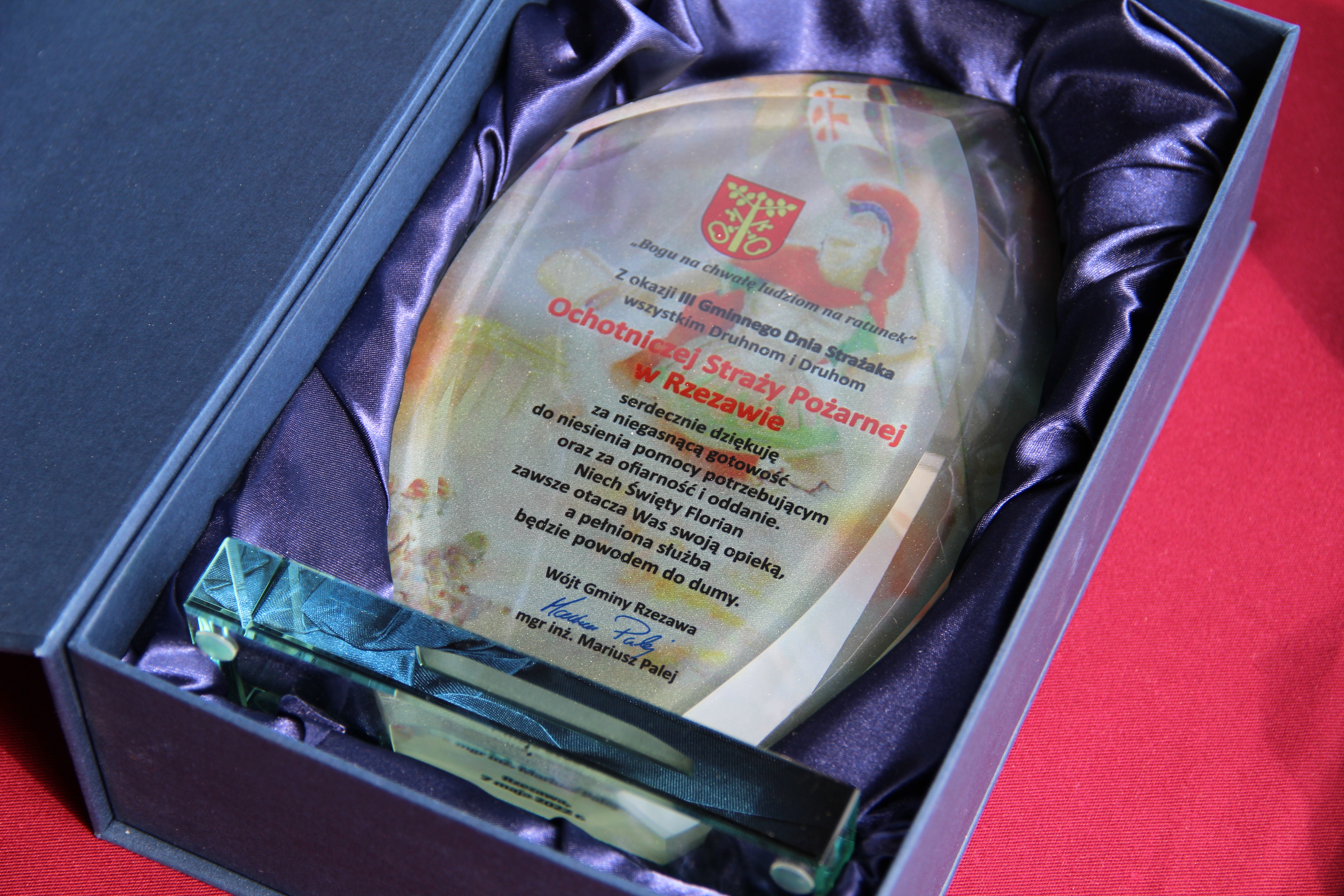 Zarząd Gminny OSP RP w Rzezawie podczas uroczystości wyróżnił ponadto Wójta Gminy Rzezawa Mariusza Paleja oraz Kapelana Gminnego OSP Księdza Prałata Stefana Broniaka za długoletnią współprace oraz wkład w rozwój jednostek OSP z terenu Gminy Rzezawa.