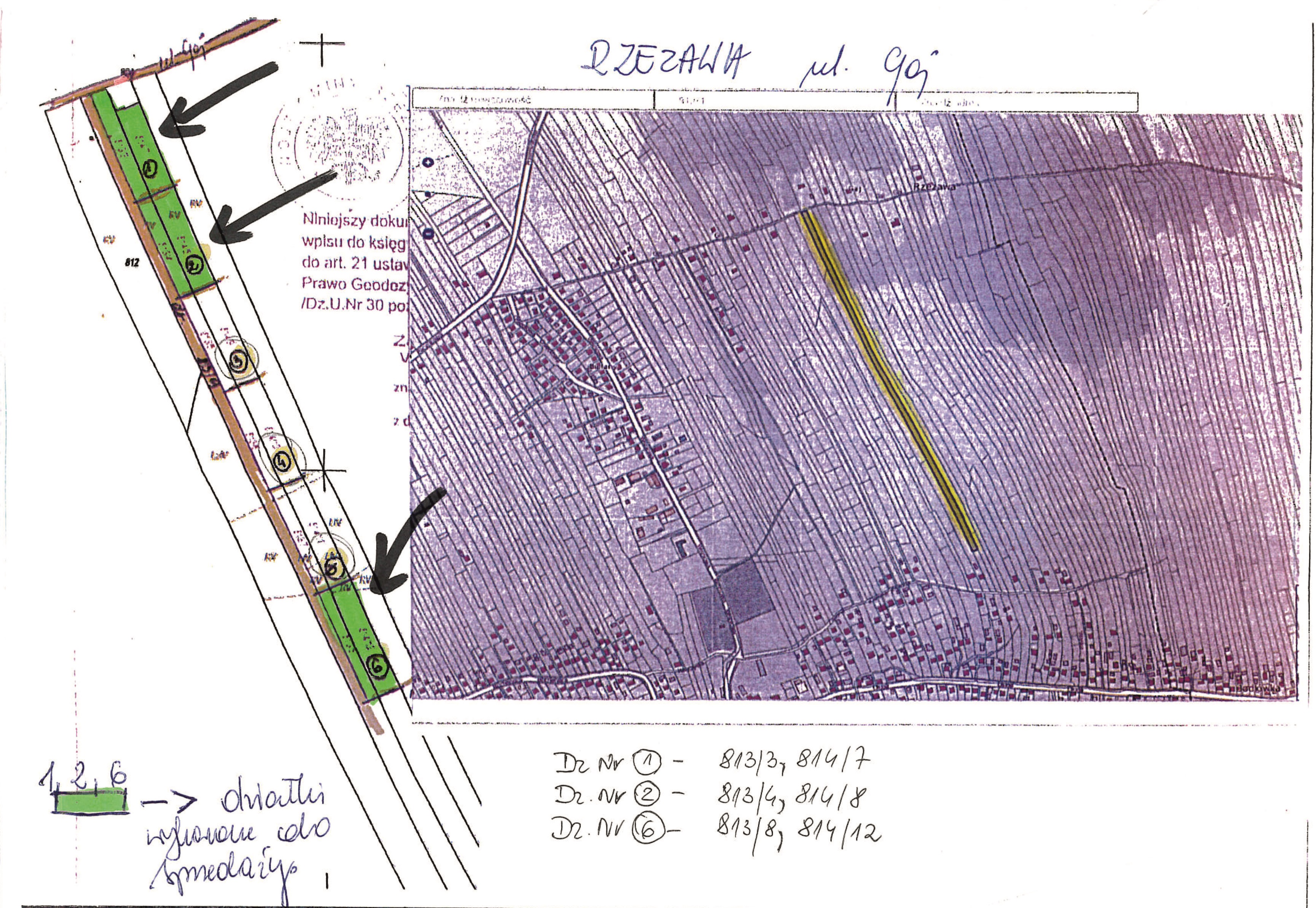 W/w działki posiadają dostęp do wydzielonej drogi dz. ew. nr 813/9. Drugi przetarg dn.06.08.2019r. na w/w działki zakończył się wynikiem negatywnym.