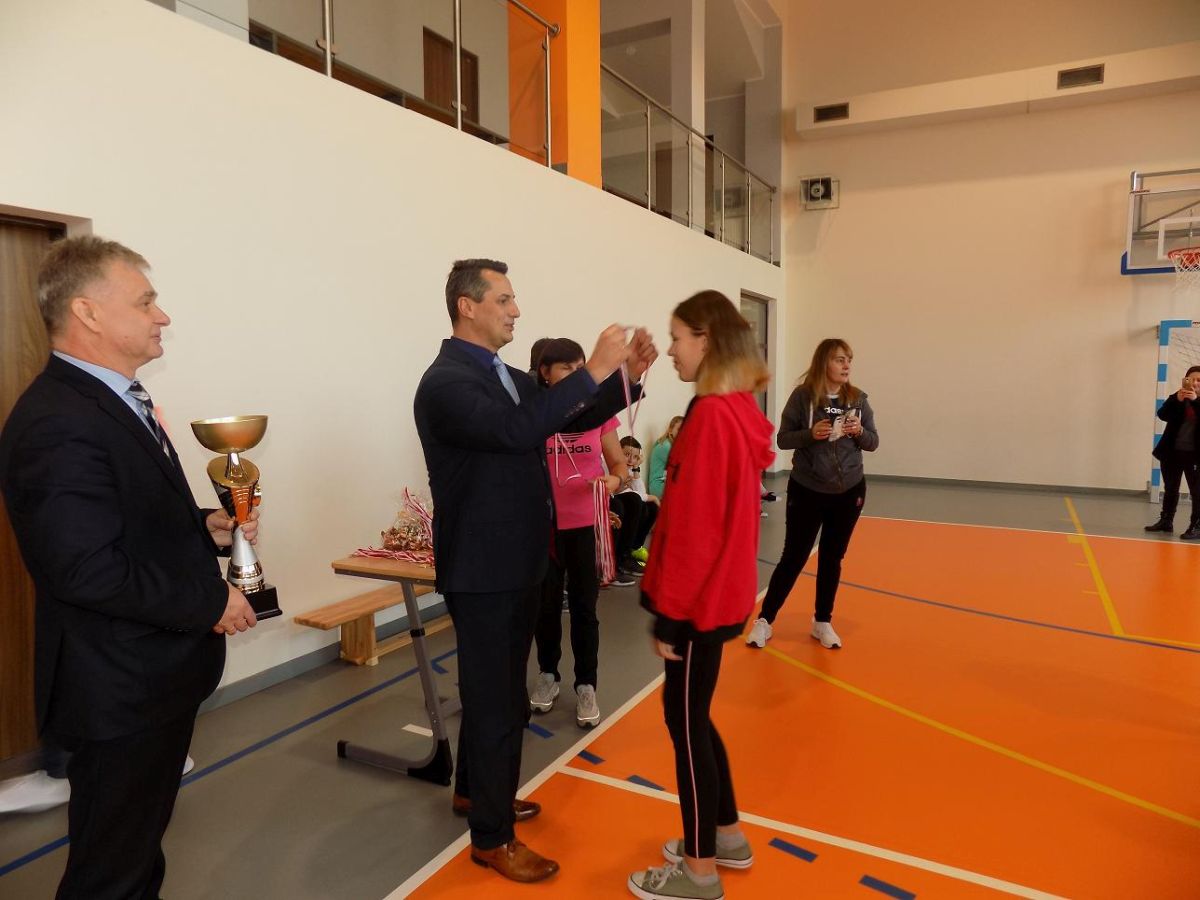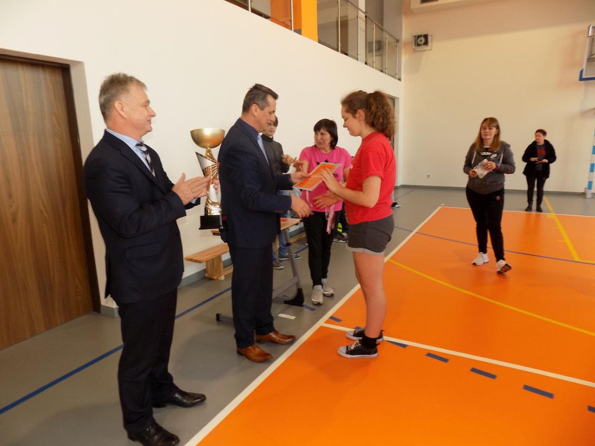 Wójt Gminy Rzezawa Pan Mariusz Palej wręczył Puchar zwycięskiej drużynie, gratulując sukcesu. Pozostałym drużynom wręczył medale i pamiątkowe dyplomy. Wszystkim pogratulował sportowego zapału, zdrowej rywalizacji. Organizatorom Turnieju i opiekunom drużyn podziękował za zaangażowanie w rozwijaniu sportowych zainteresowań uczniów, jednocześnie zapraszając na kolejny Noworoczny Turniej Piłki Siatkowej o Puchar Wójta Gminy Rzezawa.