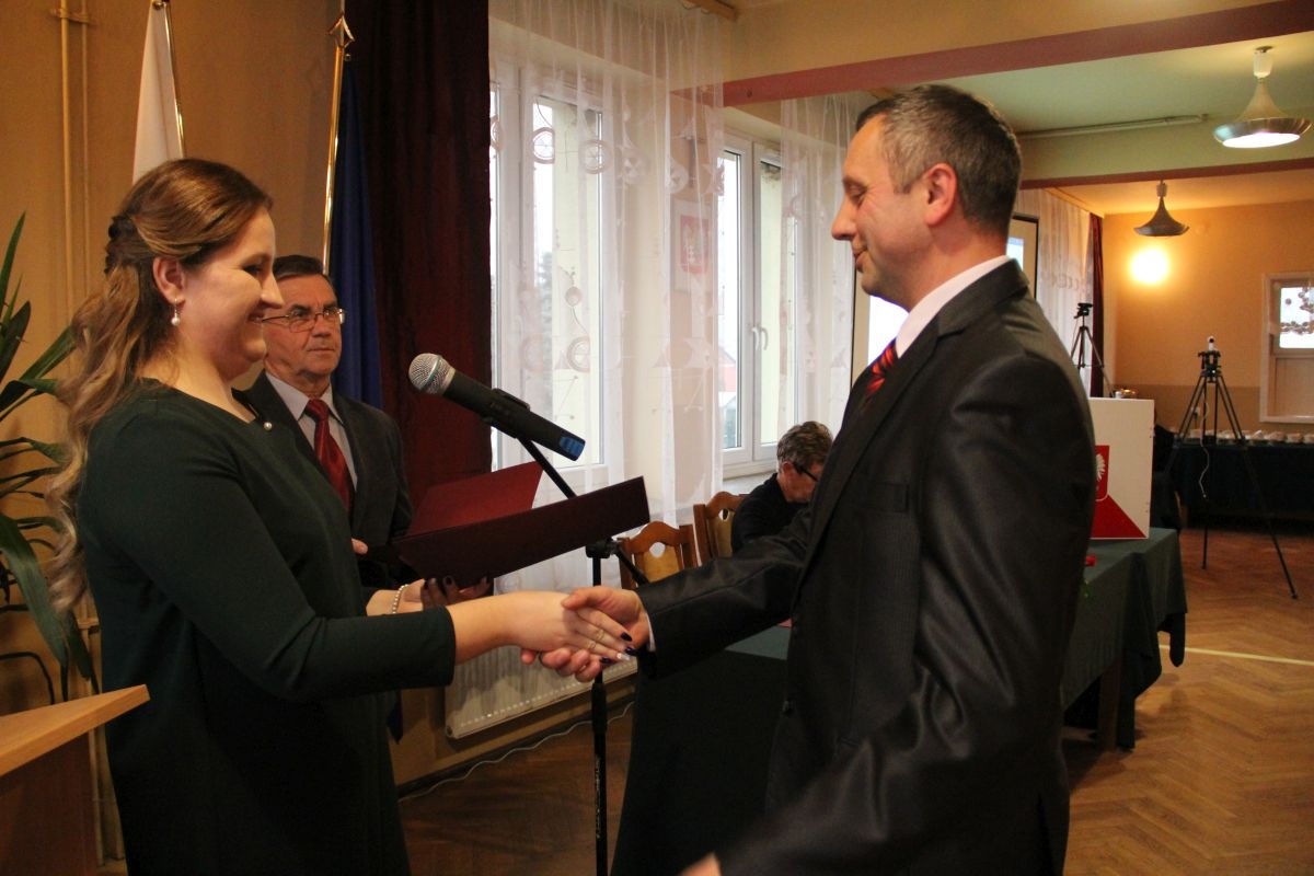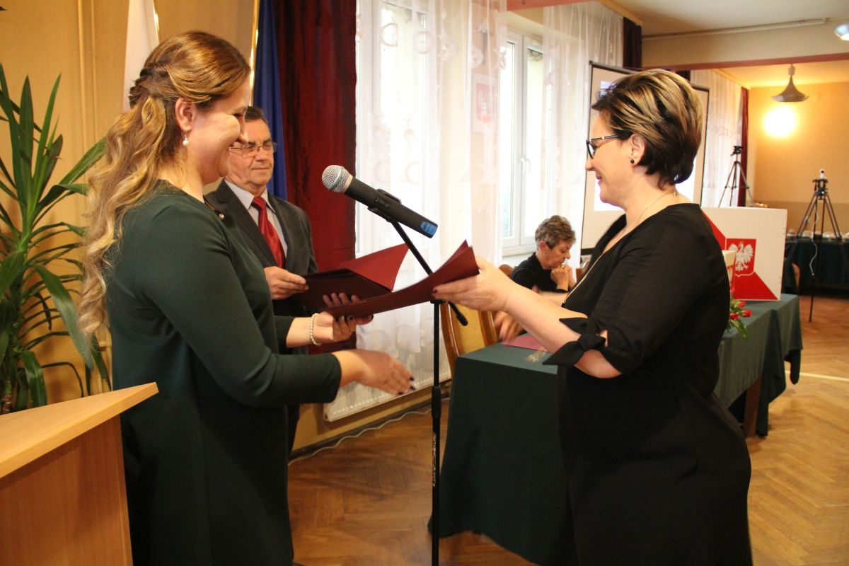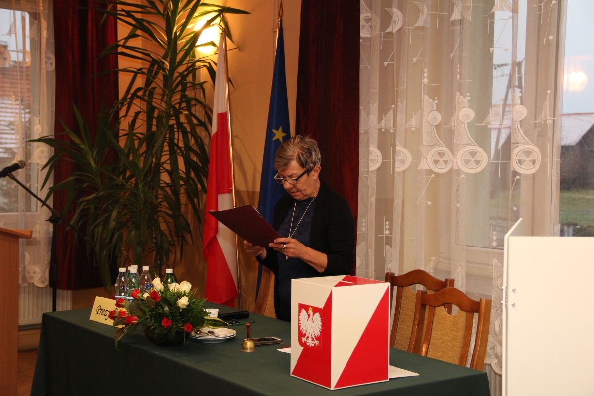 Następnie przystąpiono do wyboru Przewodniczącego Rady Gminy i została powołana komisja skrutacyjna. Zgłoszono tylko jedną kandydaturę na tę funkcję - P.Barbarę Kwiecińską, która wyraziła zgodę na kandydowanie i krótko zaprezentowała swoją osobę. W głosowaniu tajnym uzyskała ona 12 głosów i została Przewodniczącą Rady na bieżącą kadencję. Kolejnym punktem obrad był wybór Wiceprzewodniczących. Zgłoszone zostały trzy kandydatury: Marcina Bielaka, Ireneusza Czesaka oraz Jana Panny. Ostatecznie po przeprowadzeniu tajnego głosowania Wiceprzewodniczącymi zostali P.Marcin Bielak i P. Jan Panna.