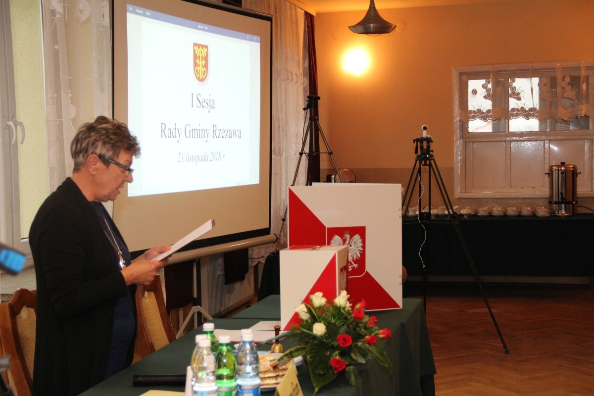 21 listopada 2018 r. w sali OSP w Rzezawie odbyła się I Sesja Rady Gminy Rzezawa w kadencji 2018 - 2023. Obrady Sesji, które otworzyła Radna najstarsza wiekiem - P.Ewa Kociołek rozpoczęły się od wręczenia zaświadczeń o wyborze nowo wybranym Radnym przez Przewodniczącą Gminnej Komisji Wyborczej - P.Kingę Janik i członka tejże komisji - P.Stanisława Kruczyńskiego. Następnie Radni złożyli uroczyste ślubowanie.