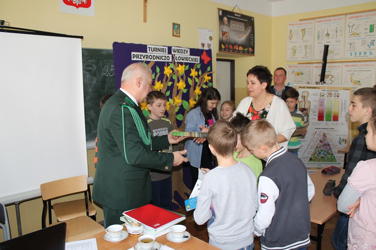 Podczas turnieju nie zabrakło również chwili na przedstawienie podstawowych zadań które należą do obowiązków członków kół łowieckich jak i wolnych opowieści. Dzieci chętnie opowiadały o swoich przygodach z napotkaną czy to na spacerze po lesie, czy na przydomowej łące zwierzynie w postaci saren, dzików czy łosi której to nie brakuje na naszym terenie.