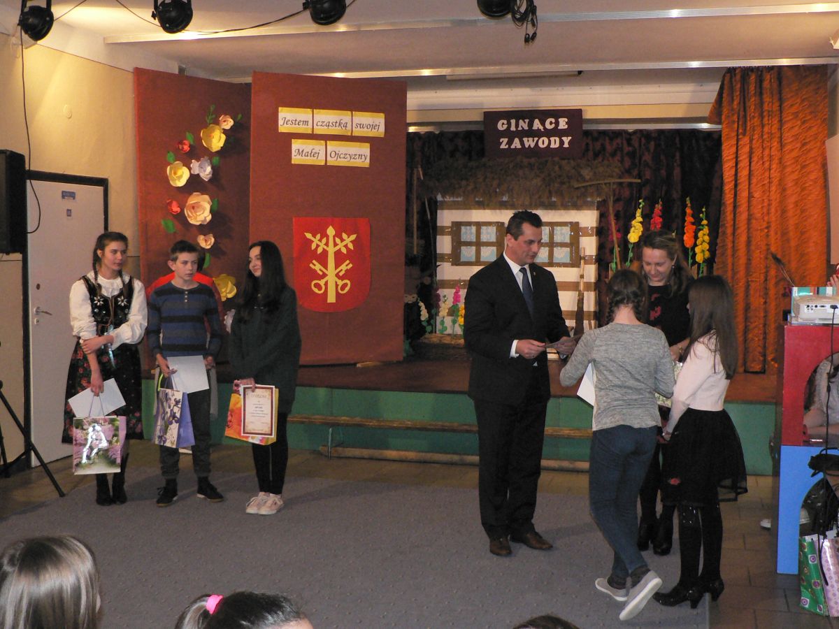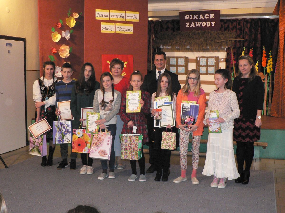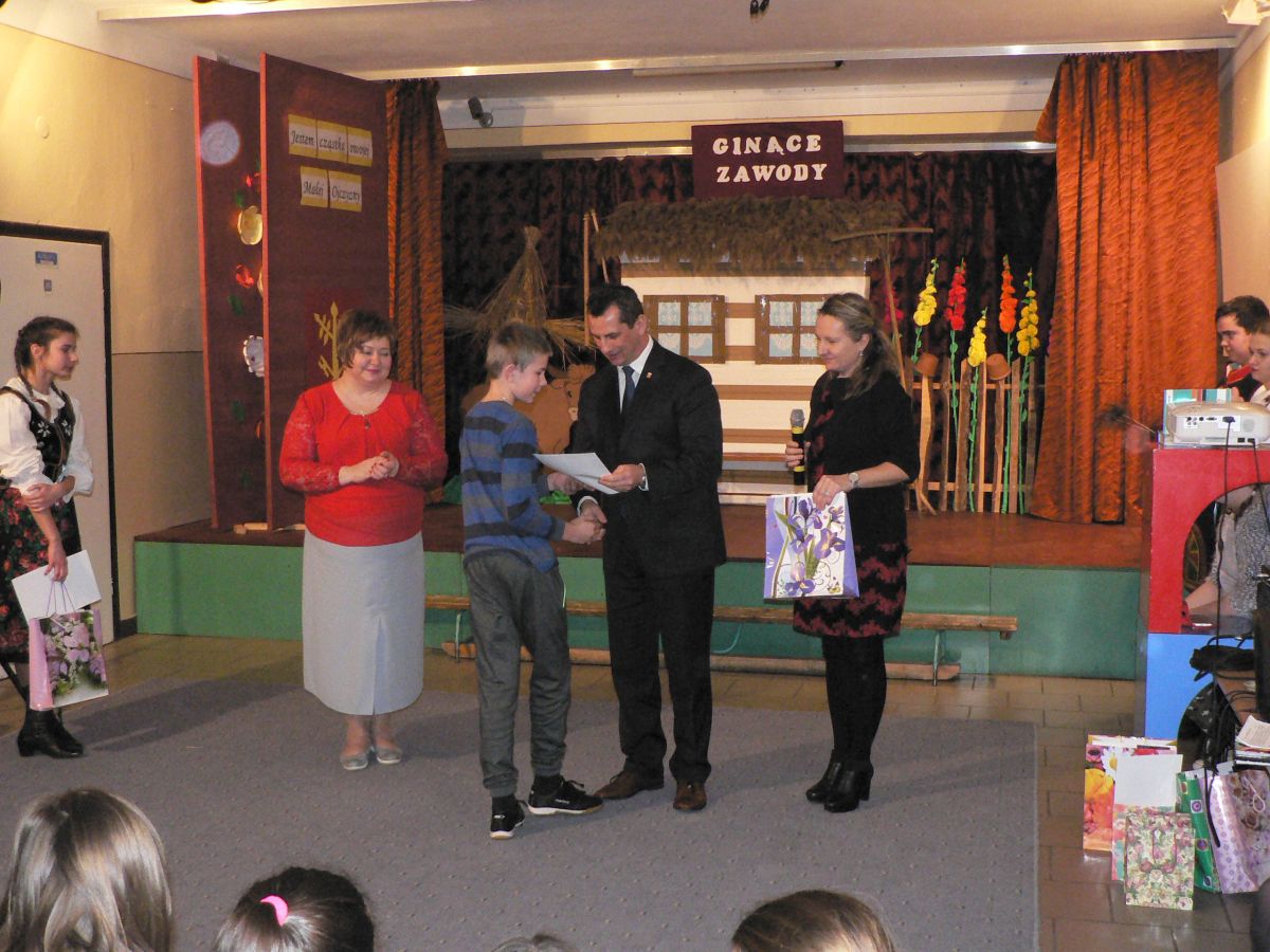 W czasie podsumowania Wójt Gminy Rzezawa p. Mariusz Palej wręczył nagrody i dyplomy uczniom za udział w konkursach plastycznych ,, Zabytki Gminy Rzezawa" oraz ,,Ginące zawody i umiejętności" zrealizowanych w czasie innowacji.