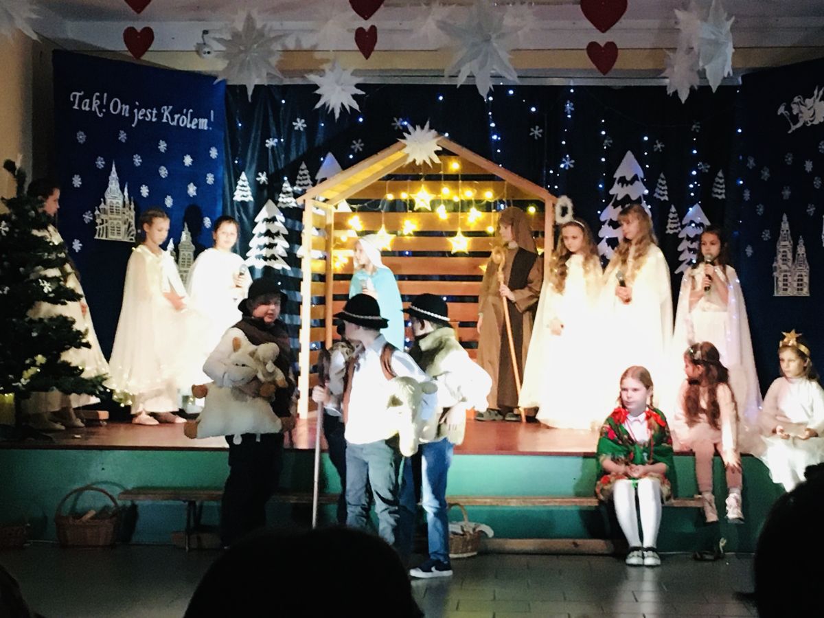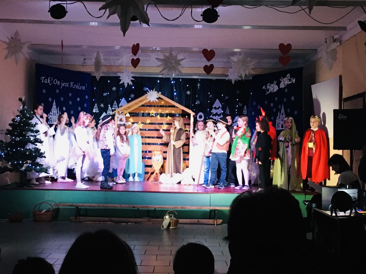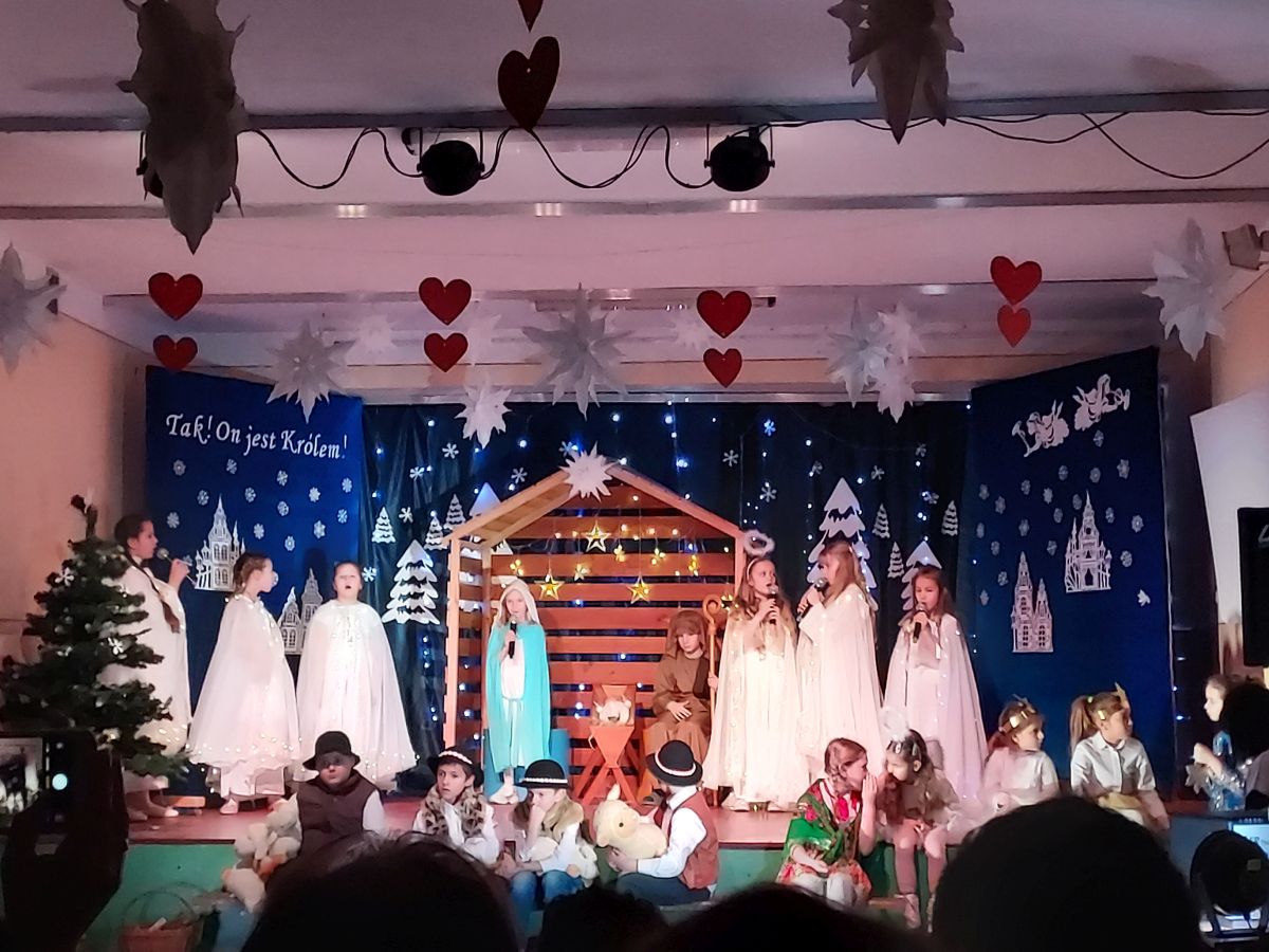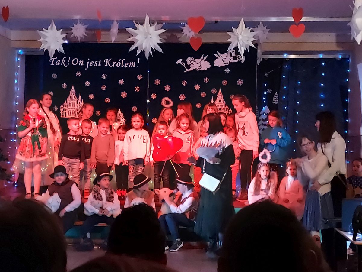 „Tak, To On! On- jest Królem świata”- wielokrotnie rozbrzmiewał refren piosenki. Wymowna scenografia, zagospodarowanie przestrzeni teatralnej, barwne kostiumy, gra świateł oraz ogromne zaangażowanie młodych aktorów, wychowawcy i rodziców przyniosło efekty. Przedstawienie wywarło olbrzymie wrażenie i poruszyło serca licznie zgromadzonej publiczności. Aktorzy zostali nagrodzeni gromkimi brawami za pięknie przygotowane widowisko muzyczno-taneczne. Inscenizacja przygotowana pod kierunkiem wychowawczyni kl. II p. Agaty Lekkiej i nauczyciela muzyki p. Pawła Lekkiego uprzyjemniła każdemu poświąteczne chwile.