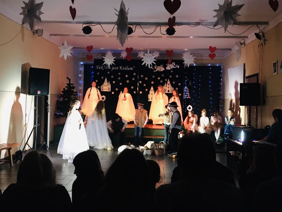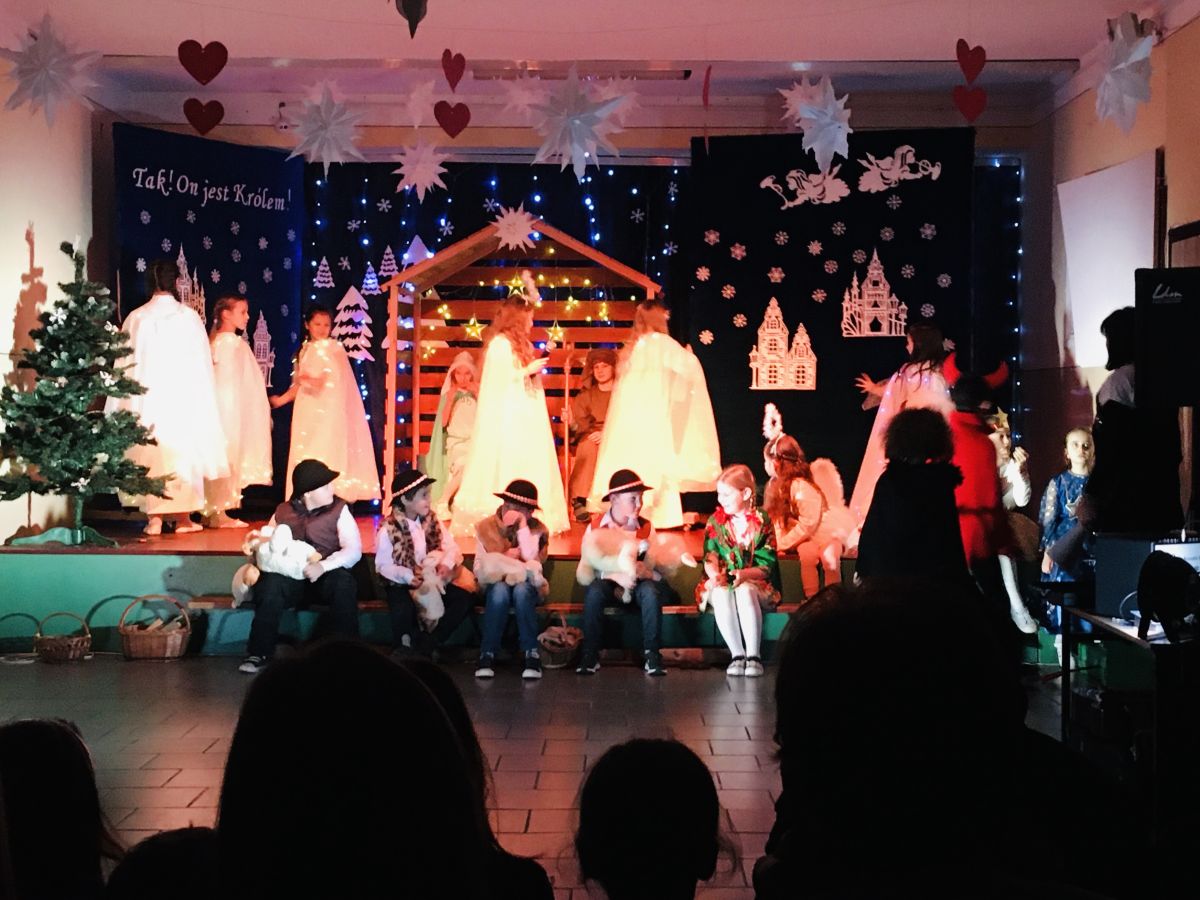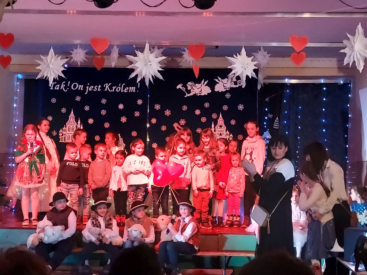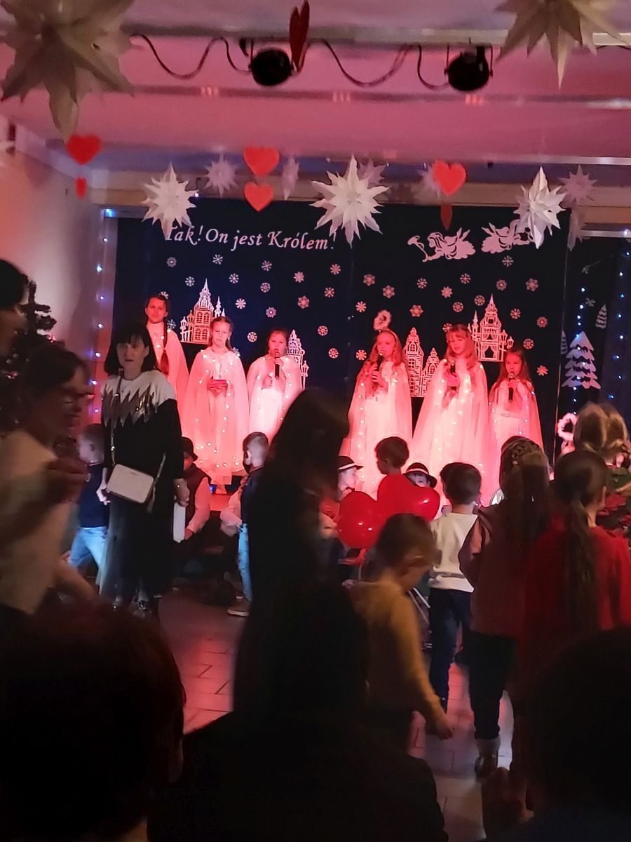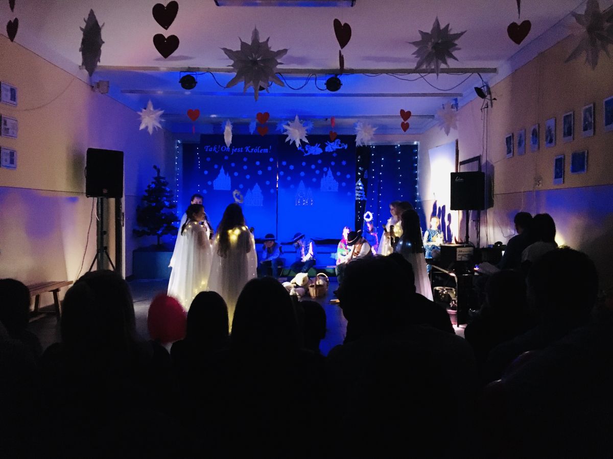 „Tak, To On! On- jest Królem świata”- wielokrotnie rozbrzmiewał refren piosenki. Wymowna scenografia, zagospodarowanie przestrzeni teatralnej, barwne kostiumy, gra świateł oraz ogromne zaangażowanie młodych aktorów, wychowawcy i rodziców przyniosło efekty. Przedstawienie wywarło olbrzymie wrażenie i poruszyło serca licznie zgromadzonej publiczności. Aktorzy zostali nagrodzeni gromkimi brawami za pięknie przygotowane widowisko muzyczno-taneczne. Inscenizacja przygotowana pod kierunkiem wychowawczyni kl. II p. Agaty Lekkiej i nauczyciela muzyki p. Pawła Lekkiego uprzyjemniła każdemu poświąteczne chwile.