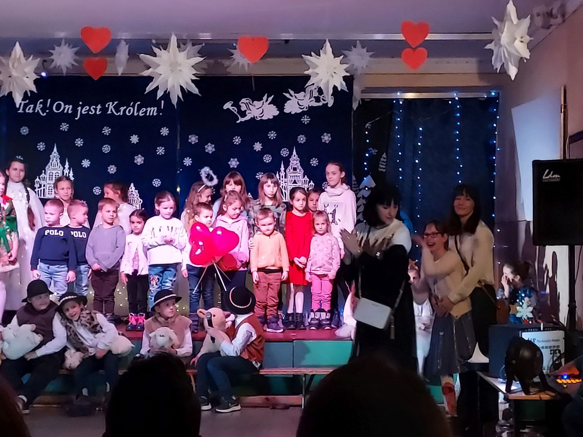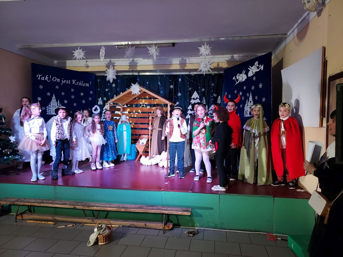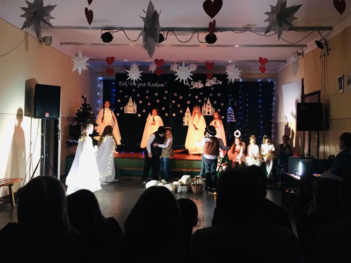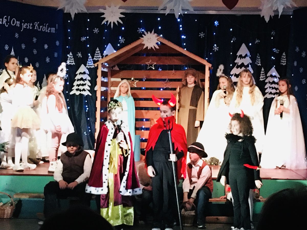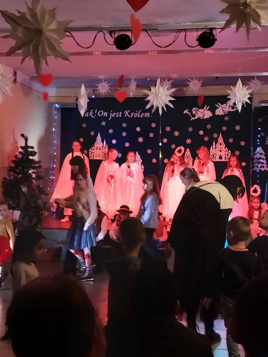 „Tak, To On! On- jest Królem świata”- wielokrotnie rozbrzmiewał refren piosenki. Wymowna scenografia, zagospodarowanie przestrzeni teatralnej, barwne kostiumy, gra świateł oraz ogromne zaangażowanie młodych aktorów, wychowawcy i rodziców przyniosło efekty. Przedstawienie wywarło olbrzymie wrażenie i poruszyło serca licznie zgromadzonej publiczności. Aktorzy zostali nagrodzeni gromkimi brawami za pięknie przygotowane widowisko muzyczno-taneczne. Inscenizacja przygotowana pod kierunkiem wychowawczyni kl. II p. Agaty Lekkiej i nauczyciela muzyki p. Pawła Lekkiego uprzyjemniła każdemu poświąteczne chwile.