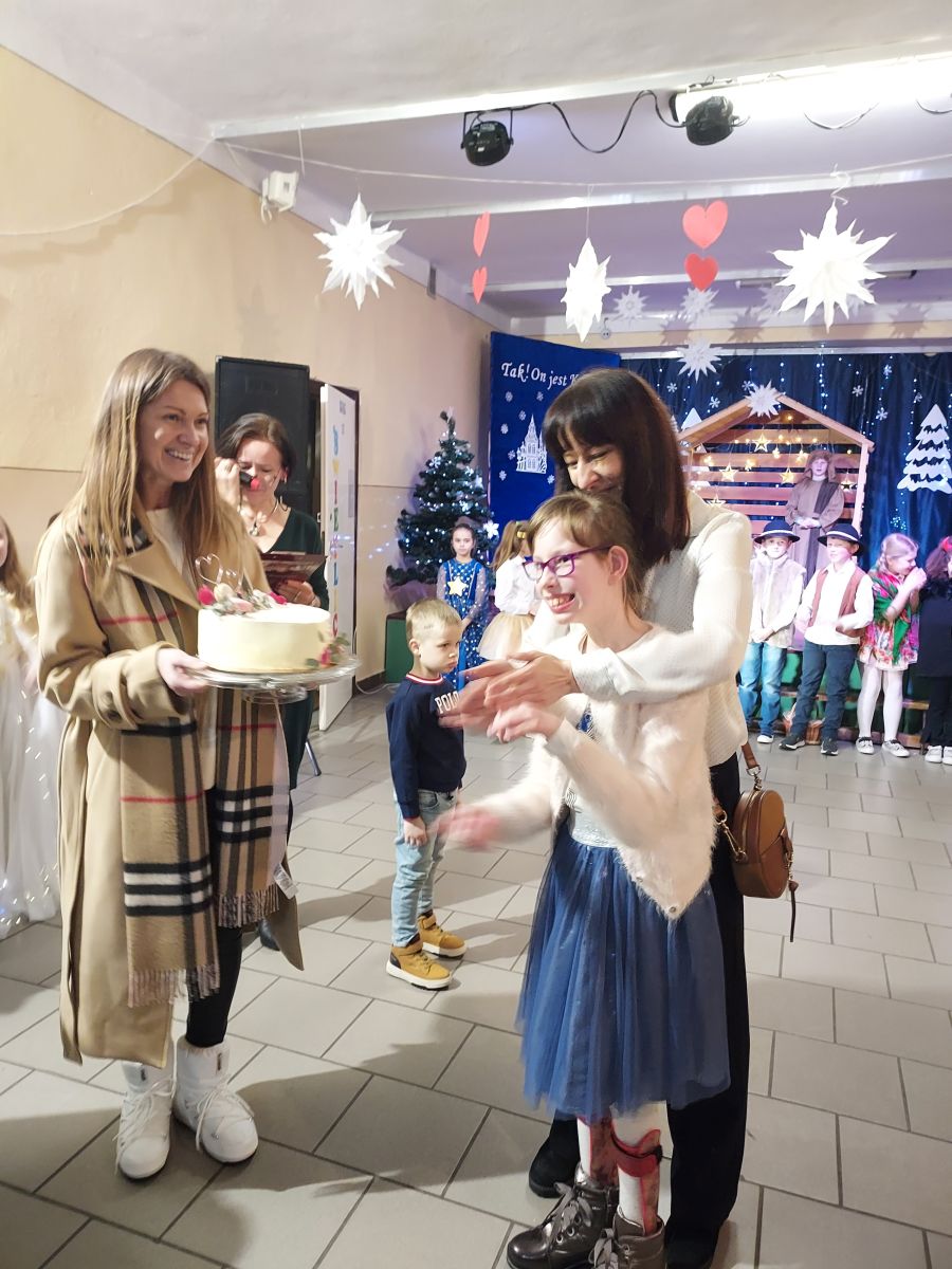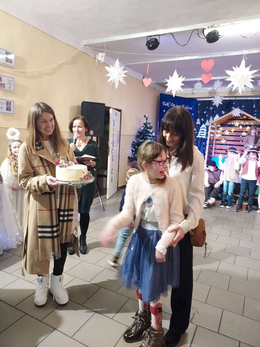 Na zakończenie spotkania odbyła się prezentacja obrazu wykonanego przez Julkę z kl.8 oraz tortów upieczonych przez rodziców. To były specjalne cegiełki, a zaproszeni goście i Darczyńcy okazali niezwykłą hojność! Dzięki ofiarności serc, Ola będzie mogła uczestniczyć w turnusie rehabilitacyjnym.