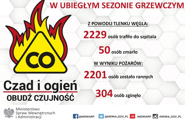 W związku z inauguracją ogólnopolskiej kampanii społecznej pod nazwą „Czad i ogień – obudź czujność”, której patronuje Minister Spraw Wewnętrznych i administracji – p. Mariusz Błaszczak, Komenda Powiatowa Państwowej Straży Pożarnej w Bochni oraz Wójt Gminy Rzezawa – Mariusz Palej zwraca się z prośba do mieszkańców gminy o zapoznanie się z zamieszczonym materiałem i zastosowanie się do zaleceń.