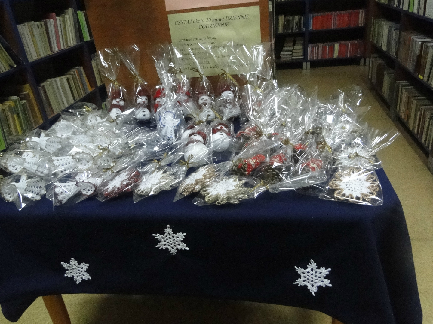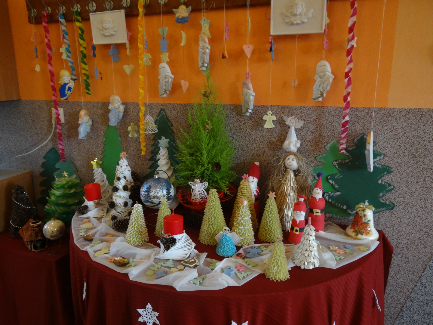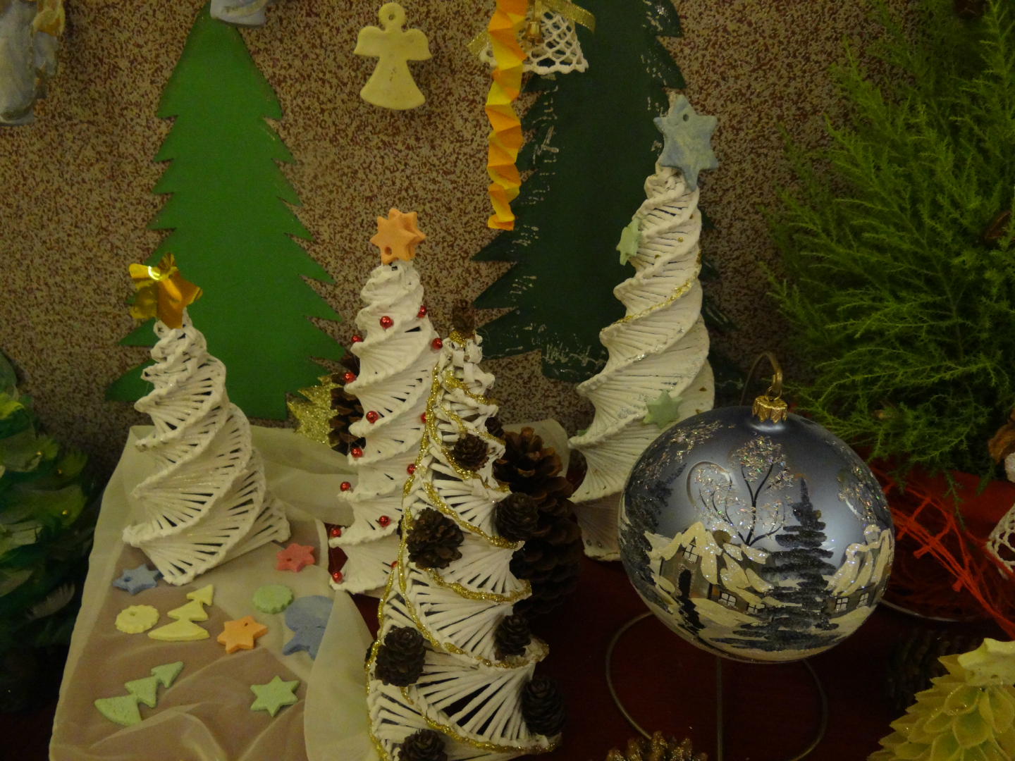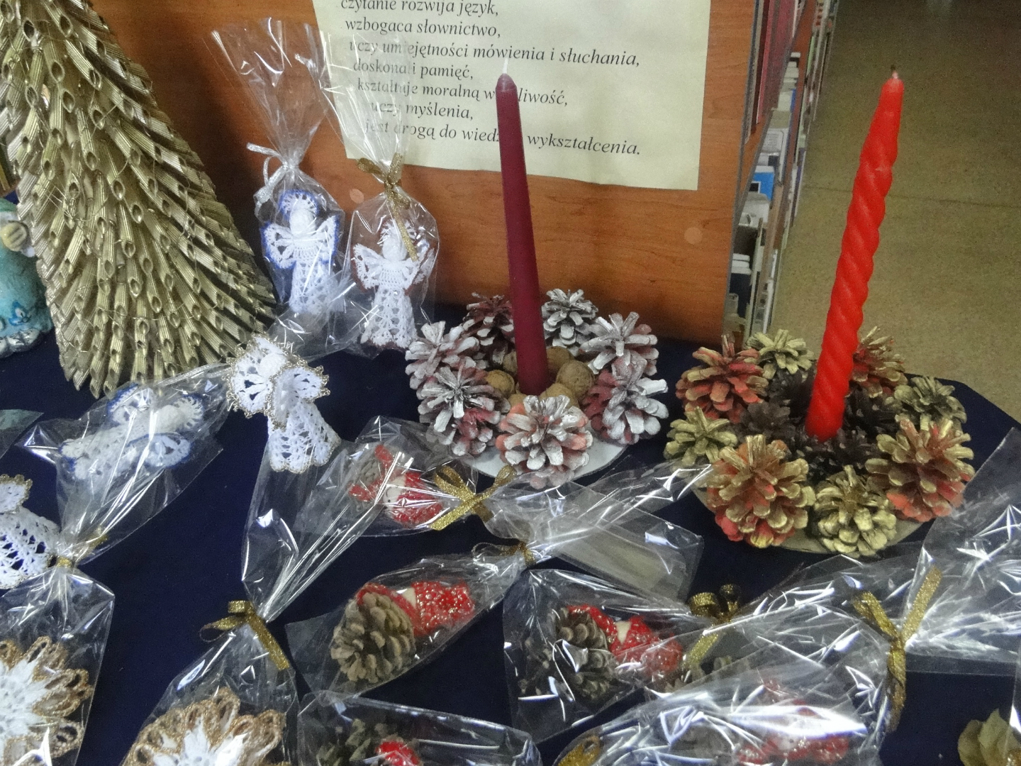 Podczas tegorocznej edycji nie zabrakło bogatego rękodzieła, które stanowiły między innymi malowane bombki, papierowe gwizdki, makaronowe drzewka, szydełkowe bałwany, aniołki i dzwonki, kolorowe stroiki oraz inne dekoracje wykonane oryginalnymi metodami.