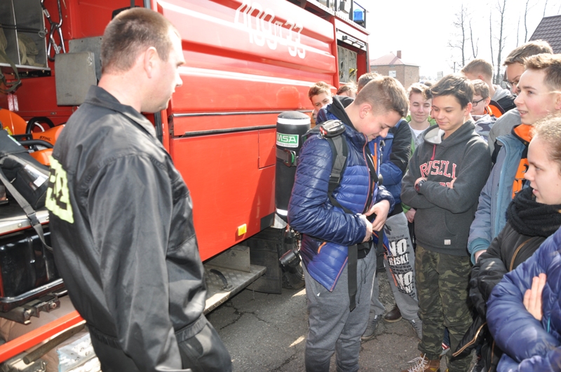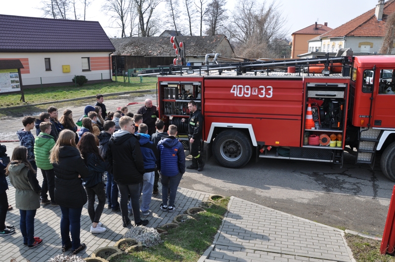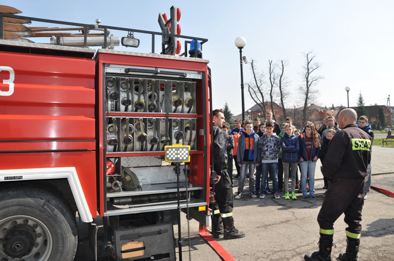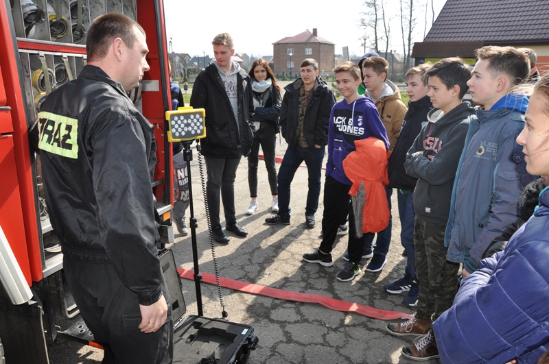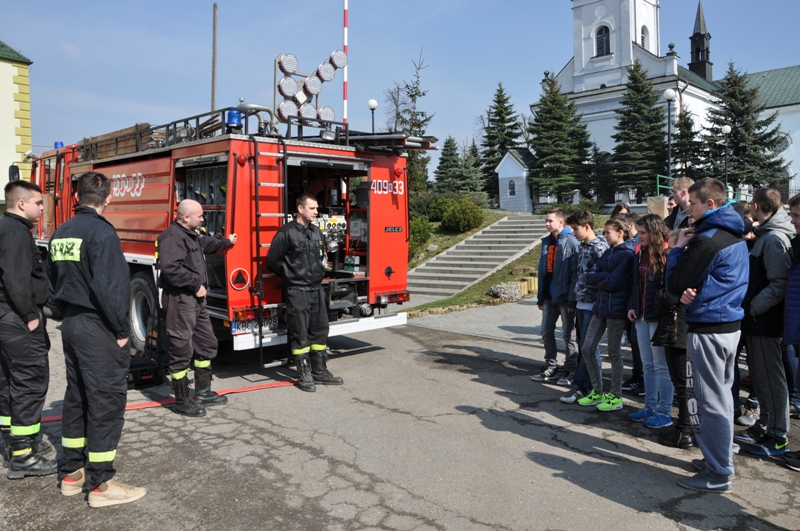 W marcu uczniowie klas drugich PG w Rzezawie zostali zaproszeni przez miejscową jednostkę OSP na spotkanie, na którym strażacy ochotnicy (Robert Surma, Leszek Trąba, Maciej Wojewoda i Bartosz Wojewoda) zaprezentowali sprzęt strażacki, ciekawie opowiadali o swojej pracy i zachęcali młodzież do wstępowania w ich szeregi. Przekonywali, jak ważna, ciekawa i potrzebna jest służba strażaków. Pouczali, jak zachowywać się w sytuacjach zagrożenia, jak reagować, by nie stwarzać takich sytuacji, a w akcjach ratunkowych wspierać działania strażaków, a nie przeszkadzać im.