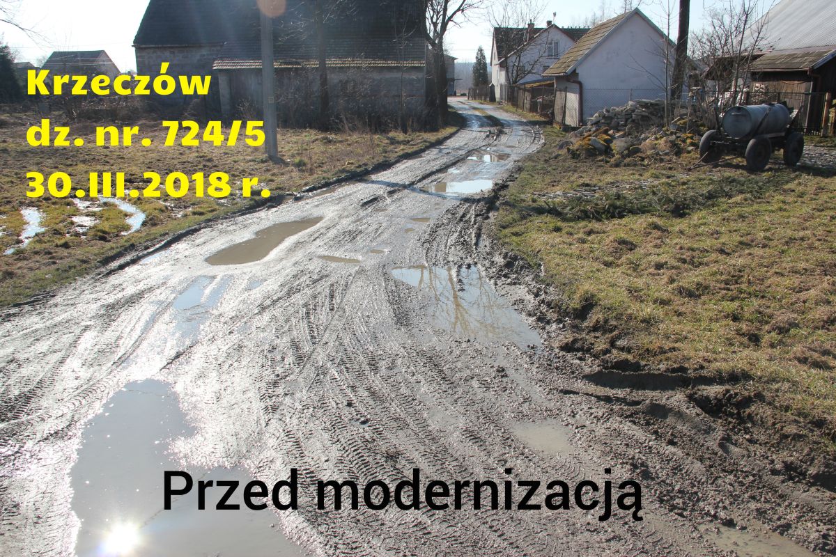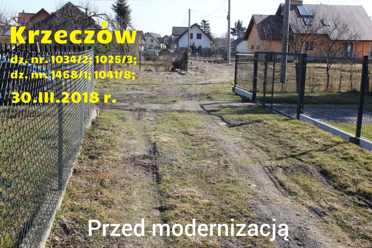 W Krzeczowie wyremontowana zostanie droga o długości 130 mb. i szerokości 3 – 3,5 m stanowiąca działki nr 1034/2, 1025/3, 1468/1 oraz 1041/8. Zadanie to będzie kosztowało ponad 20 tys. zł. Wykonawcą inwestycji jest przedsiębiorstwo „Road” z Dobrociesza.