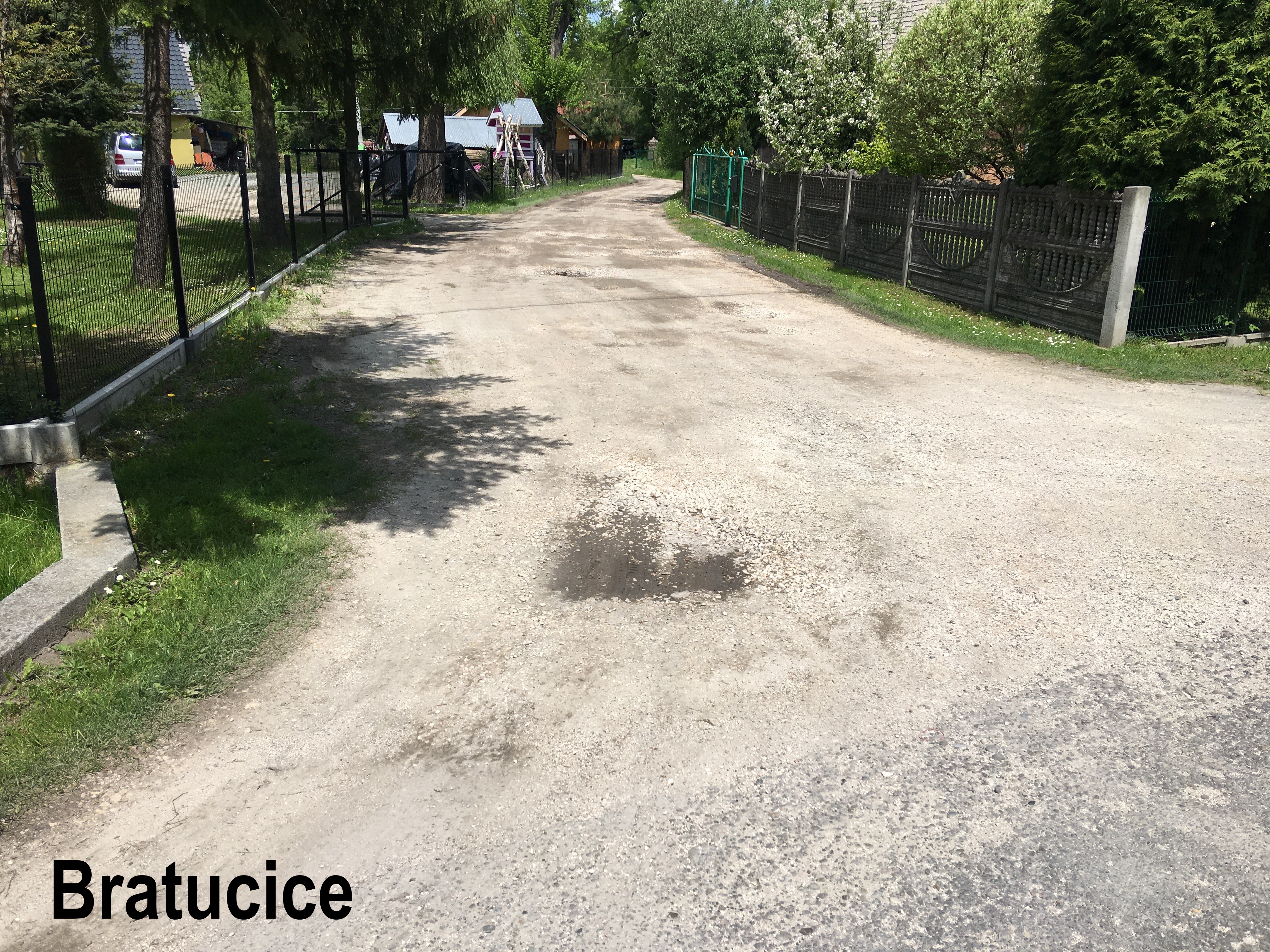 W Bratucicach przebudowana została natomiast droga stanowiąca działki 718/1, 718/2 i 718/3 o długości 260 m, na której także został położony asfalt. Na zadanie to zostało wydatkowane ponad 98 tys. zł.
