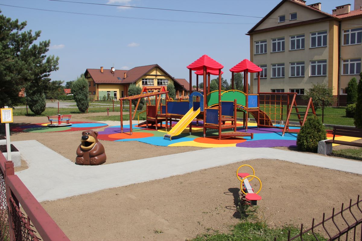 Na placu zabaw przy Publicznej Szkole Podstawowej w Rzezawie zakończono prace budowlane. W ramach umowy wykonano zagospodarowanie terenu poprzez dostawę i montaż 3 ławek betonowych z oparciem, 2 koszy przyjaznych dzieciom, dostawę i montaż „zestawu plac zabaw”, wykonanie nawierzchni bezpiecznej pod urządzeniami oraz wykonanie chodników z kostki brukowej. Wartość inwestycji wyniosła około 70 tys. zł.