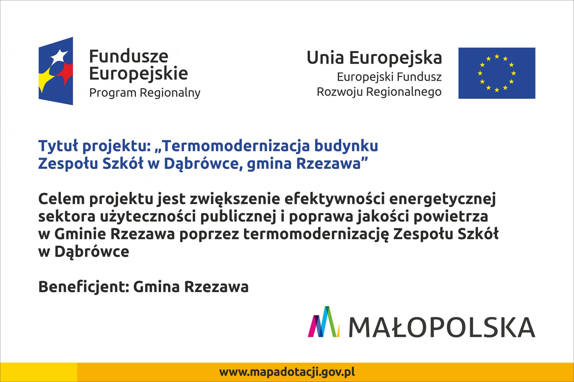 Komfortowo i oszczędnie – „Termomodernizacja budynku Zespołu Szkół w Dąbrówce”.
