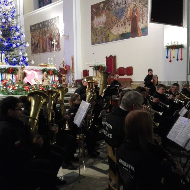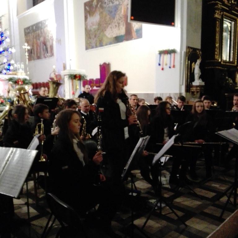 W pierwszej części zgromadzona publiczność mogła usłyszeć tradycyjne polskie kolędy w pięknej aranżacji w towarzystwie wokalu solistów. Zabrzmiały między innymi: „Gdy się Chrystus rodzi”, „Oj maluśki”, „Jest taki dzień”.