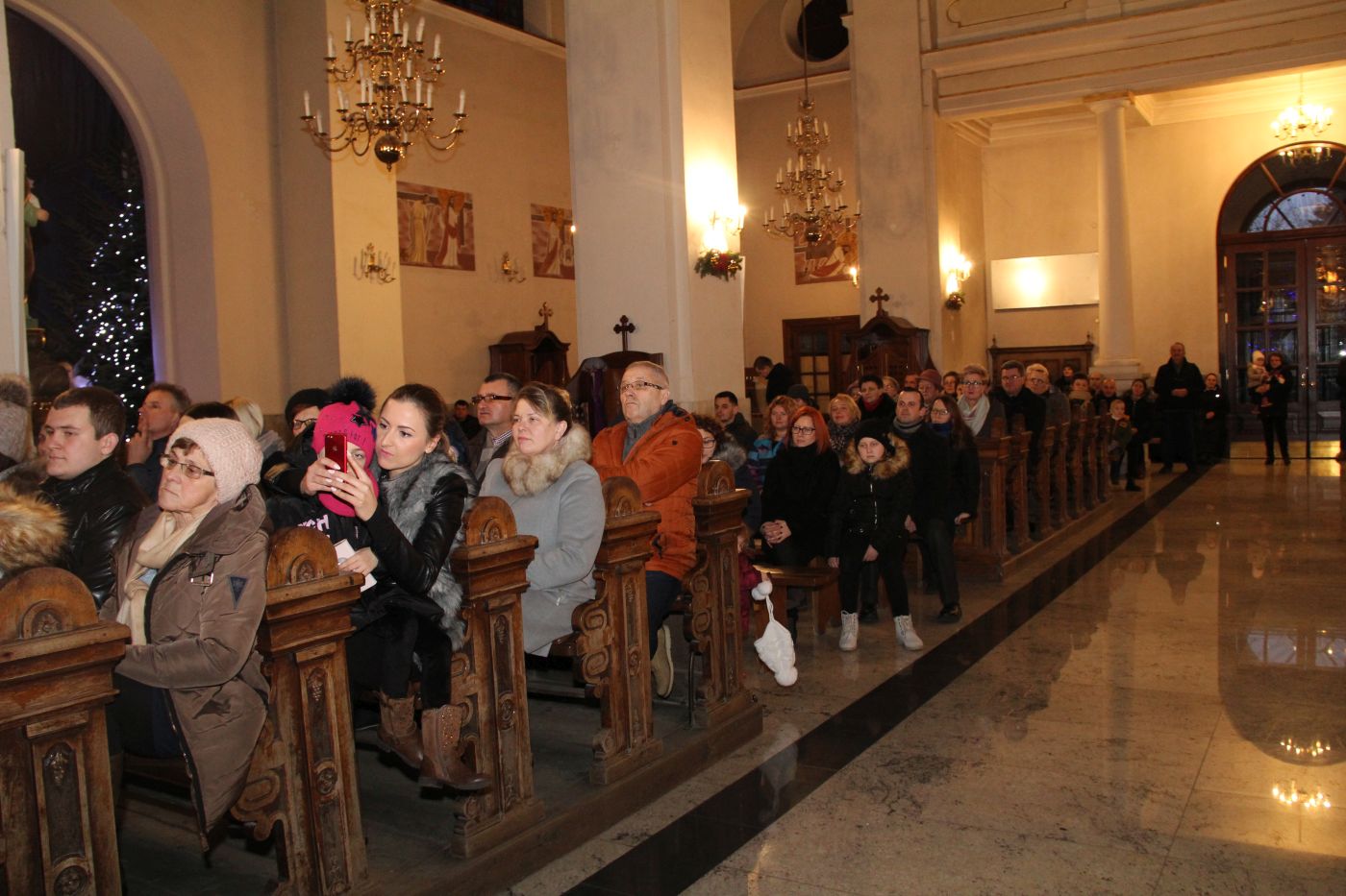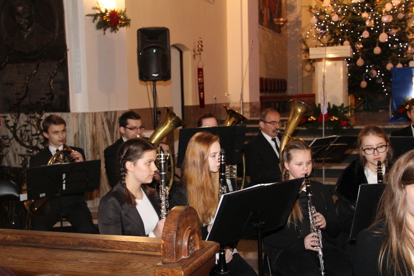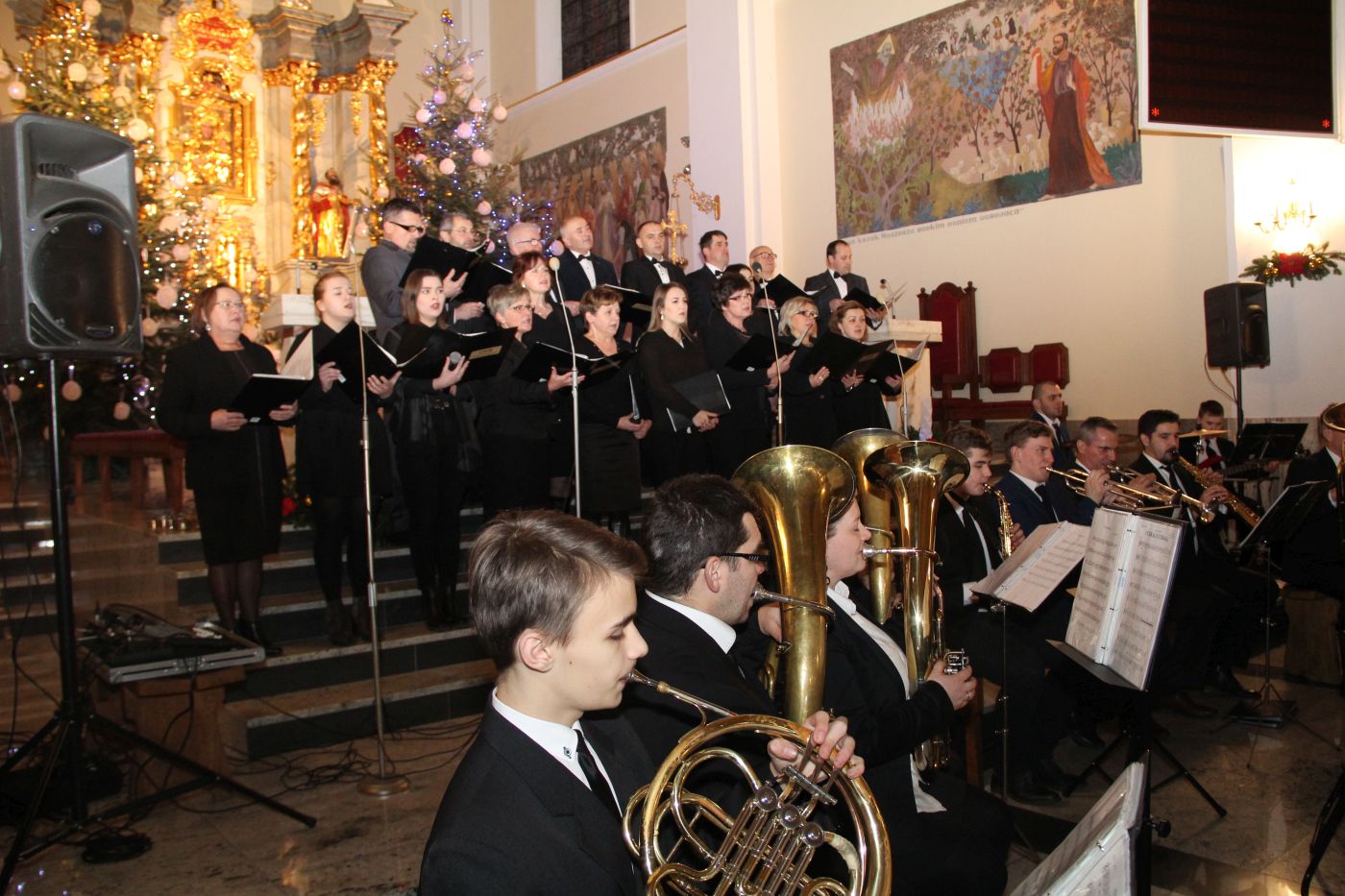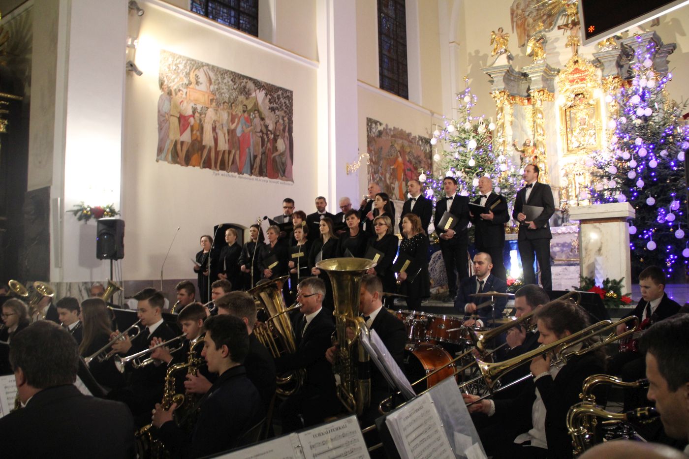 Muzycy pod batutą kapelmistrza Mariusza Kurnika przygotowali wspaniały i różnorodny repertuar. Koncert rozpoczął się kolędą "Cicha noc" wykonaną wspólnie przez orkiestrę i chór. W pierwszej części tego zjawiskowego widowiska zgromadzeni mogli posłuchać utworów związanych z tematyką bożonarodzeniową. Zabrzmiały zarówno tradycyjne kolędy jak i popularne piosenki świąteczne,