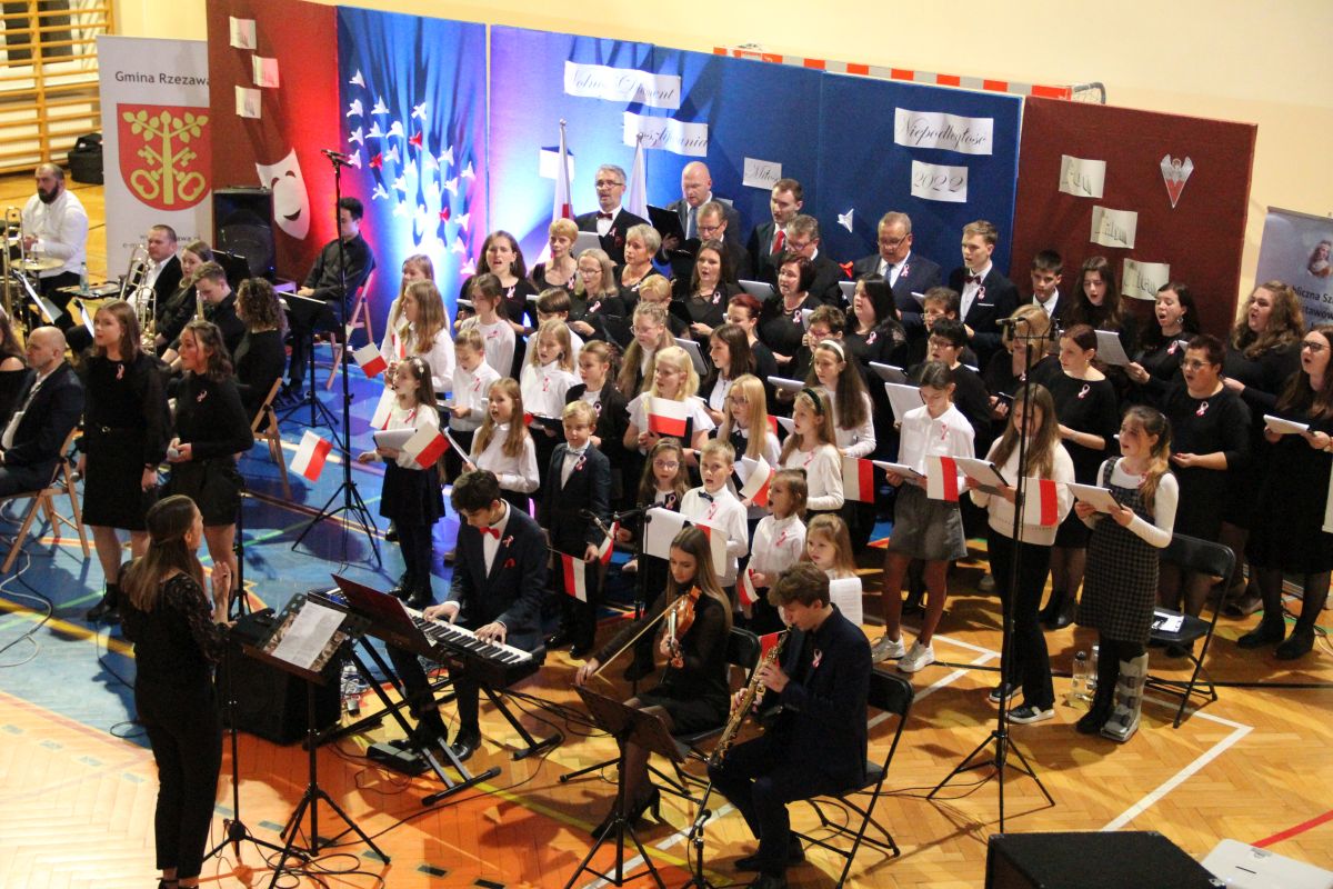 Koncert odbył się 11 listopada w sali gimnastycznej Publicznej Szkoły Podstawowej im. Świętej Jadwigi Królowej i przyciągnął wielu mieszkańców gminny Rzezawa. Nic w tym dziwnego, ponieważ była to prawdziwa uczta dla ucha. Orkiestra Dęta Okulice pokazała, że nie przez przypadek jest jedną z najlepszych orkiestr dętych w Polsce. Aranżacje patriotycznych i ludowych utworów w ich wykonaniu w połączeniu z wokalem uzdolnionych muzyków robią naprawdę wielkie wrażenie. Równie świetnie zaprezentował się Chór Parafialny z Krzeczowa, który pokazał, że ma ogromny potencjał, a w swoim składzie wielu świetnych muzyków.