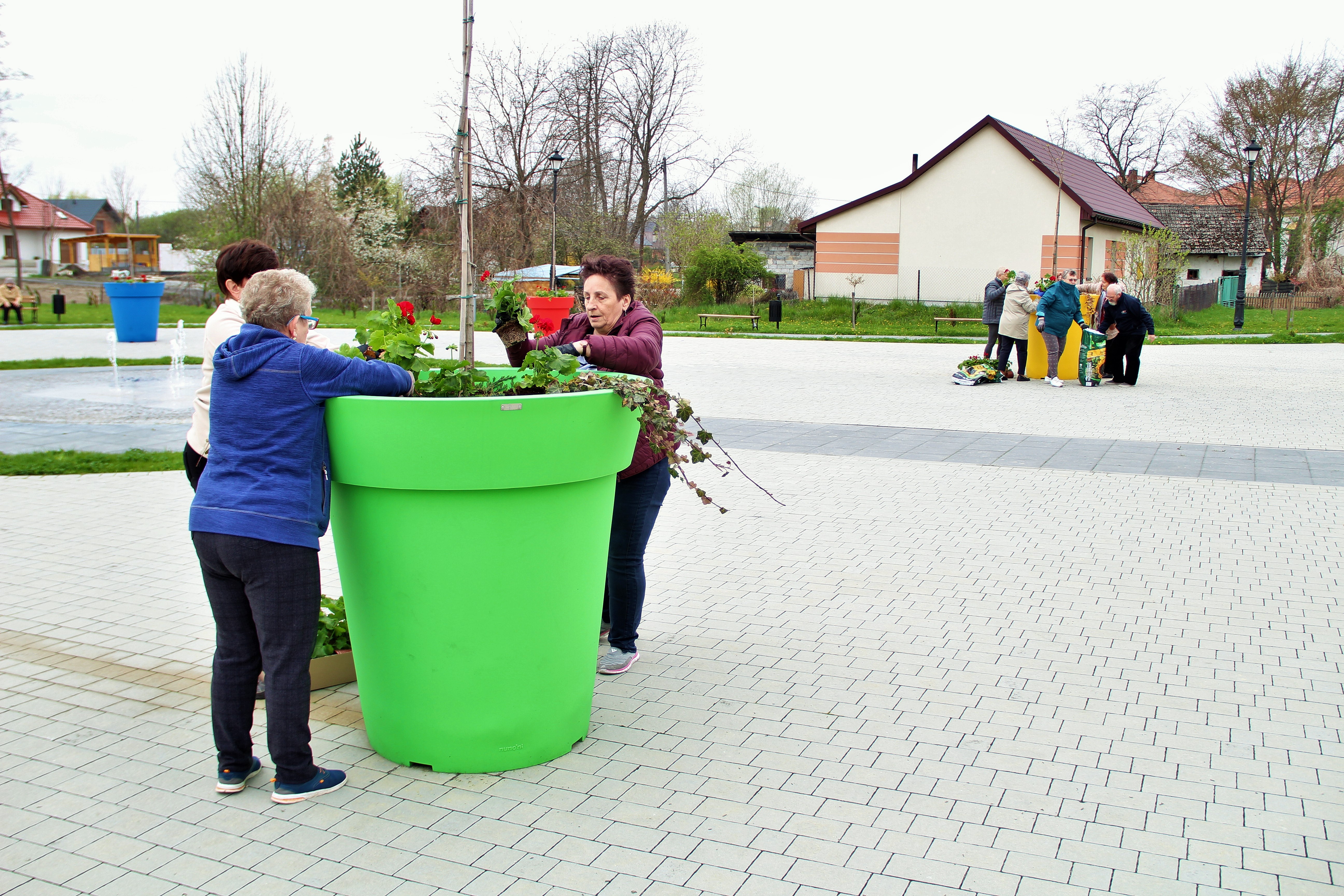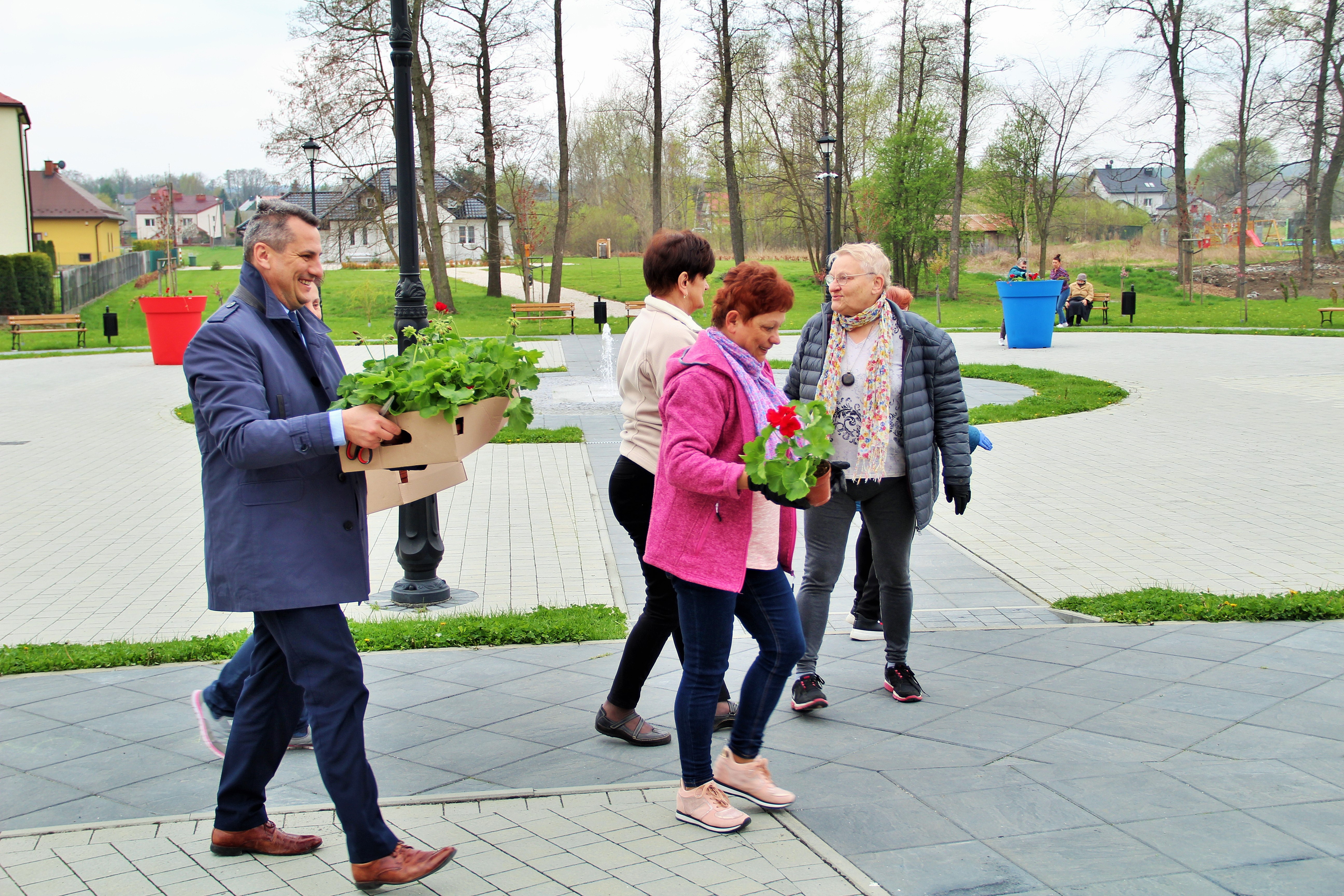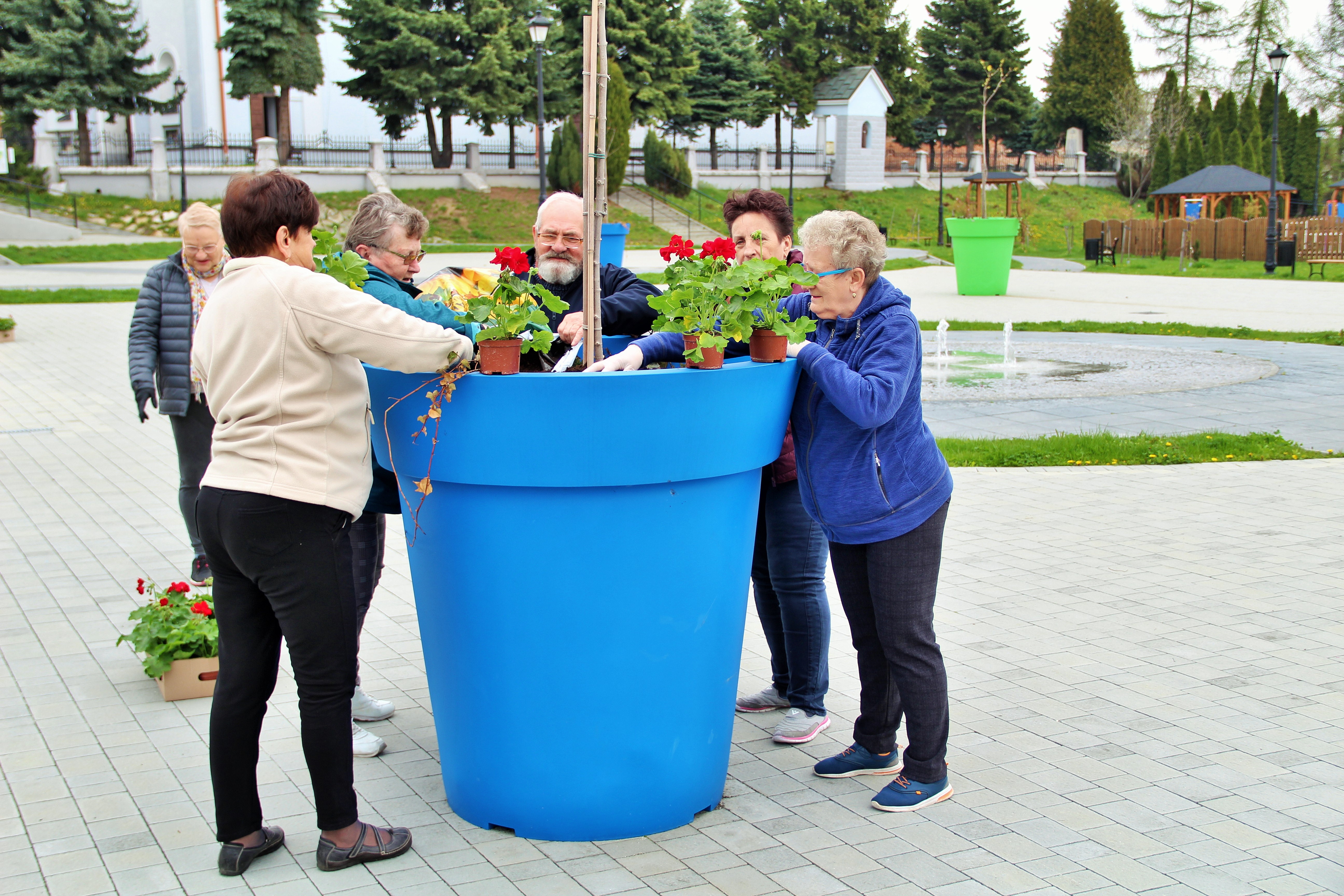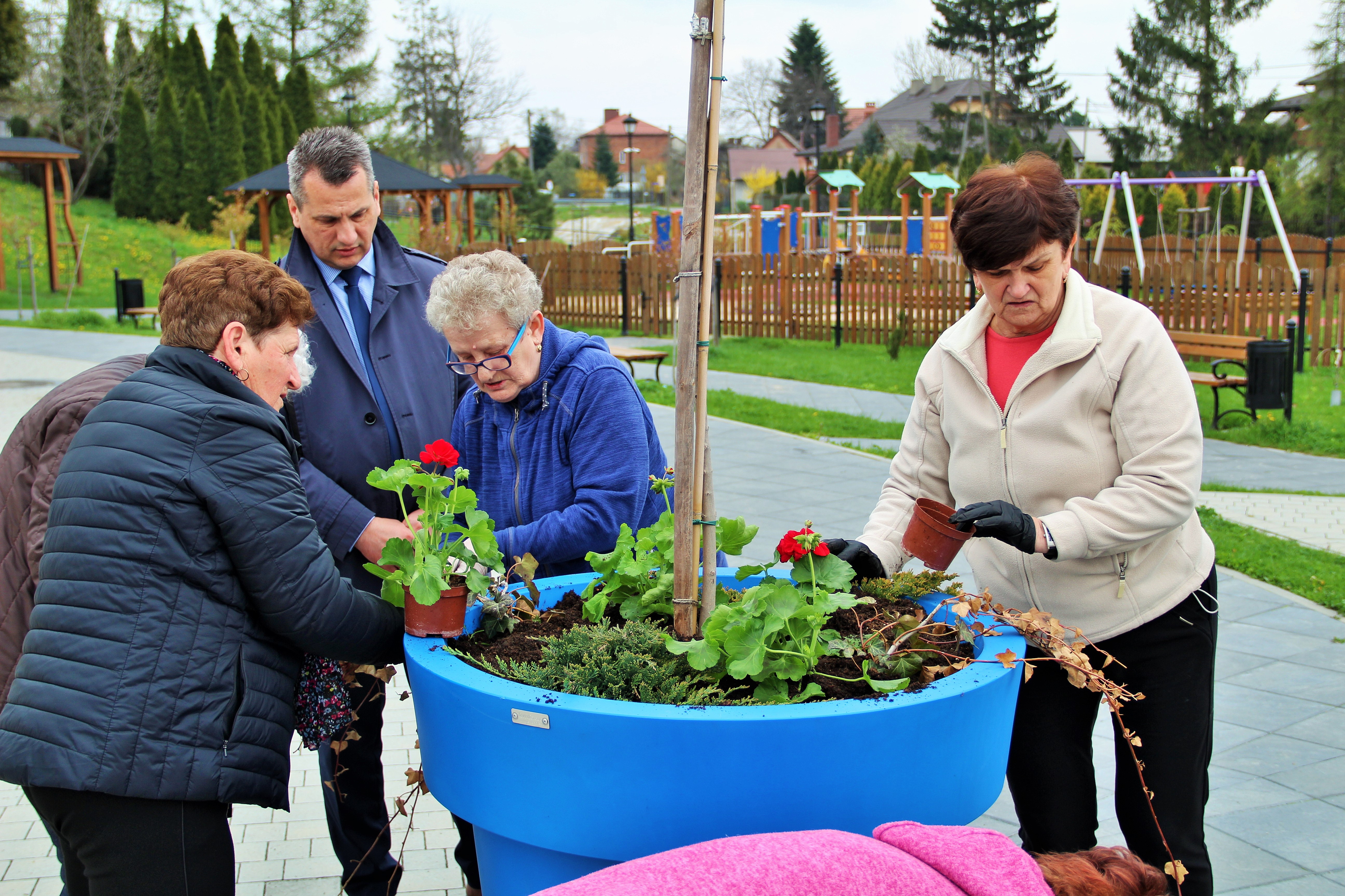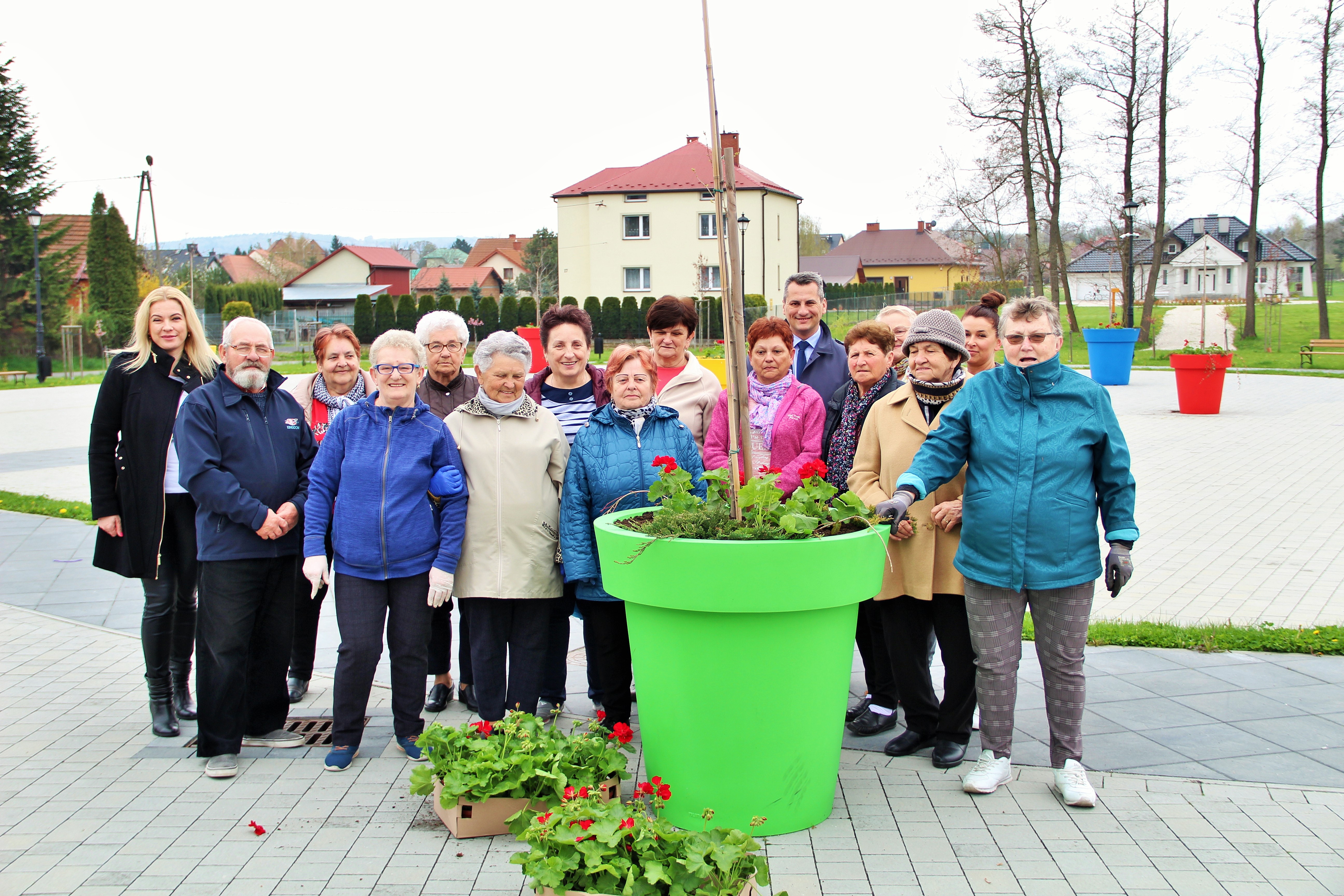Uczestnicy Klubu Senior + w Rzezawie wzięli udział w akacji sadzenia kwiatów na rzezawskim Ryneczku.