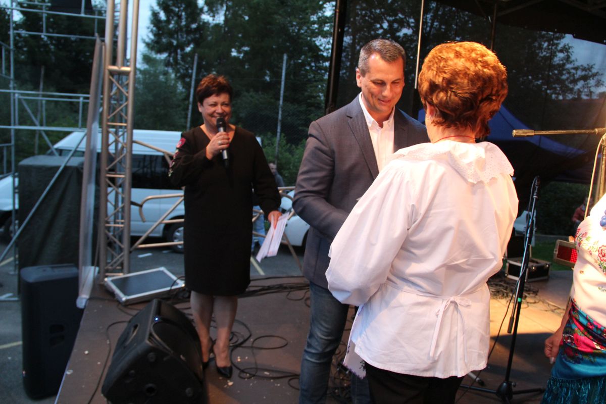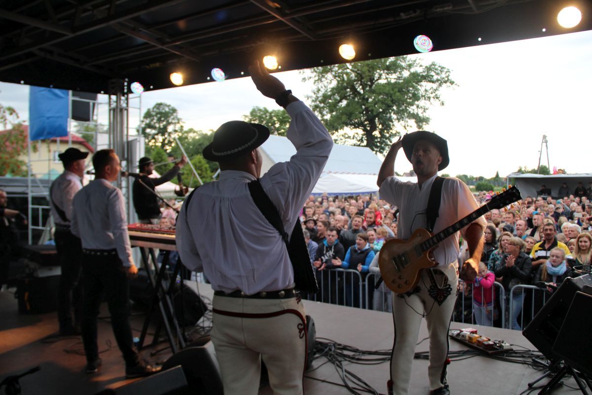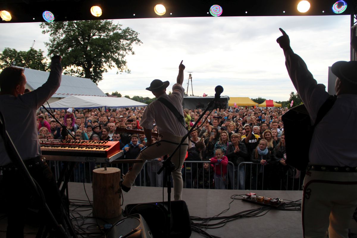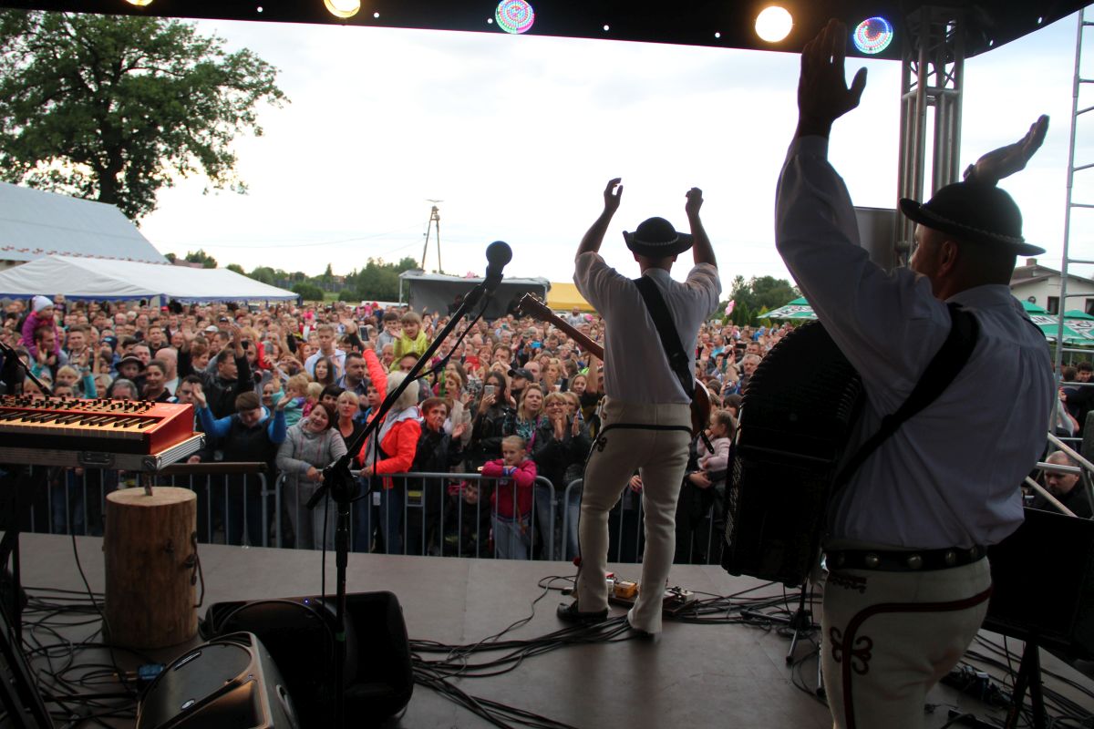 A przed sceną gromadziły się co raz większe tłumy, bowiem wszyscy czekali na gwiazdę wieczoru czyli BACIARY. Ten folklorystyczny zespół, który w swojej muzyce, a także strojach nawiązuje do tradycji góralskiej - porwał licznie zgromadzoną publiczność do zabawy. Wśród żywiołowo wykonanych utworów nie zabrakło tych najbardziej znanych i lubianych jak: "Zostań tu ze mną na zawsze", "Jak się bawią ludzie", "Żyje się raz" czy "Nic do stracenia". Trudno sie było Baciarom rozstać z gościnną i rozbawioną publicznością w Łazach ale ostatecznie koncert zespołu zakończył akordeonista - Władysław Lassak ... przecinając ciupagą kabel (!) Po koncercie była także chwila na autografy i wspólne fotografie ze zespołem. Ale to jeszcze nie był koniec atrakcji, jakie przygotowali organizatorzy, gdyż do późnych godzin nocnych zgromadzonych bawił zespół „KITA BAND” przy dźwiękach największych muzycznych przebojów.