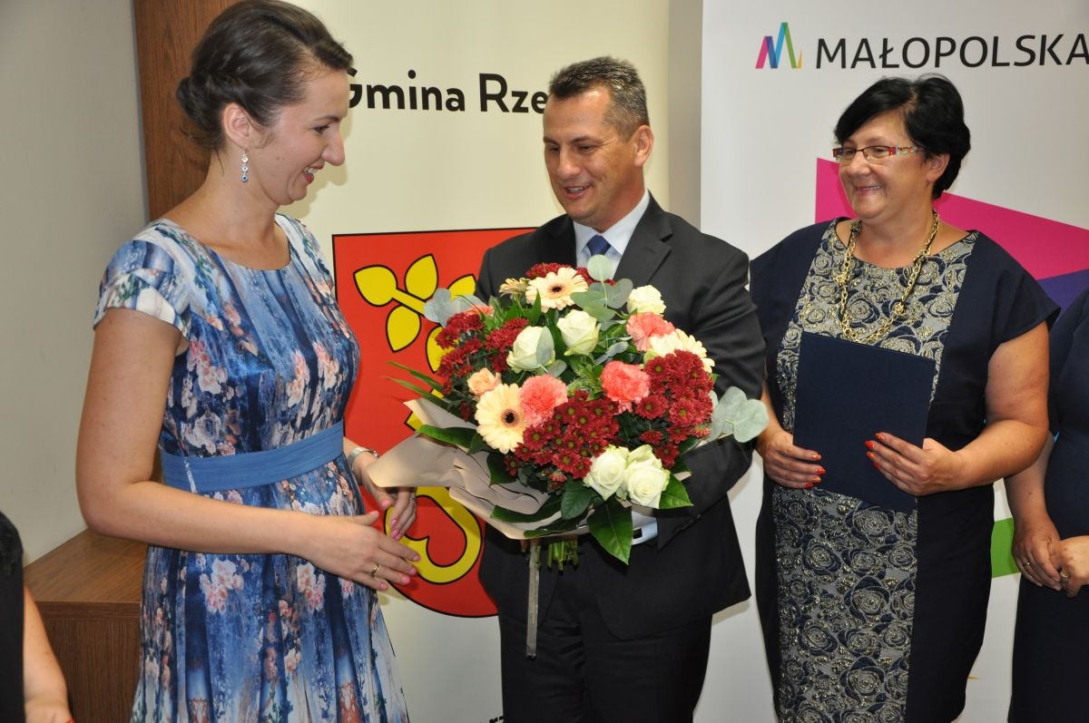 W uroczystości, która odbyła się w piątek 26 lipca w siedzibie Urzędu Gminy Rzezawa, udział wzięli także: Przewodnicząca Rady Gminy Rzezawa Barbara Kwiecińska, Wiceprzewodniczący Rady Gminy Rzezawa i Sołtys Dąbrówki Marcin Bielak, Przewodnicząca Komisji Oświaty, Kultury, Zdrowia, Sportu i Spraw Socjalnych Agnieszka Sotwin oraz Dyrektor Zespołu Szkolno-Przedszkolnego w Dąbrówce Bogusława Janik.