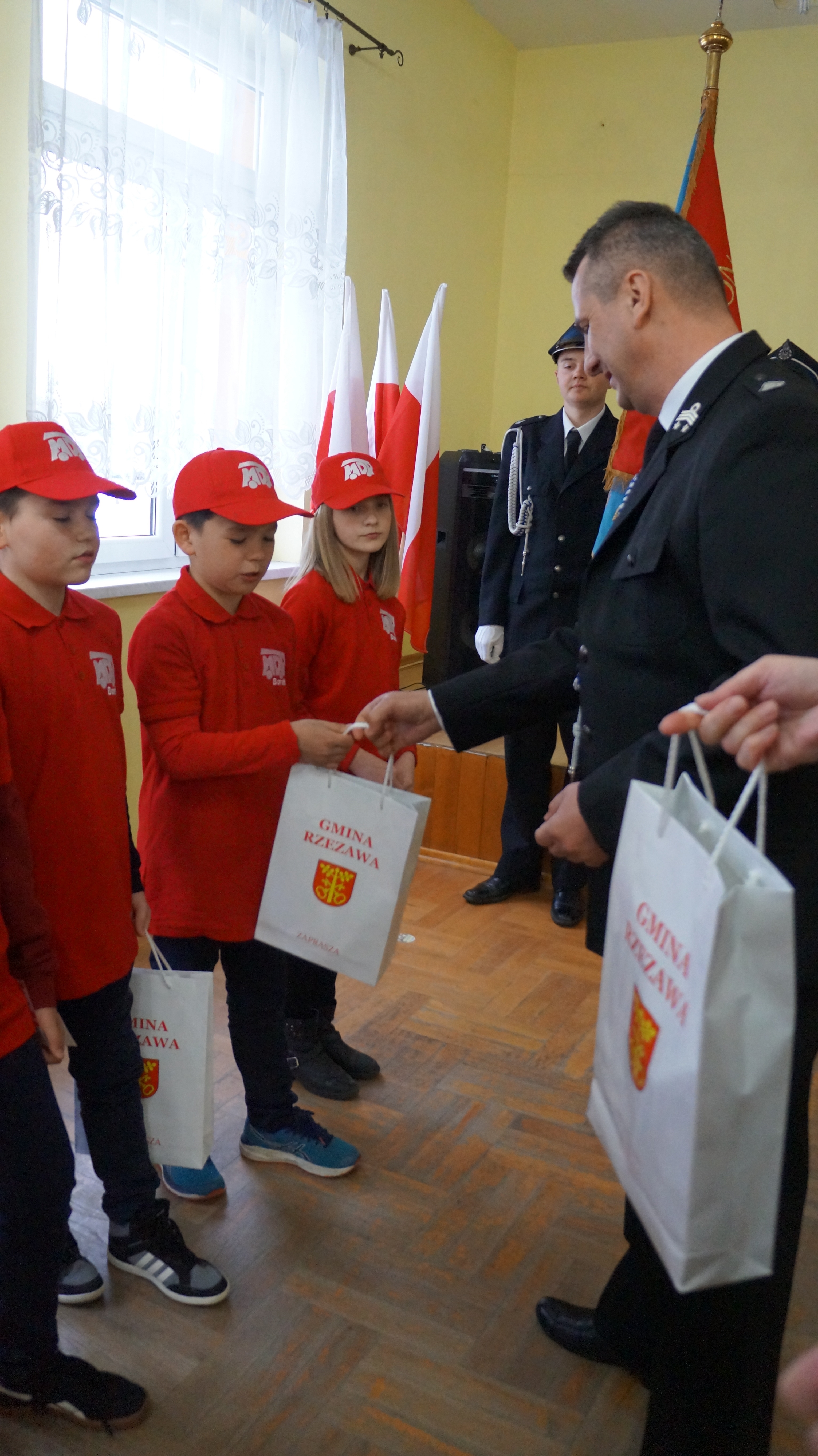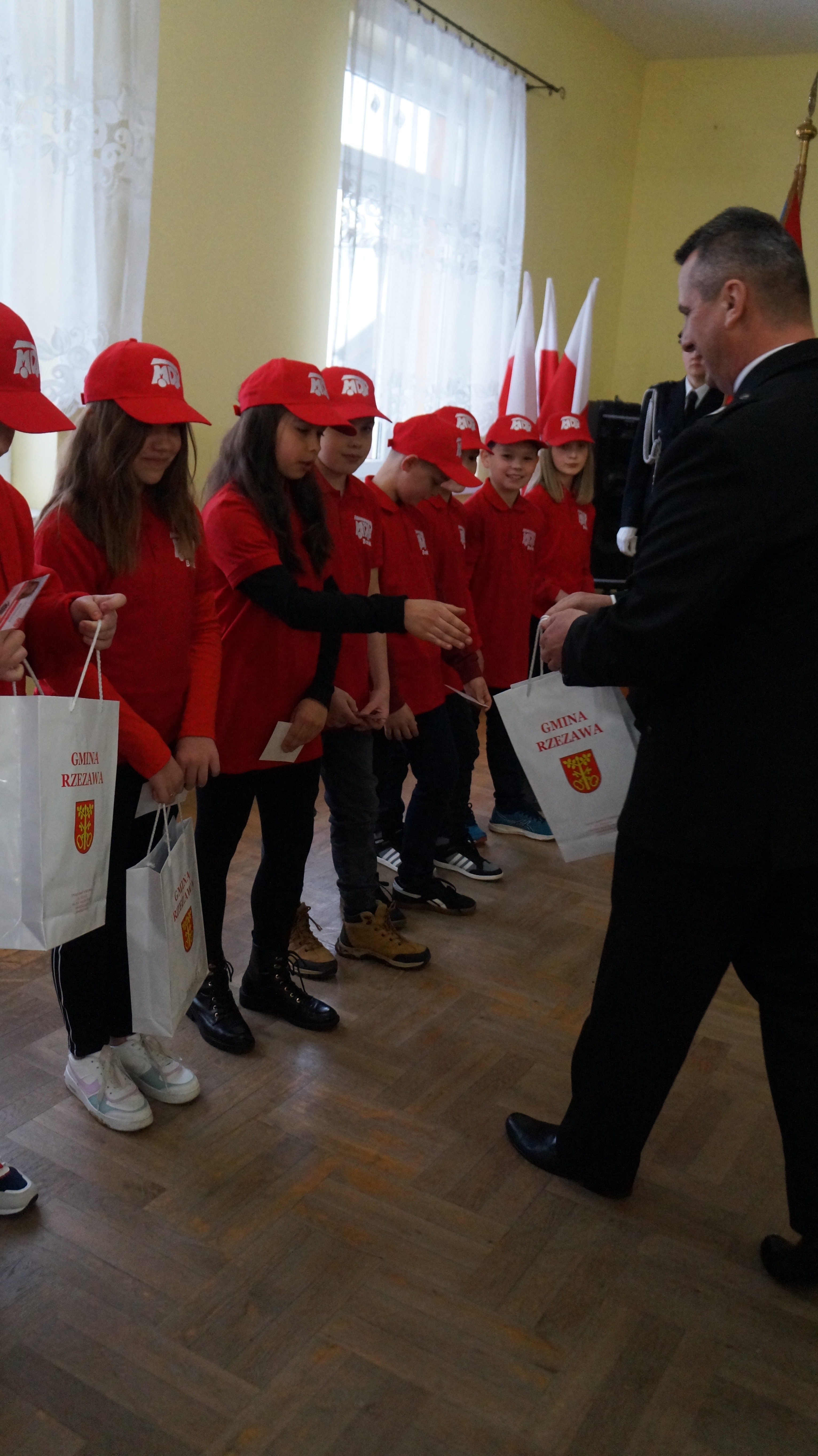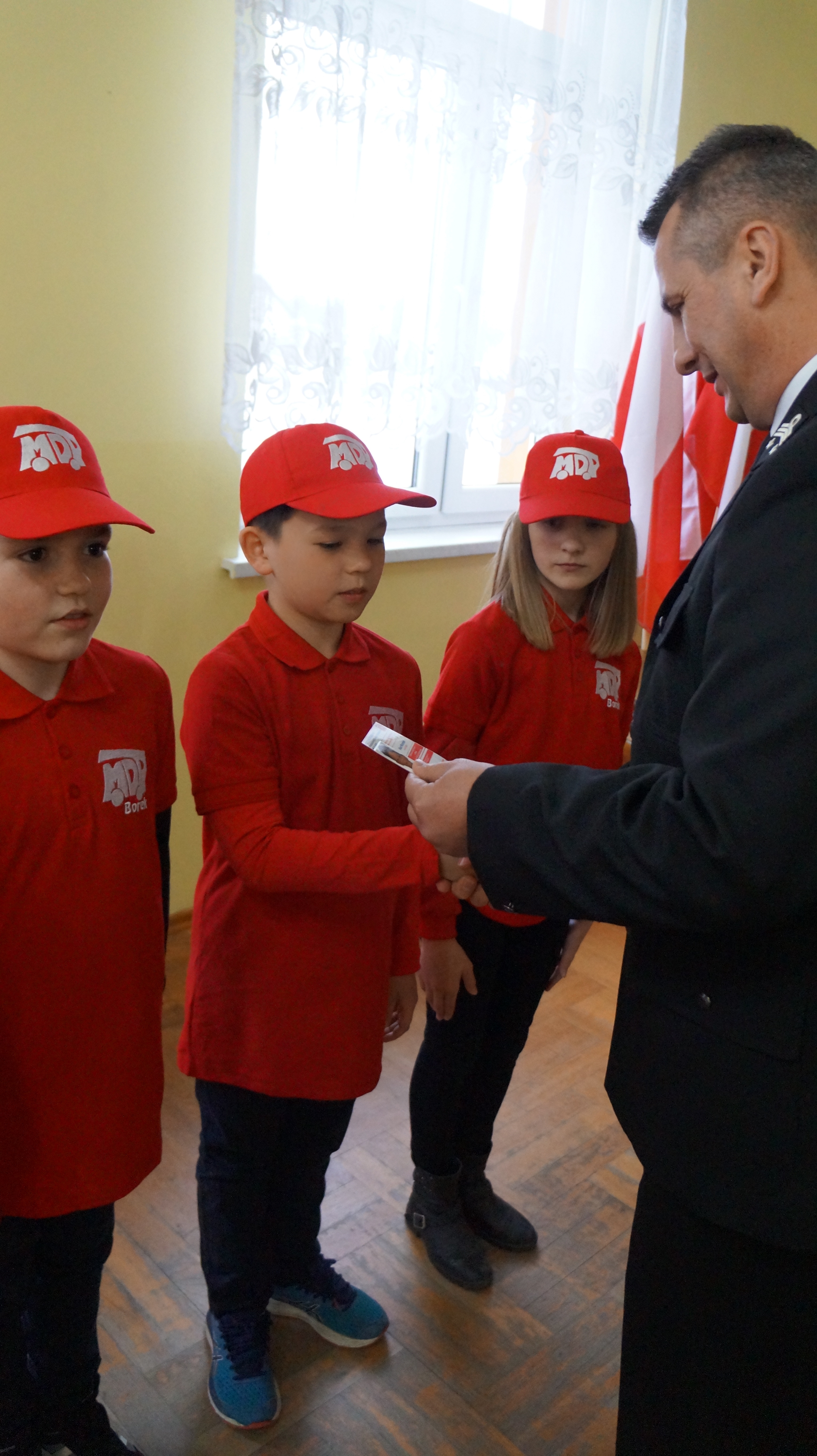 Po wysłuchaniu hymnu i odczytaniu roty ślubowania członkowie MDP Borek: Wiktoria Maj, Natalia Pawłowska, Olivia Kłóś, Martyna Schoebesberger, Michał Linca, Filip Baniak, Jakub Dąbrowski, Olivier Majdański, Szymon Kowalski, Alex Mironów, Michał Waśniowski, Norbert Cholewa otrzymali legitymacje członka Młodzieżowej Drużyny Pożarniczej w Borku oraz upominki przygotowane przez Urząd Gminy Rzezawa.