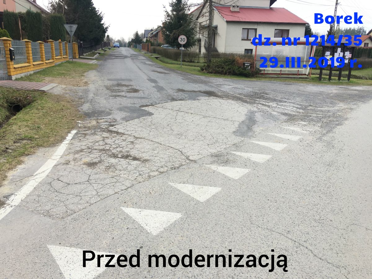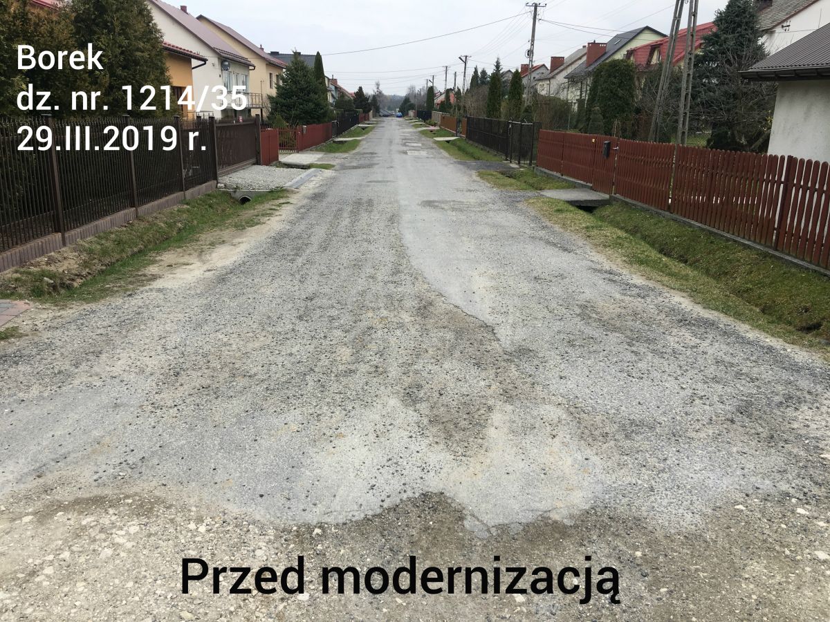 W Borku remont obejmuje drogę stanowiącą działkę nr 1214/35 o łącznej powierzchni 1160 m2 prowadzącą do osiedla mieszkaniowego, której obecna nawierzchnia jest w złym stanie technicznym. Zadanie to będzie kosztować 62 683,75 zł, z czego niespełna 38 tys. zł pochodzi z budżetu Gminy Rzezawa, a 25 tys. zł z funduszu sołeckiego wsi Borek.