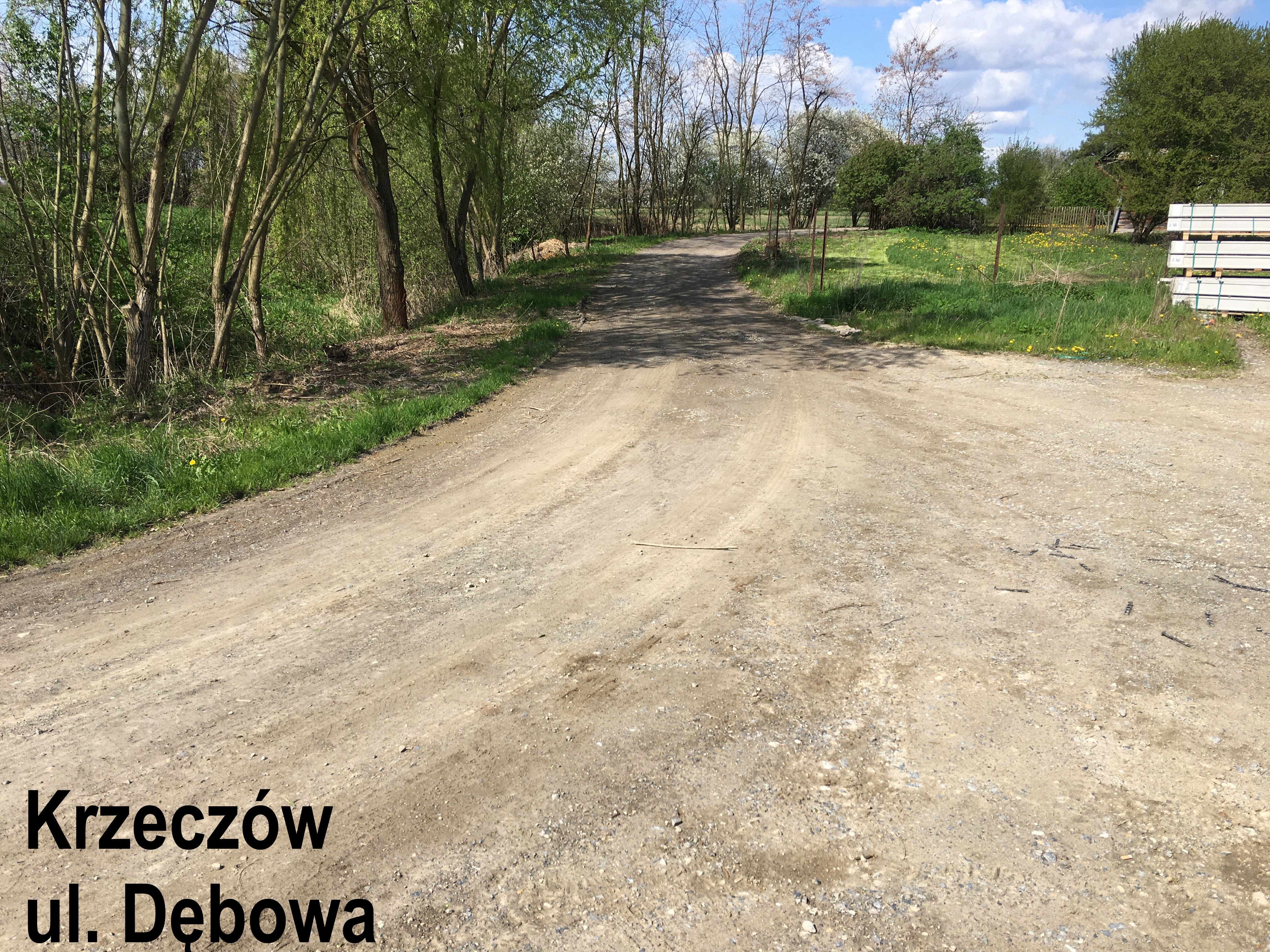 W Krzeczowie modernizacja obejmie 410-metrowy odcinek ulicy Dębowej (działka nr 1553), która zyska nawierzchnię asfaltową. Zadanie będzie kosztować ponad 122 tys. zł.