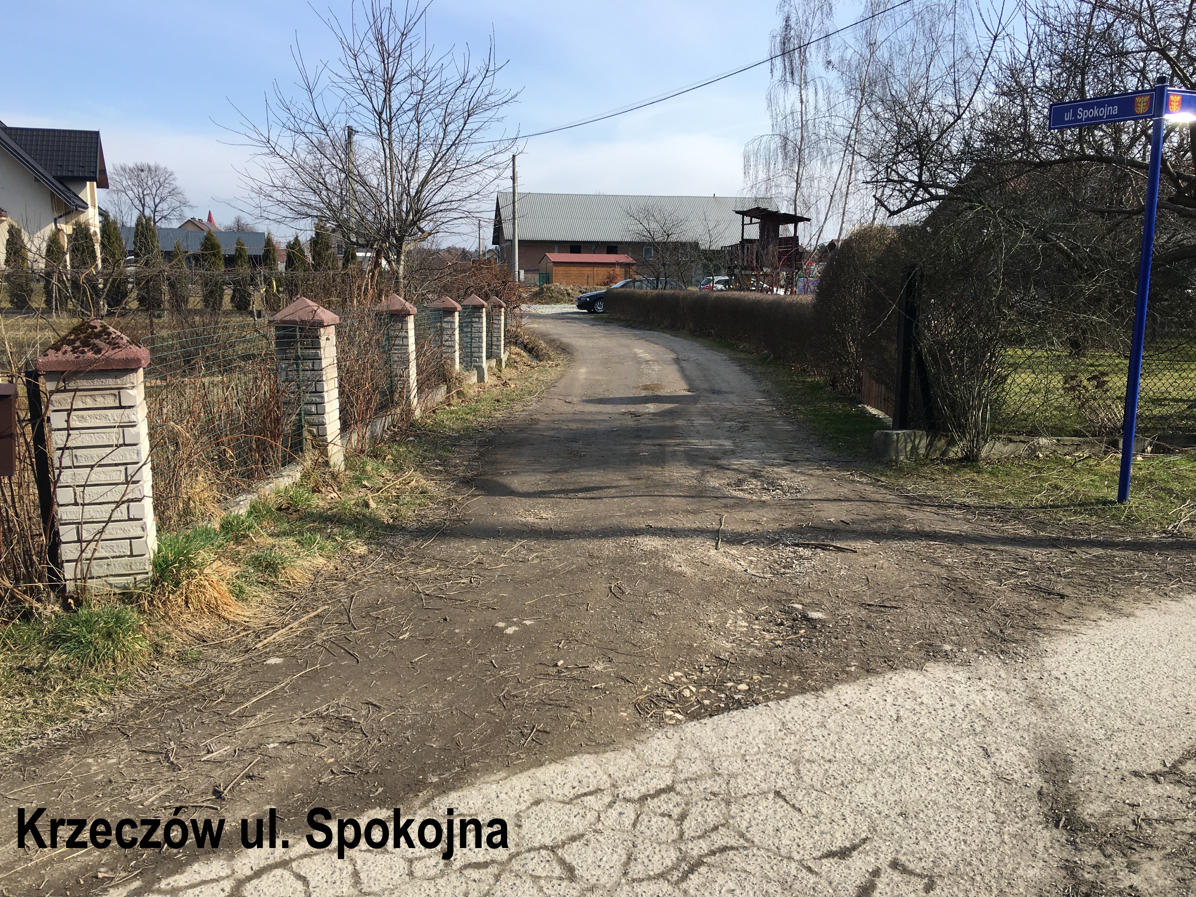 - wykonanie nawierzchni na ulicy Spokojnej w Krzeczowie - wartość inwestycji: 41 531,50 zł.