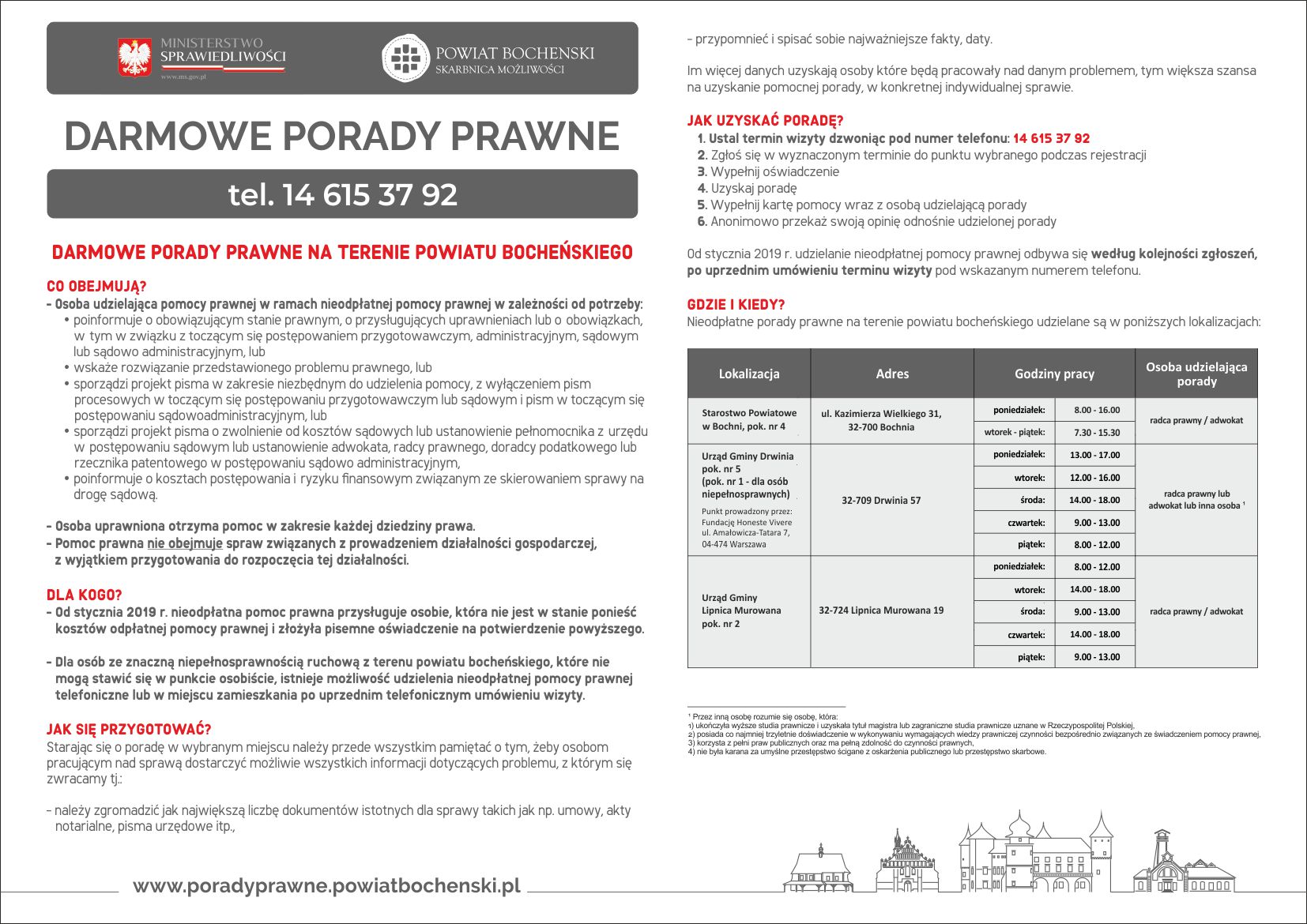 NIEODPŁATNA POMOC PRAWNA NA TERENIE POWIATU BOCHEŃSKIEGO