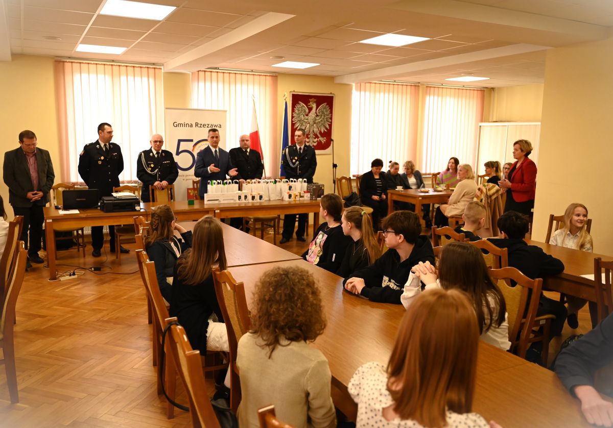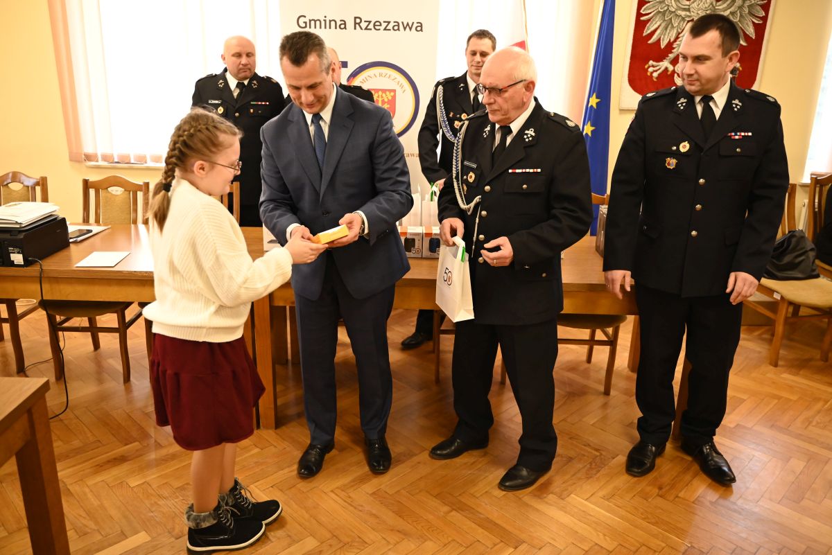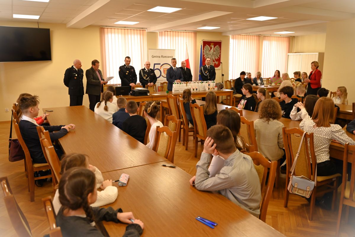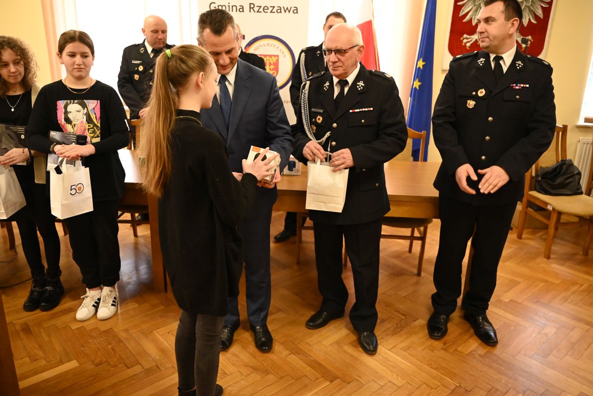 Wójt Gminy Rzezawa Mariusz Palej wręczył nagrody finalistom gminnych eliminacji Ogólnopolskiego Strażackiego Konkursu Plastycznego Związku Ochotniczych Straży Pożarnych Rzeczypospolitej Polskiej pn. „Strażacy chronią lasy – lasy chronią klimat! Jestem odpowiedzialny z natury, czuję klimat”.