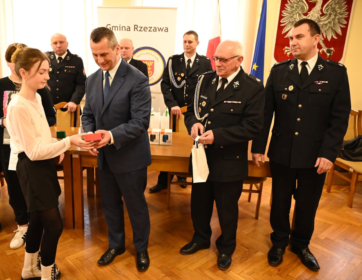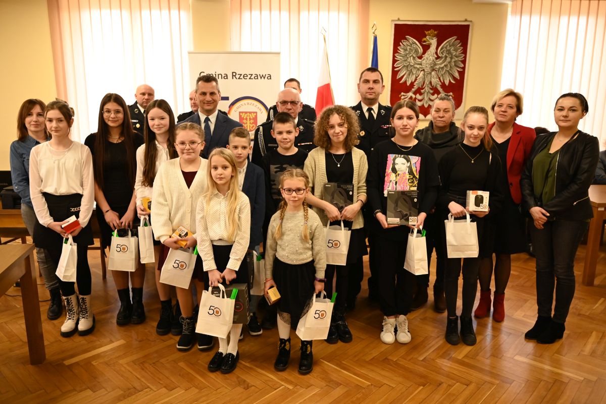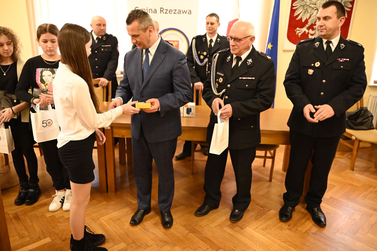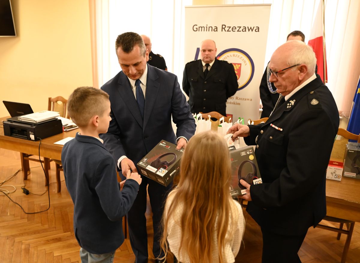Wójt Gminy Rzezawa Mariusz Palej wręczył nagrody finalistom gminnych eliminacji Ogólnopolskiego Strażackiego Konkursu Plastycznego Związku Ochotniczych Straży Pożarnych Rzeczypospolitej Polskiej pn. „Strażacy chronią lasy – lasy chronią klimat! Jestem odpowiedzialny z natury, czuję klimat”.