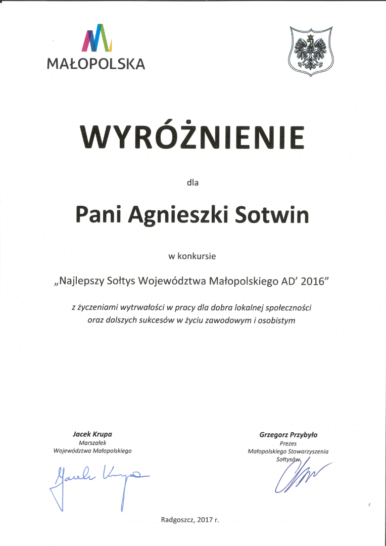 „Najlepszy Sołtys Województwa Małopolskiego AD’ 2016”