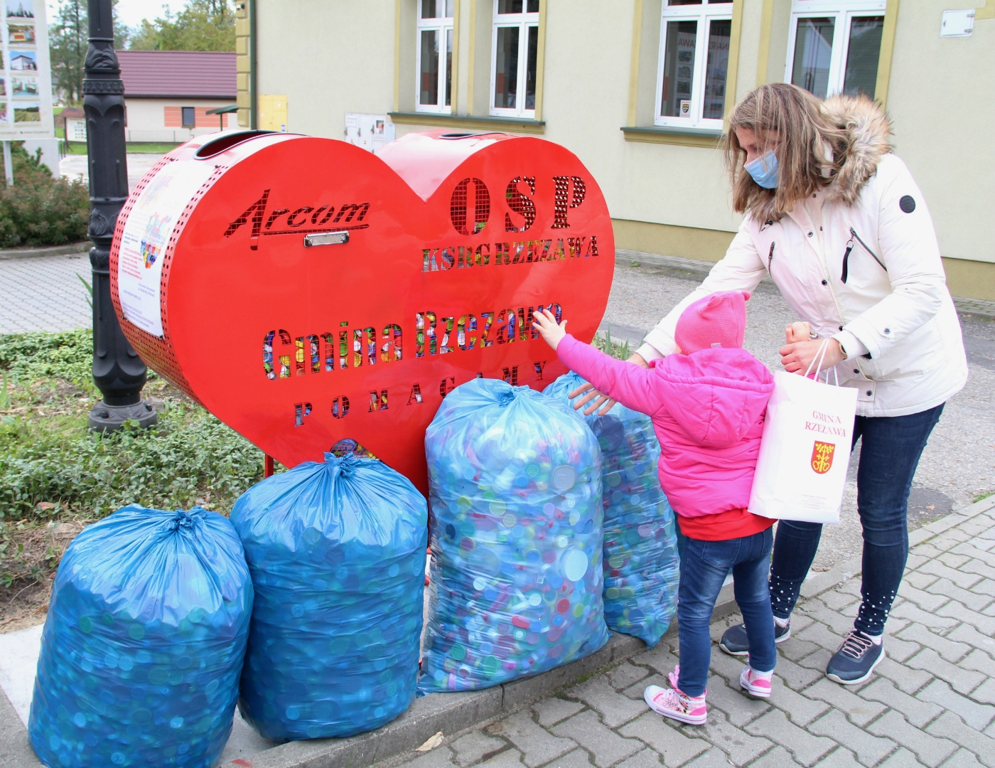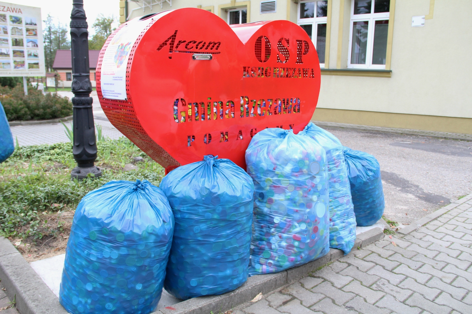 Wystarczyło zaledwie kilka dni, aby pojemnik w kształcie serca, znajdujący się w sąsiedztwie remizy OSP w Rzezawie, zapełnił się, i to kilkakrotnie, plastikowymi nakrętkami po sokach, napojach, czy środkach przemysłowych. Wszystkim mieszkańcom gminy Rzezawa należą się za to wielkie brawa.