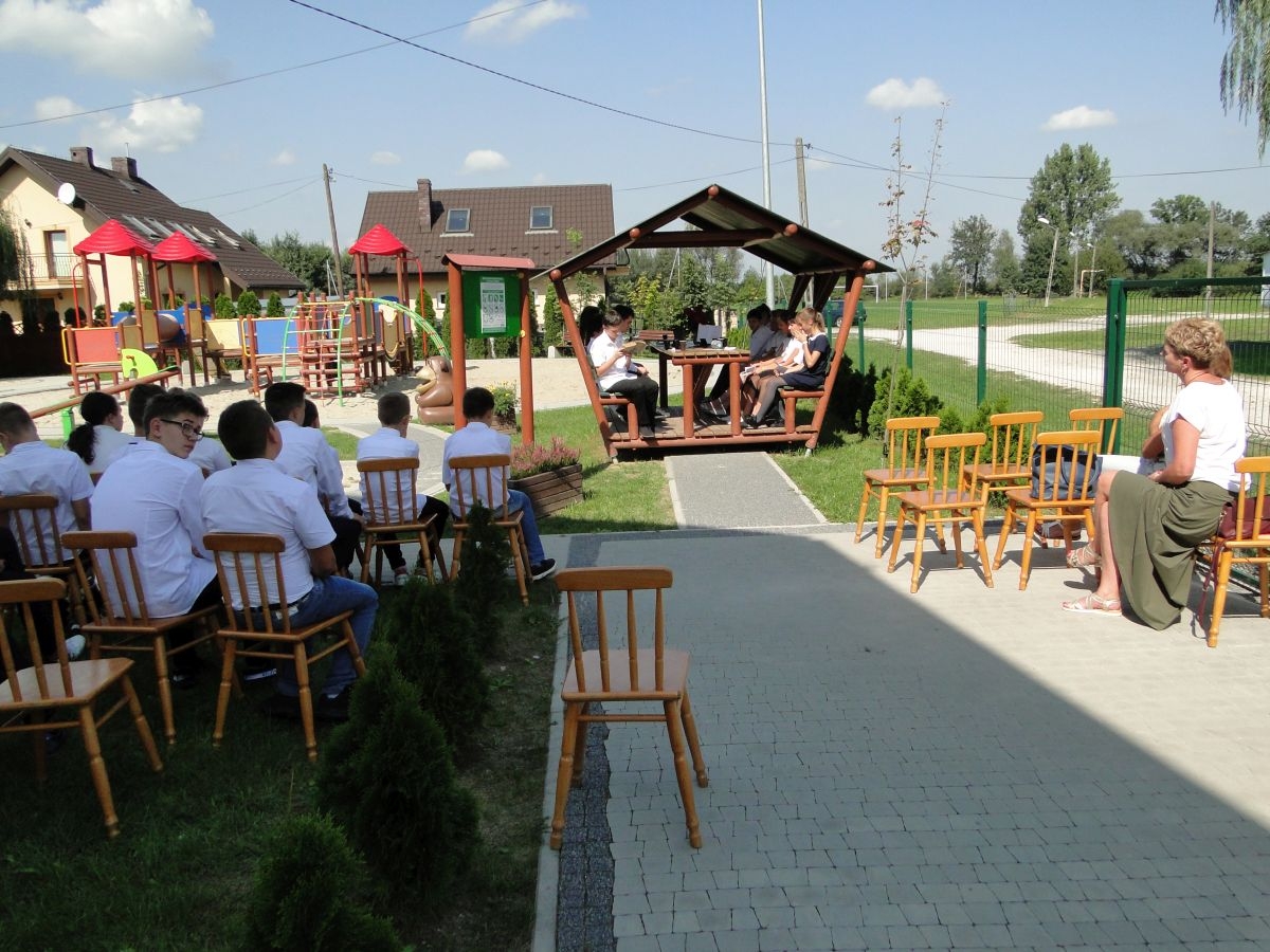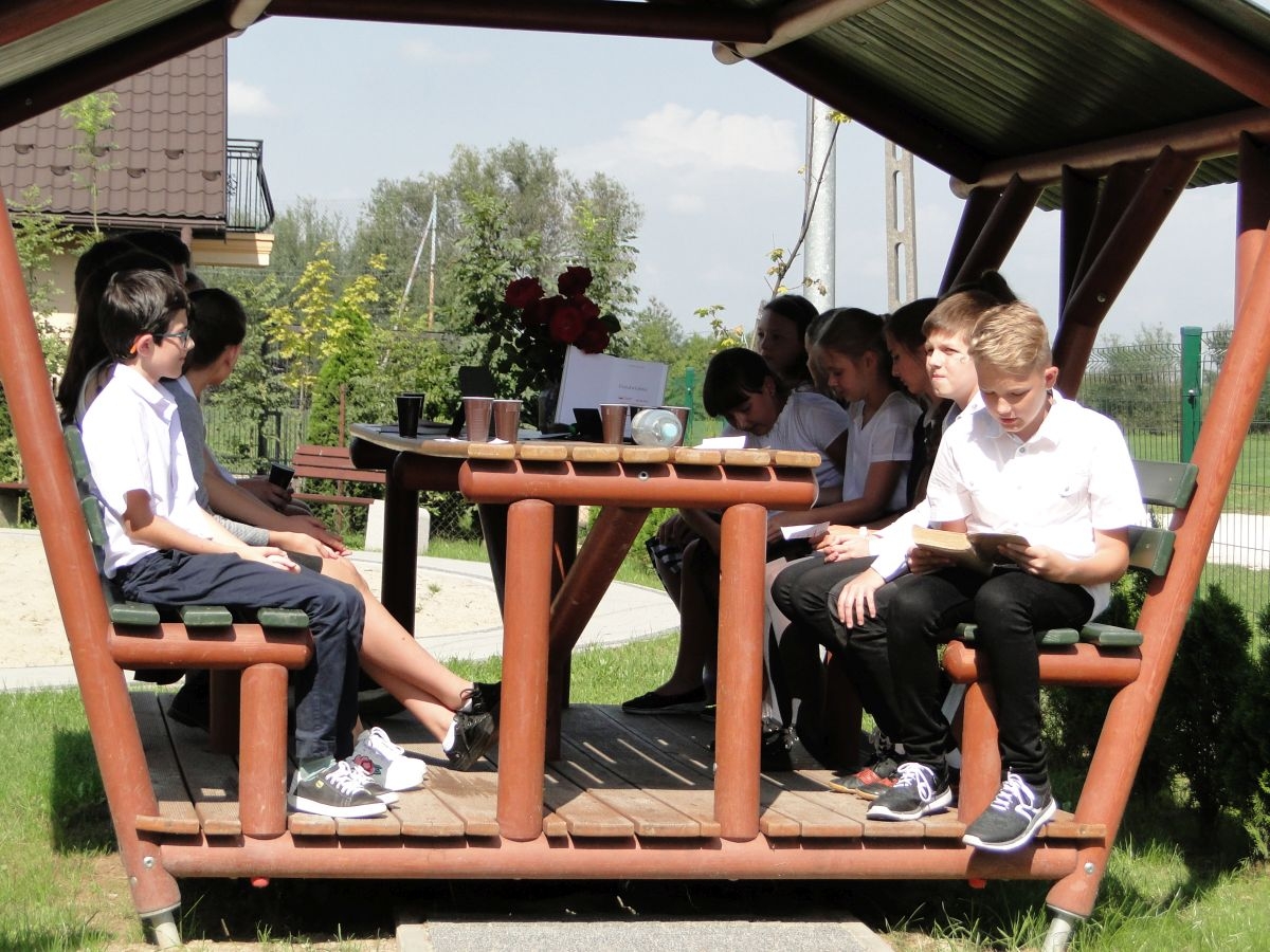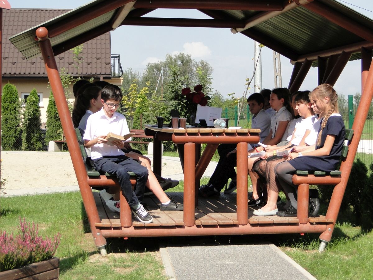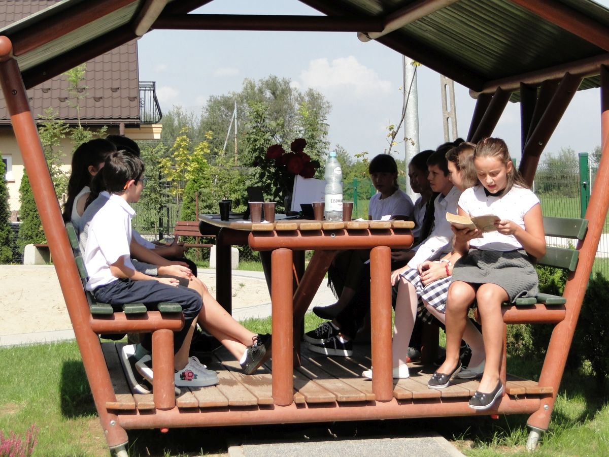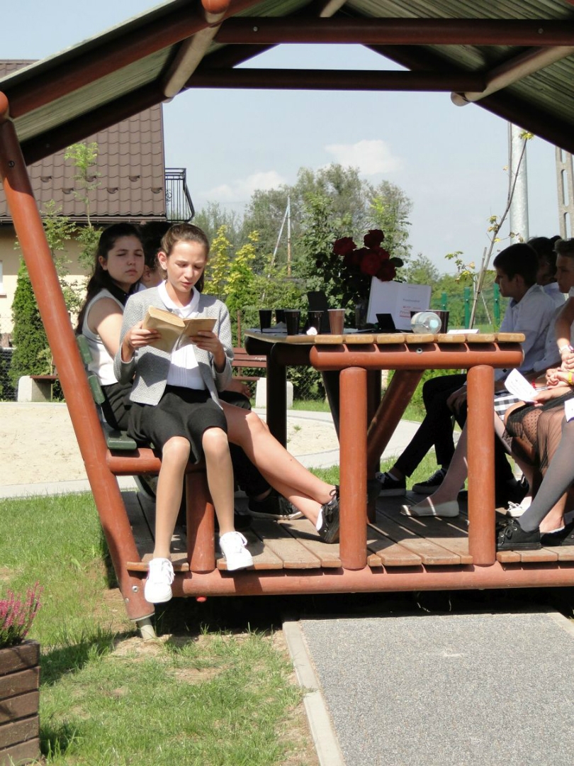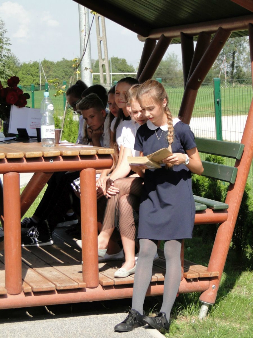 Biblioteka w Krzeczowie: tegoroczne Narodowe Czytanie „Przedwiośnia” Stefana Żeromskiego odbyło się obok biblioteki w altanie na placu zbaw. Wraz z udziałem dzieci i młodzieży ze Szkoły Podstawowej im. J. Korczaka przeczytano fragment „Przedwiośnia”. Czytały dzieci, nauczyciele oraz pani bibliotekarka – Katarzyna Waśniowska. Każdy, który przyniósł ze sobą książkę mógł przybić w niej na pamiątkę specjalnie przygotowaną na tę okazję pieczęć. Po przeczytaniu lektury był czas na słodkie zakończenie świętowania.
