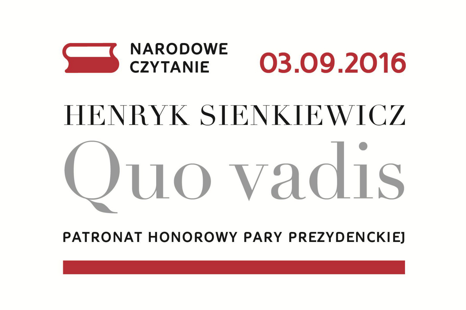W pierwszą sobotę września (03.09.2016r.) w całej Polsce odbędzie się piąta edycja akcji Narodowe Czytanie pod patronatem Pary Prezydenckiej.
