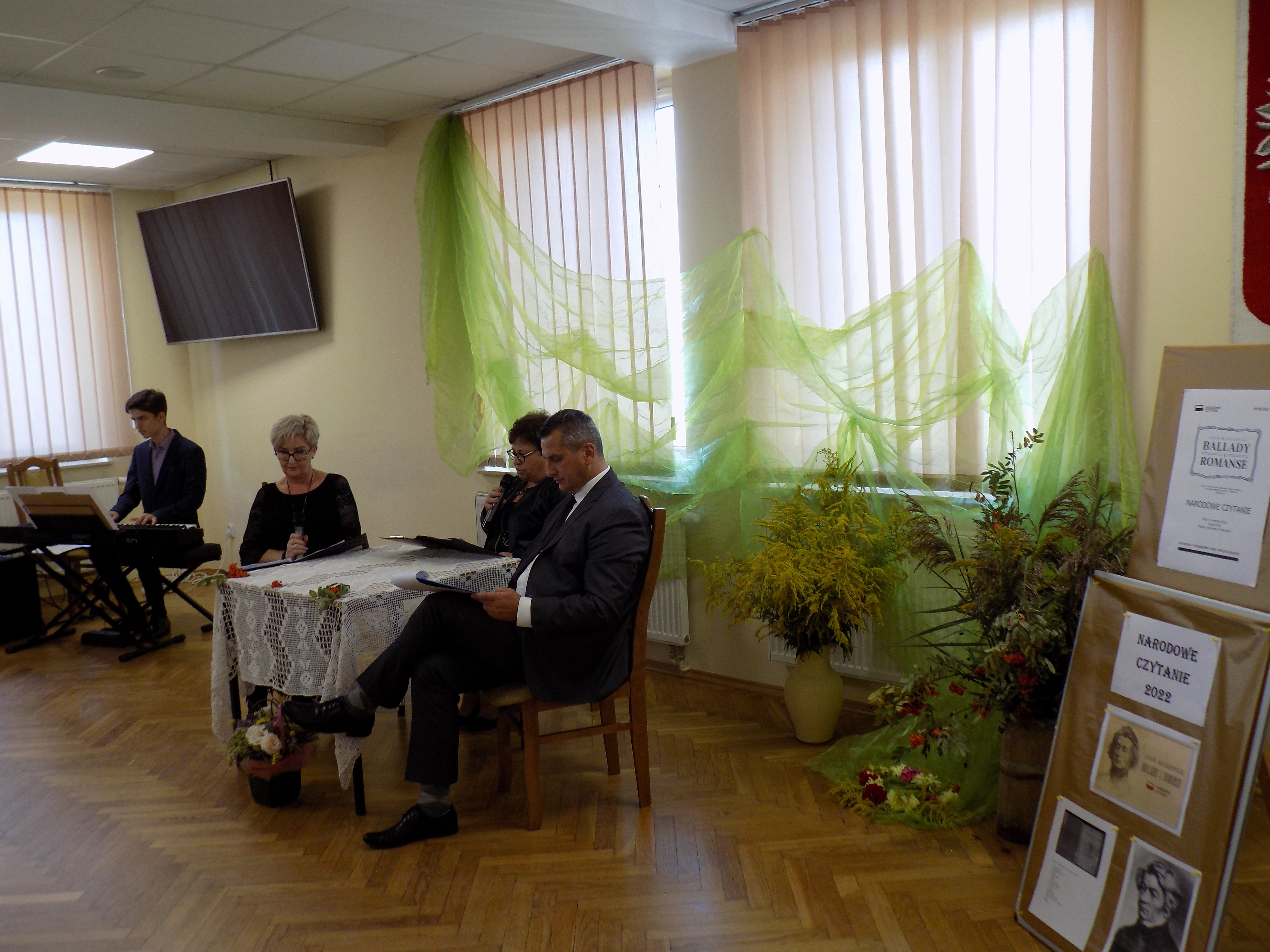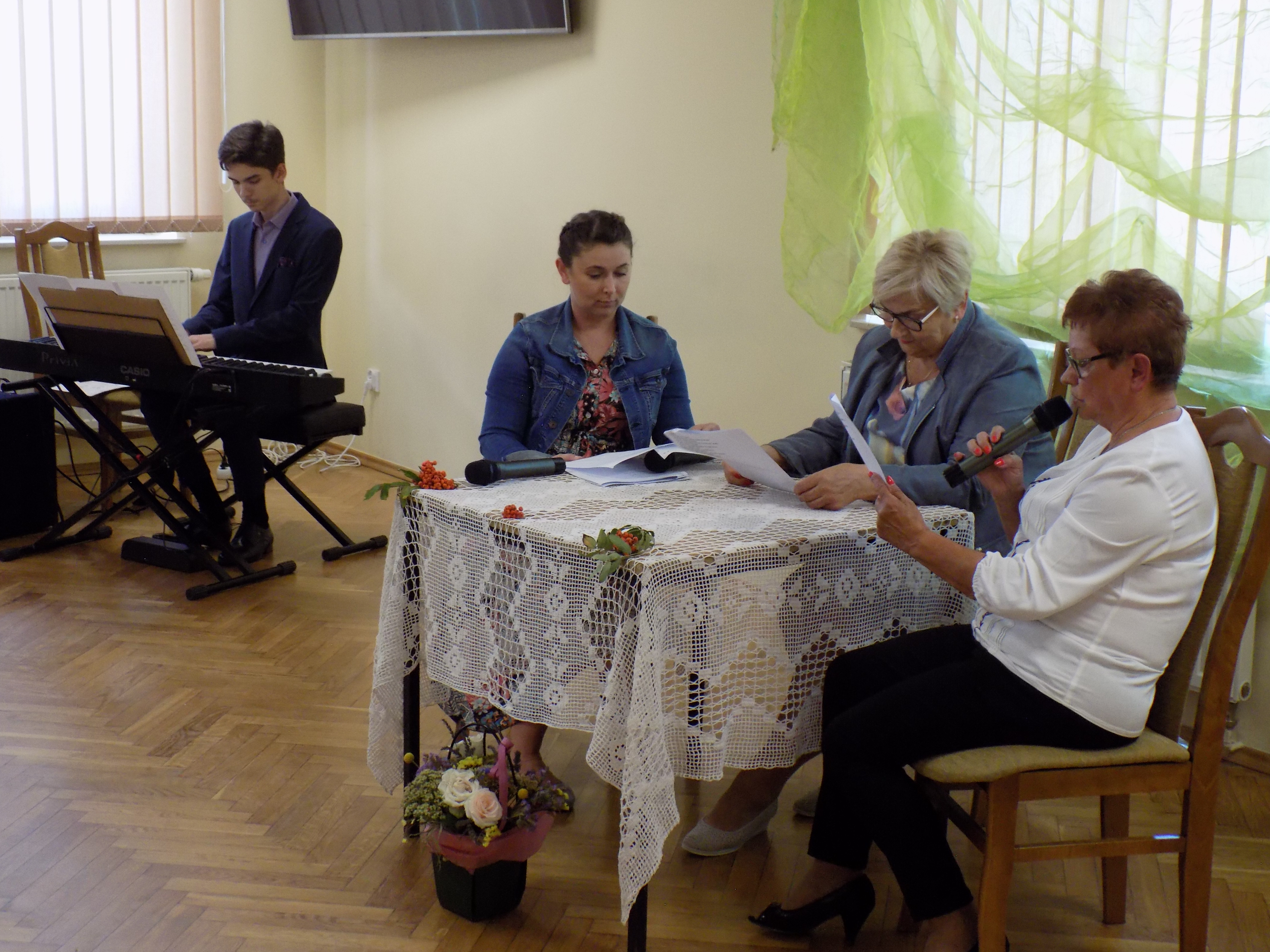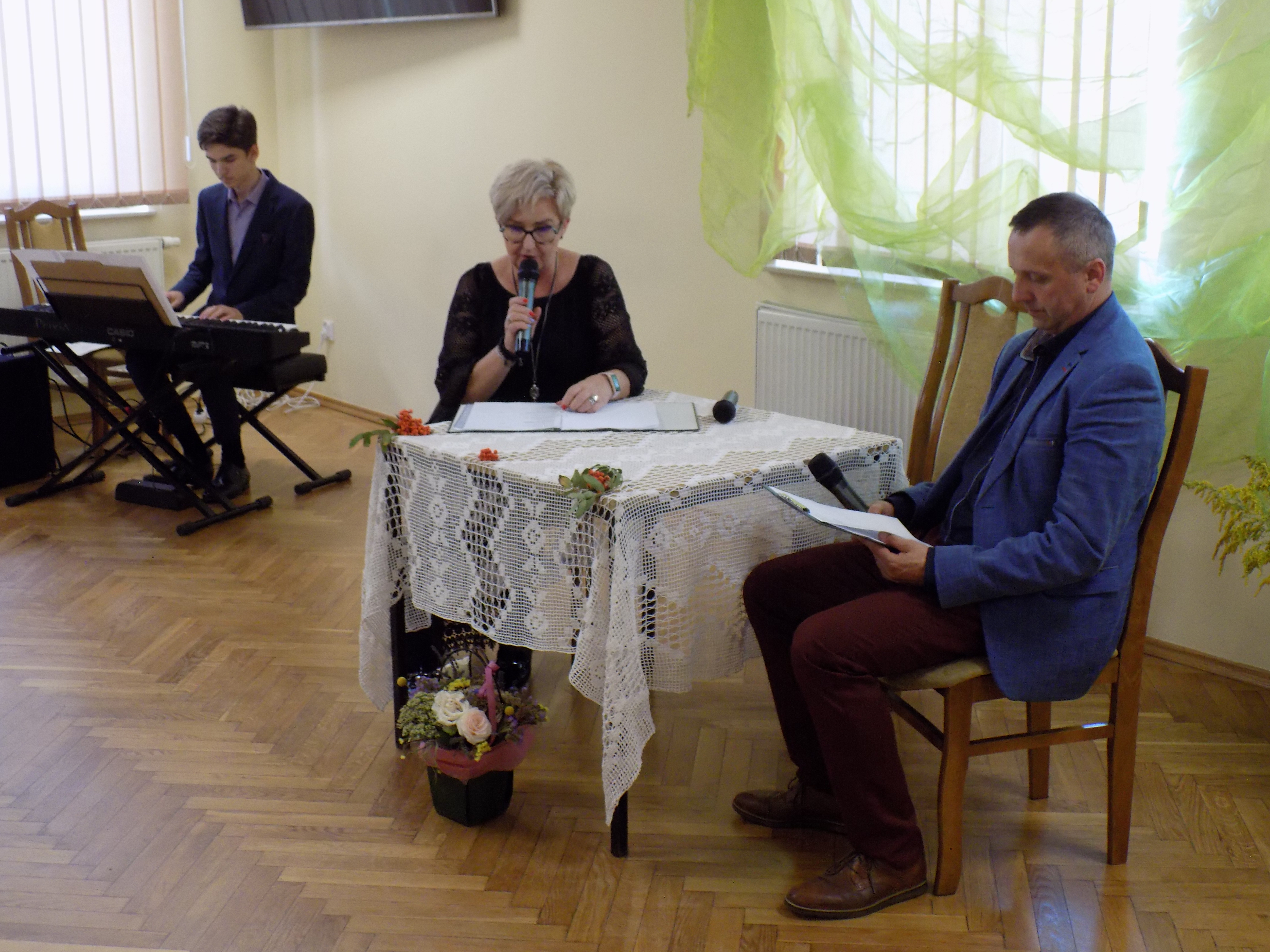 Było to spotkanie wielopokoleniowe i stało się wspólnym świętem czytelnictwa. W kilku odsłonach dorośli i młodzież czytali wybrane utwory naszego wielkiego wieszcza: czytał Pan Wójt Mariusz Palej, Dyrektor GCKCziS Pani Renata Prokop, Kierownik GBP Pani Marta Wiater, Radny i Sołtys Pan Robert Świercz, Radna i opiekunka „Klubu Senior+” Pani Monika Gorczyca, Członkowie Klubu Senior + oraz młodzież Dominik i Wiktor. Piękny akompaniament w wykonaniu Dominika zachwycił zebranych.