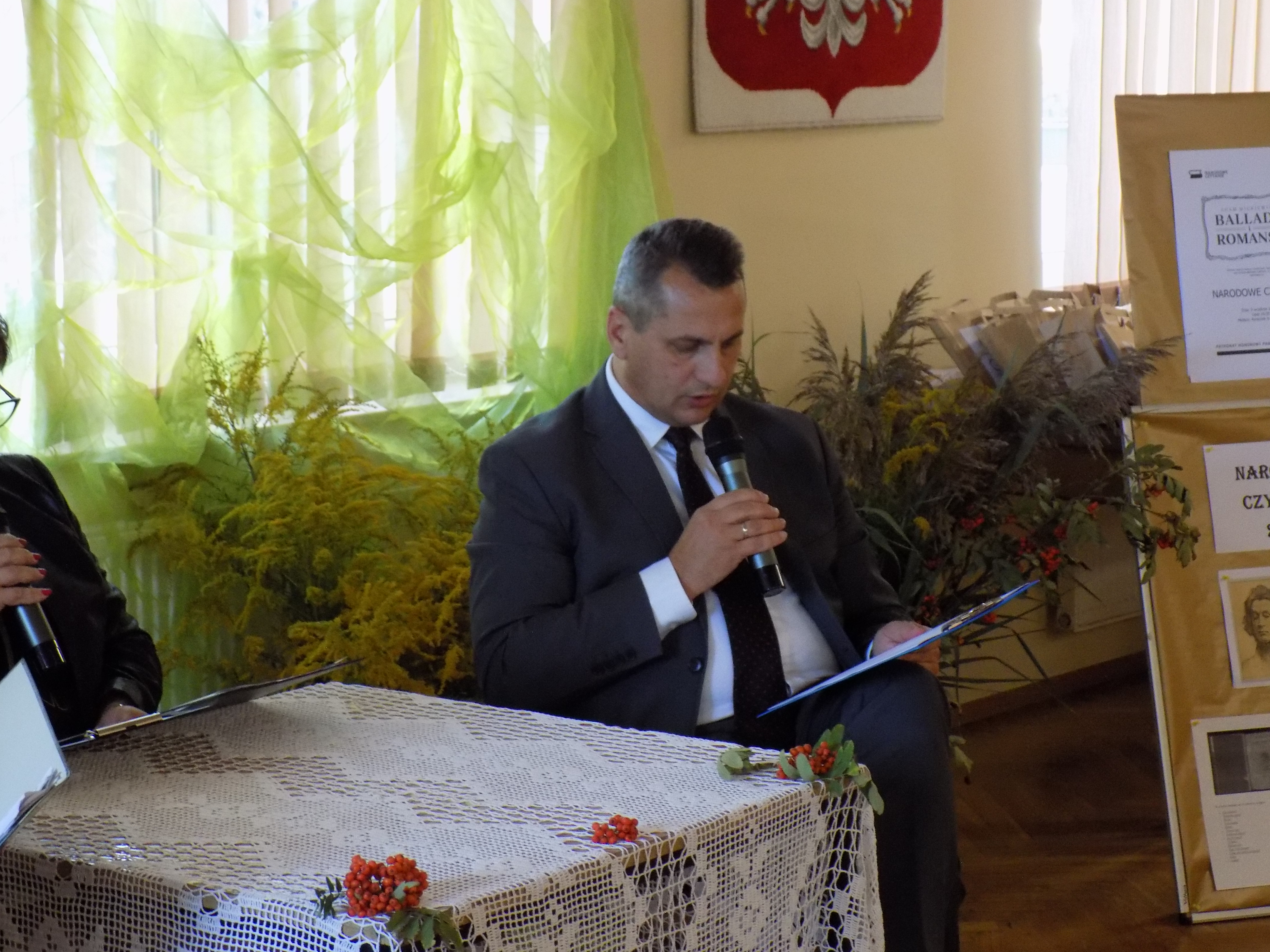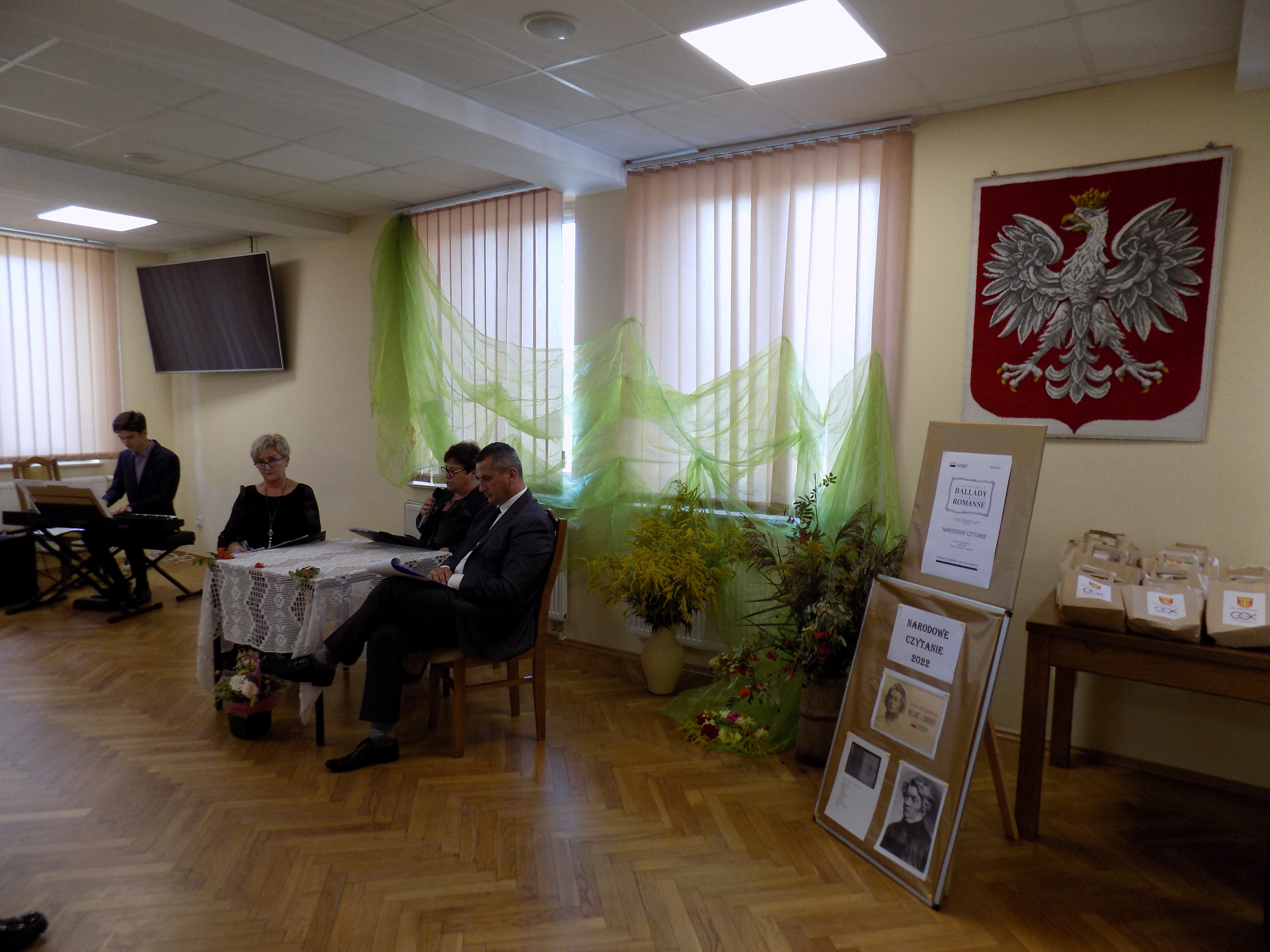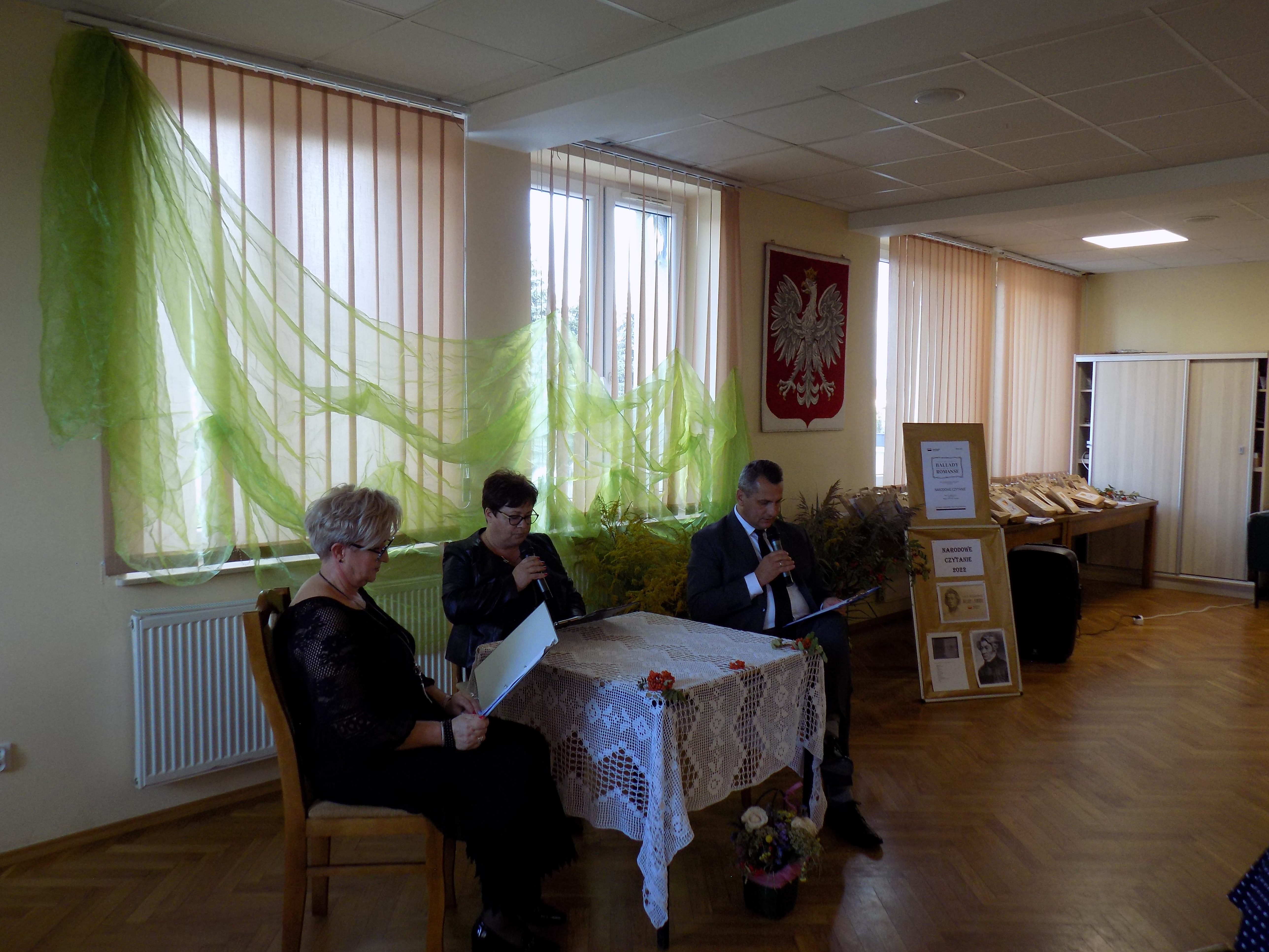 Było to spotkanie wielopokoleniowe i stało się wspólnym świętem czytelnictwa. W kilku odsłonach dorośli i młodzież czytali wybrane utwory naszego wielkiego wieszcza: czytał Pan Wójt Mariusz Palej, Dyrektor GCKCziS Pani Renata Prokop, Kierownik GBP Pani Marta Wiater, Radny i Sołtys Pan Robert Świercz, Radna i opiekunka „Klubu Senior+” Pani Monika Gorczyca, Członkowie Klubu Senior + oraz młodzież Dominik i Wiktor. Piękny akompaniament w wykonaniu Dominika zachwycił zebranych.