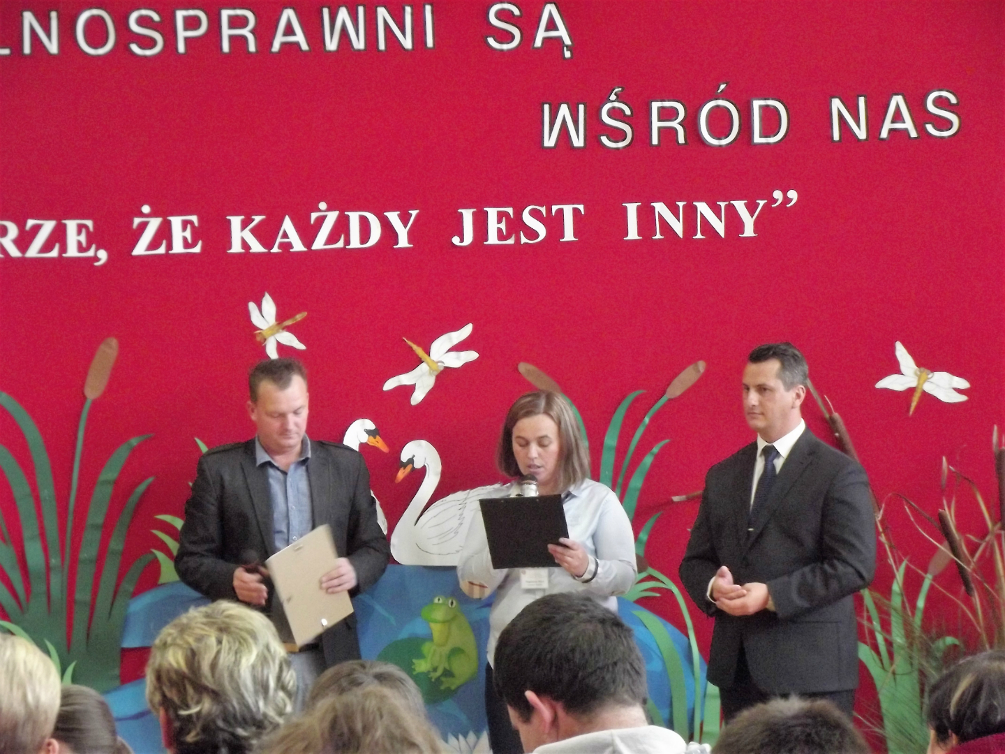 W minioną sobotę 22.10.2016r. z inicjatywy Rady Sołeckiej i Świetlicy w Dąbrówce na Hali Sportowej przy Zespole Szkół w Dąbrówce odbył się pierwszy Happening „Niepełnosprawni są wśród nas”. Honorowy patronat nad imprezą objął Wójt Gminy Rzezawa pan Mariusz Palej. Impreza której celem było wzmocnienie przekazu dotyczącego osób niepełnosprawnych, zaapelowanie o większą akceptację i walkę z wykluczeniami i stereotypami zgromadziła sporą grupę niepełnosprawnych uczestników wraz z opiekunami oraz mieszkańców z terenu Gminy Rzezawa. Spotkanie rozpoczęło się przedstawieniem pt. „Czy i Ty spotkałeś brzydkie kaczątko” w wykonaniu uczniów Zespołu Szkół w Dąbrówce. Występ dzieci pod przewodnictwem nauczycieli Beaty Jędrczak, Agaty Kmiecik i Marioli Kosińskiej został nagrodzony gromkimi brawami. Happening stał się świetną okazją do przedstawienia szerszemu gronu i w symboliczny sposób nagrodzenia kilku osób które podejmują inicjatywy na rzecz niepełnosprawnych. Organizatorzy wraz z Wójtem Gminy przekazali symboliczne upominki wraz z okolicznościowymi podziękowaniami na ręce: