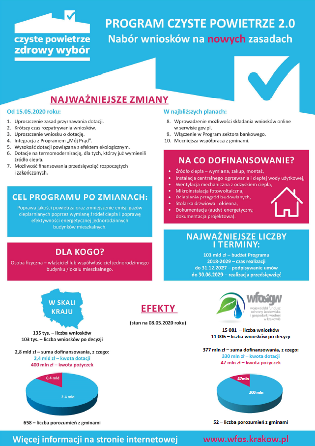 Szczegółowe informacje na temat naboru wniosków dostępne są pod adresem: https://www.wfos.krakow.pl/czyste-powietrze/ .